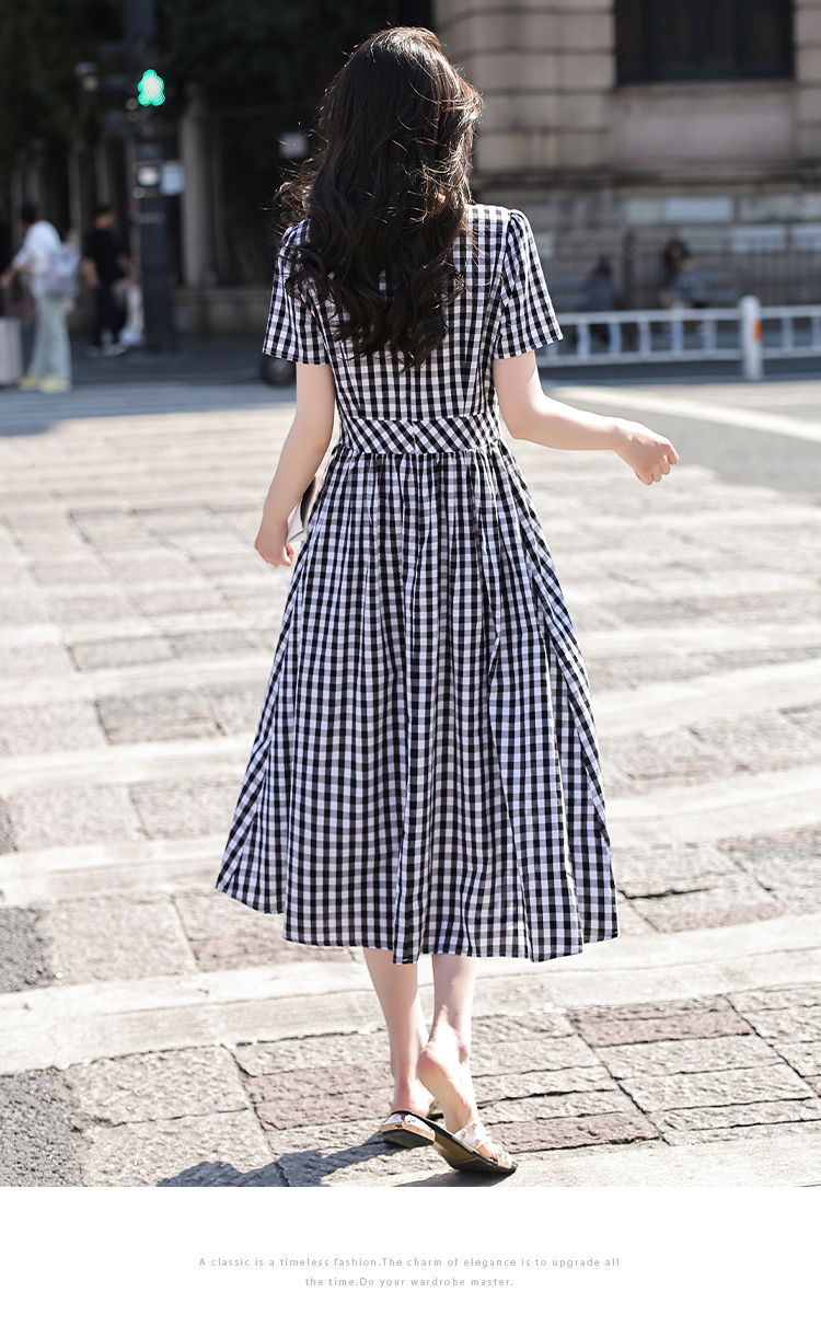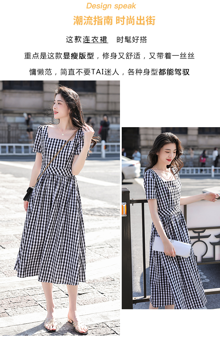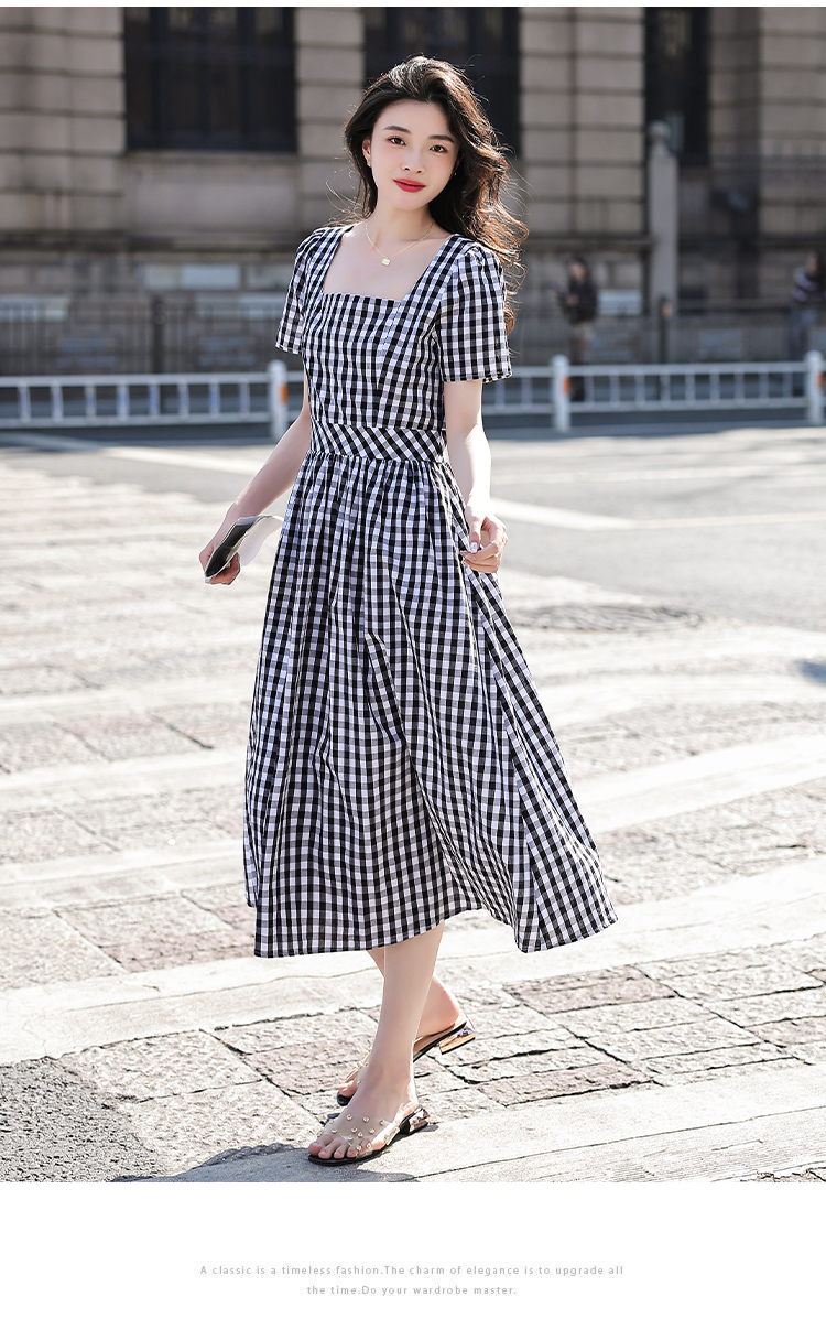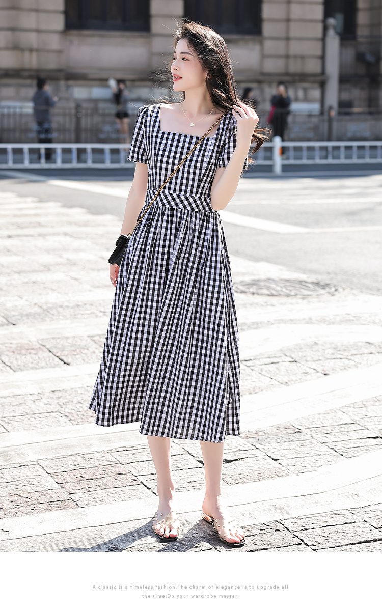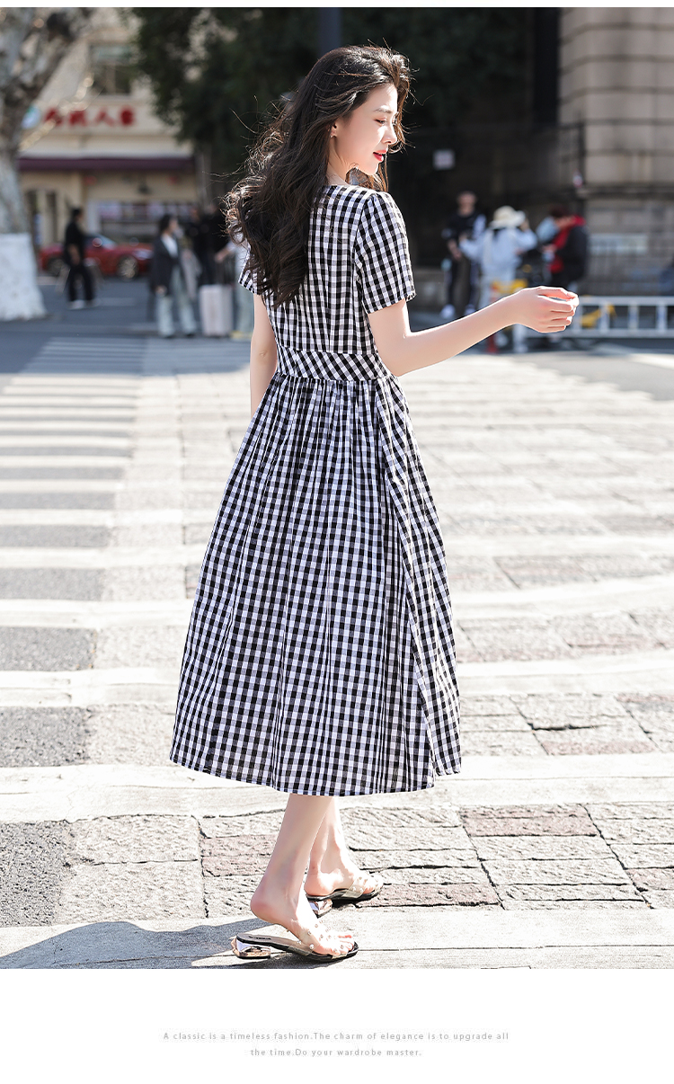 RY507# 法式复古赫本风设计感格子连衣裙2026夏季新款时尚显瘦气质a字裙