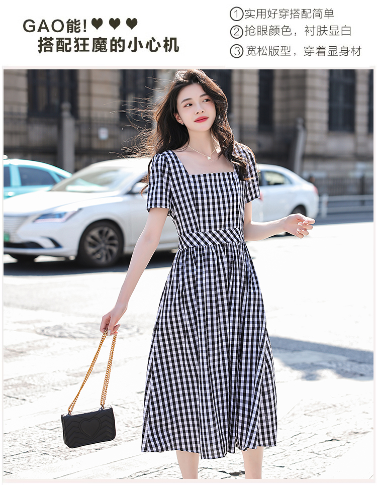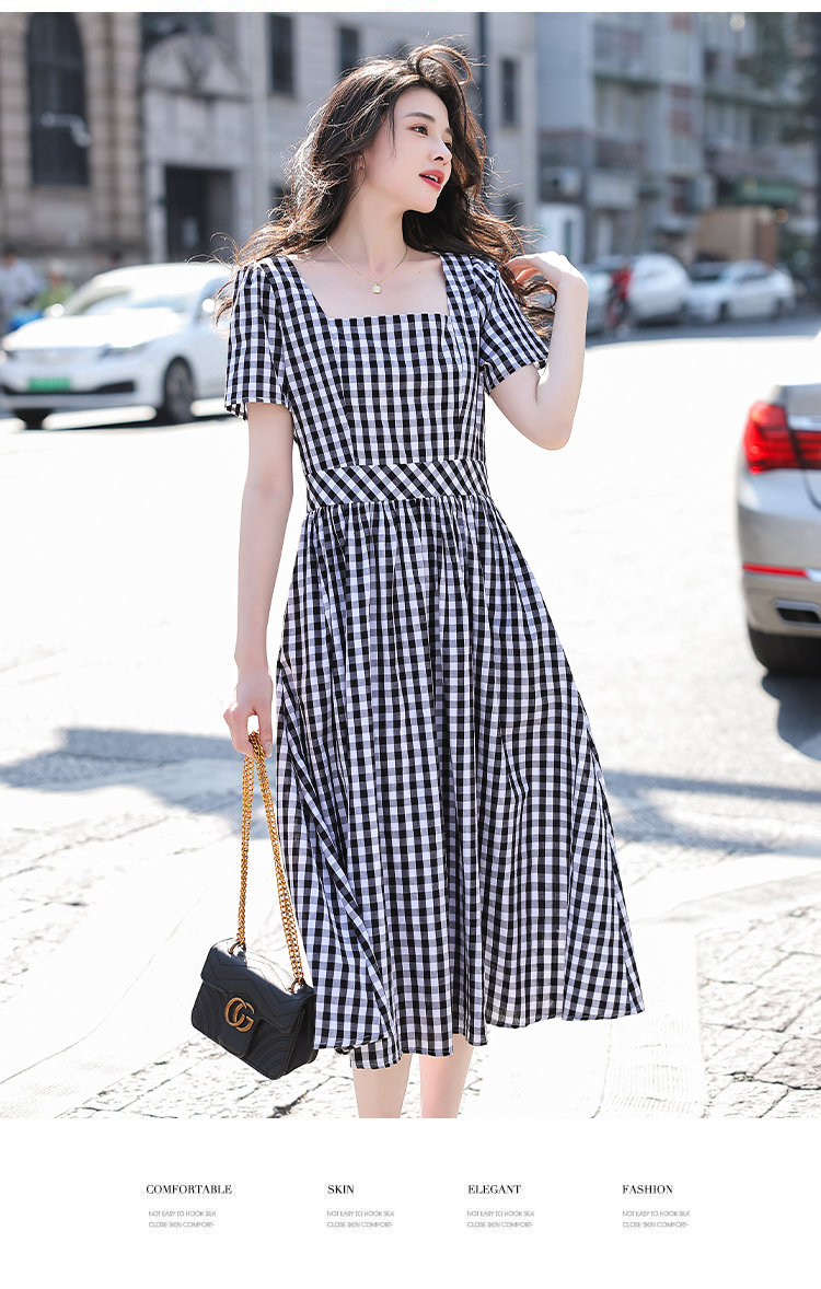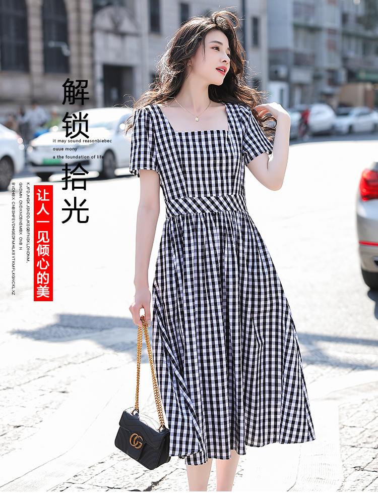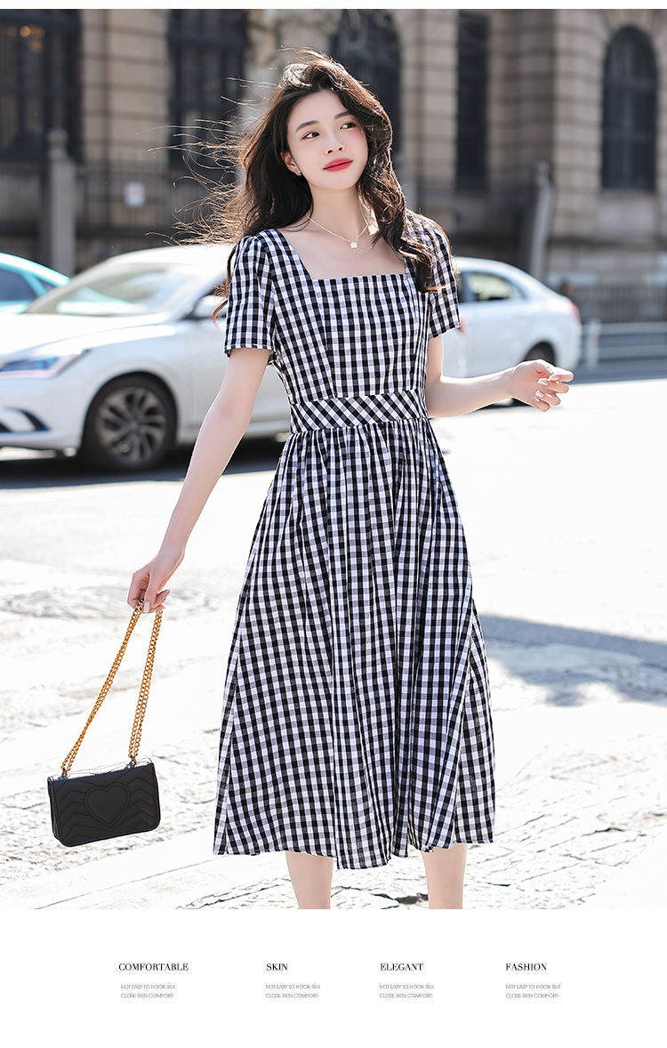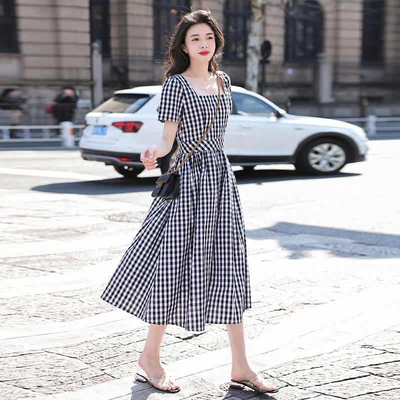 RY507# 法式复古赫本风设计感格子连衣裙2026夏季新款时尚显瘦气质a字裙
