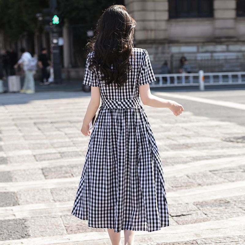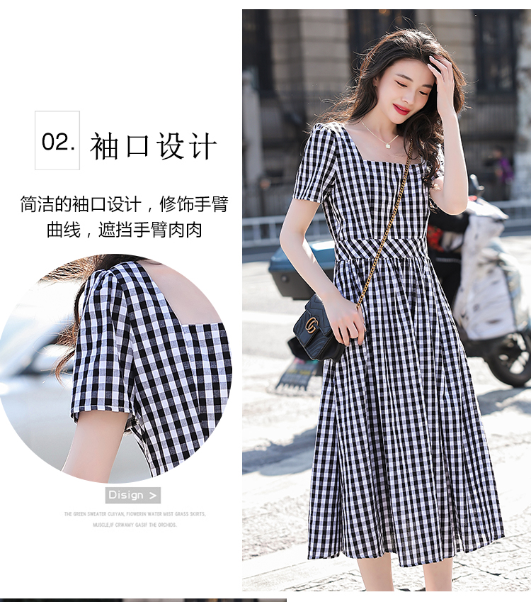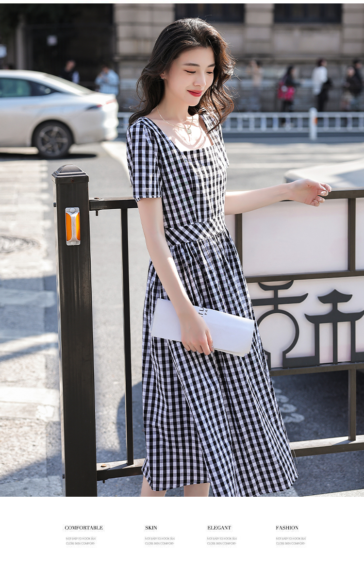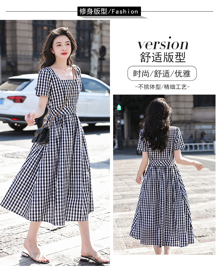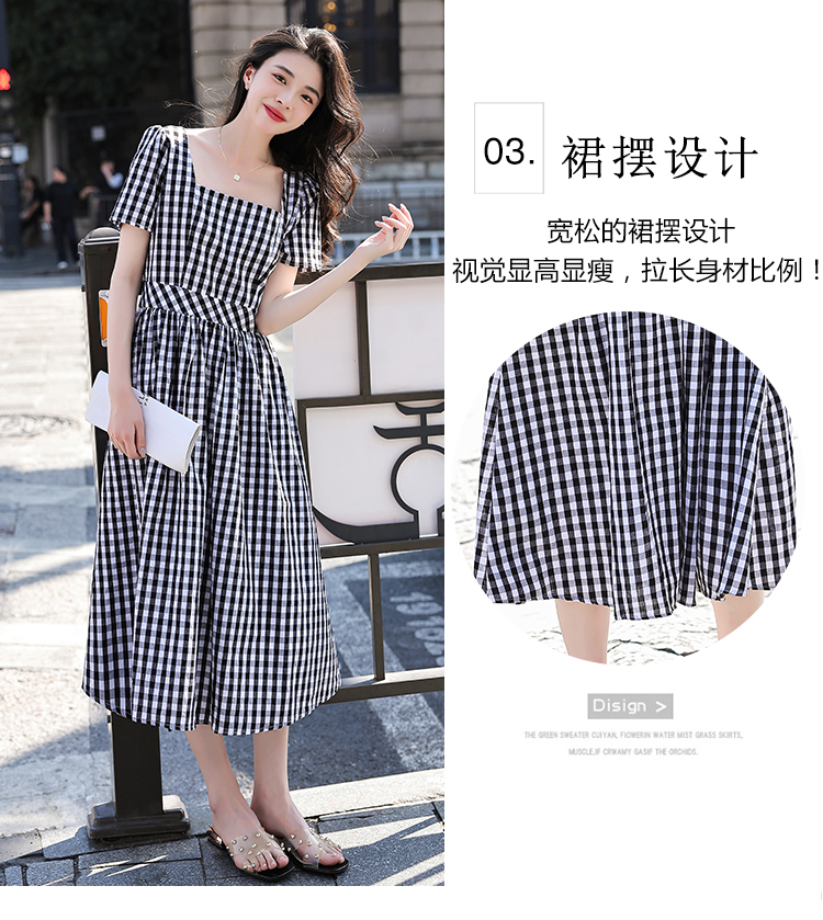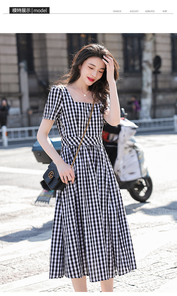 RY507# 法式复古赫本风设计感格子连衣裙2026夏季新款时尚显瘦气质a字裙