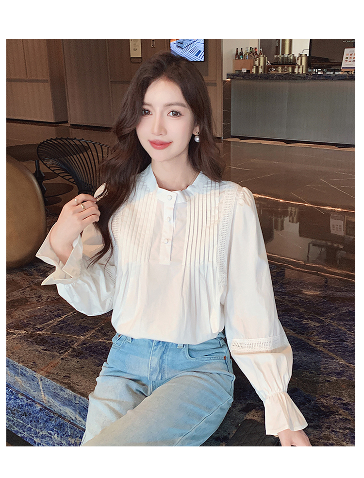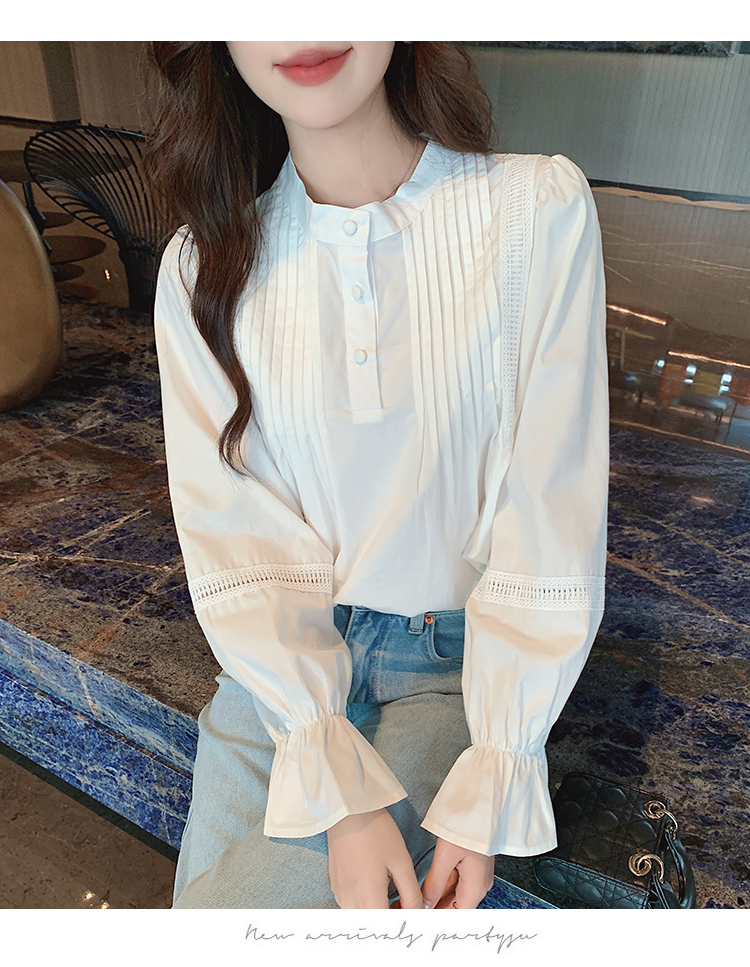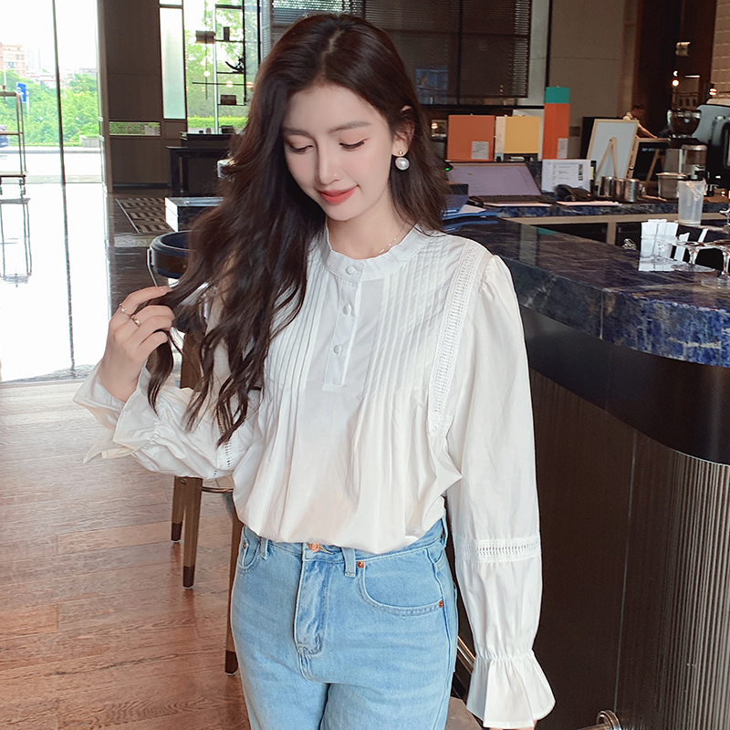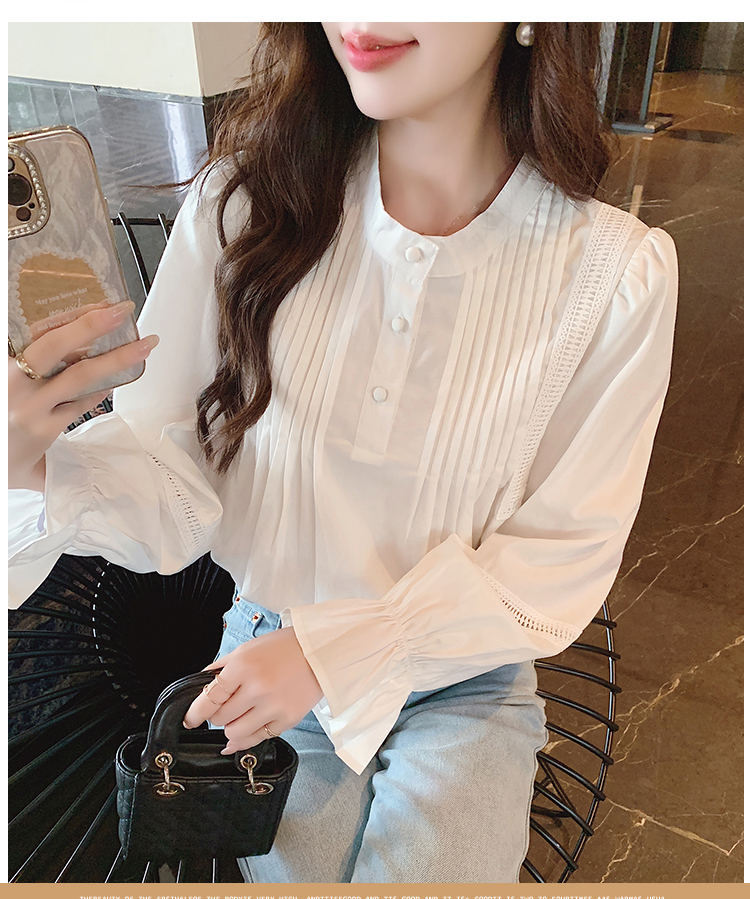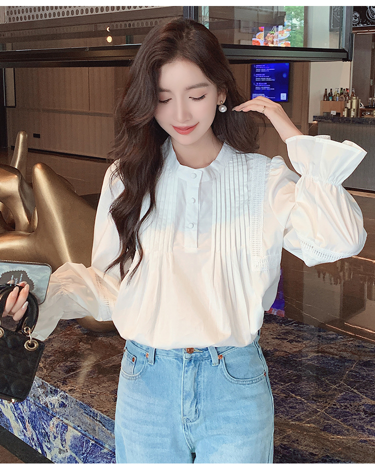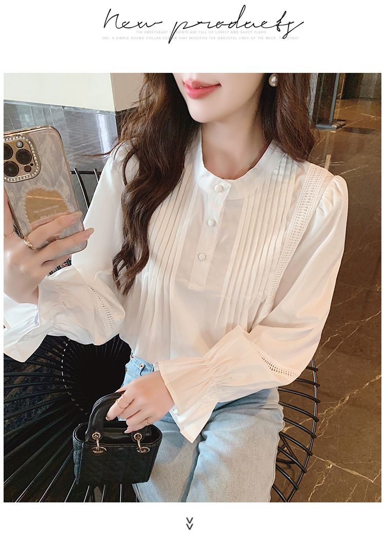 RY586#秋季新款韩版百搭圆领拼接长袖衬衫女上衣秋