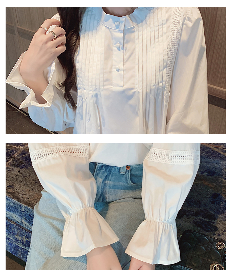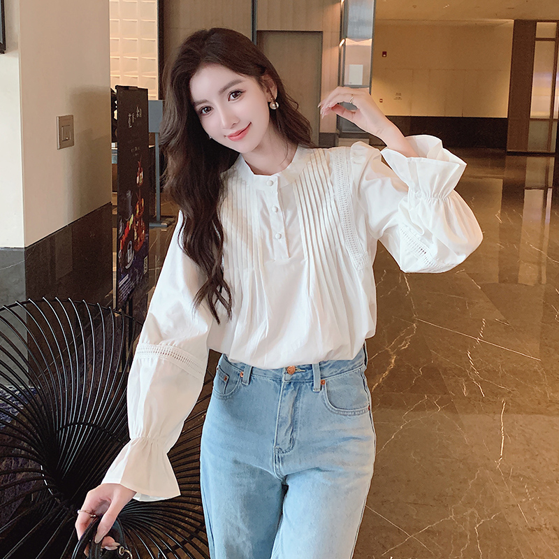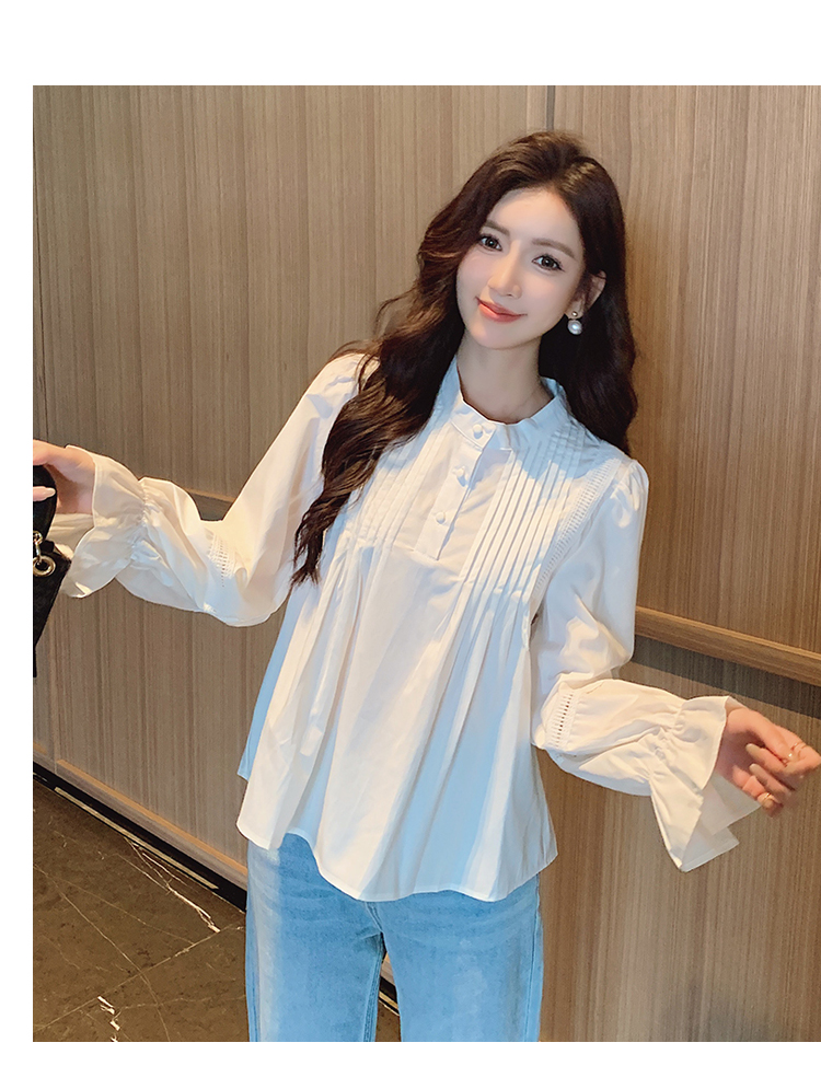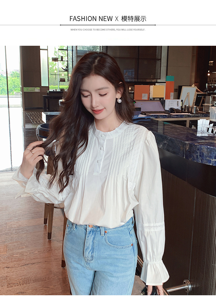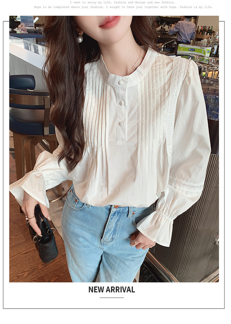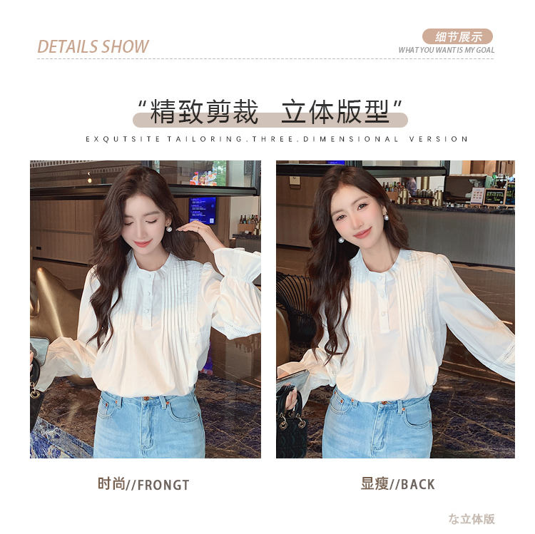 RY586#秋季新款韩版百搭圆领拼接长袖衬衫女上衣秋
