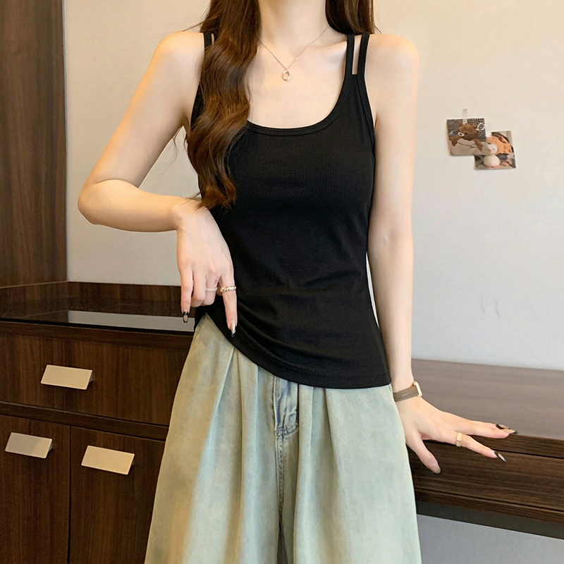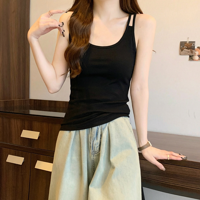 RY738# 大码纯棉设计无袖吊带背心夏季新款胖mm显瘦宽松外穿内搭别致上衣