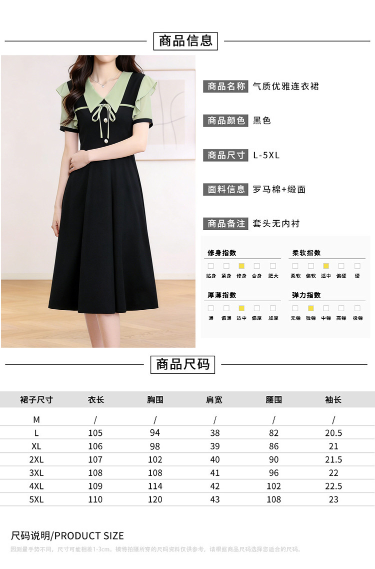 RY791# 短袖夏季新款淑女范气质假两件套修身中长款连衣裙子大码女装胖mm
