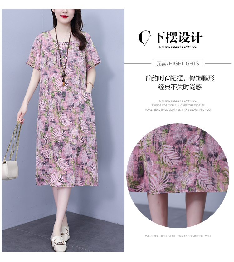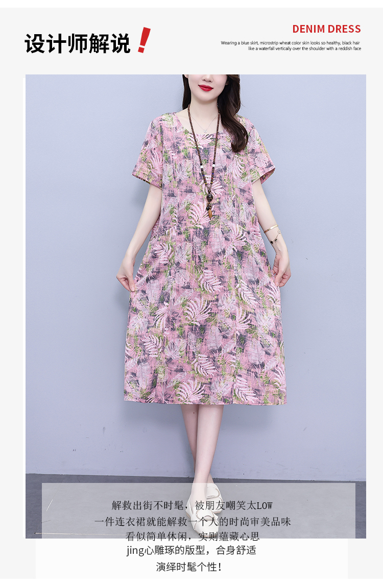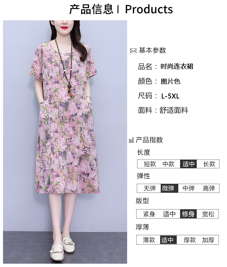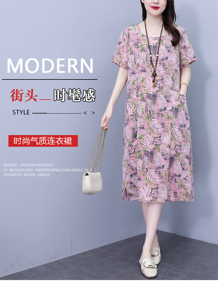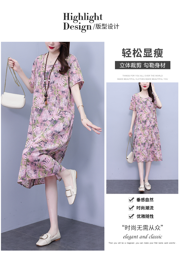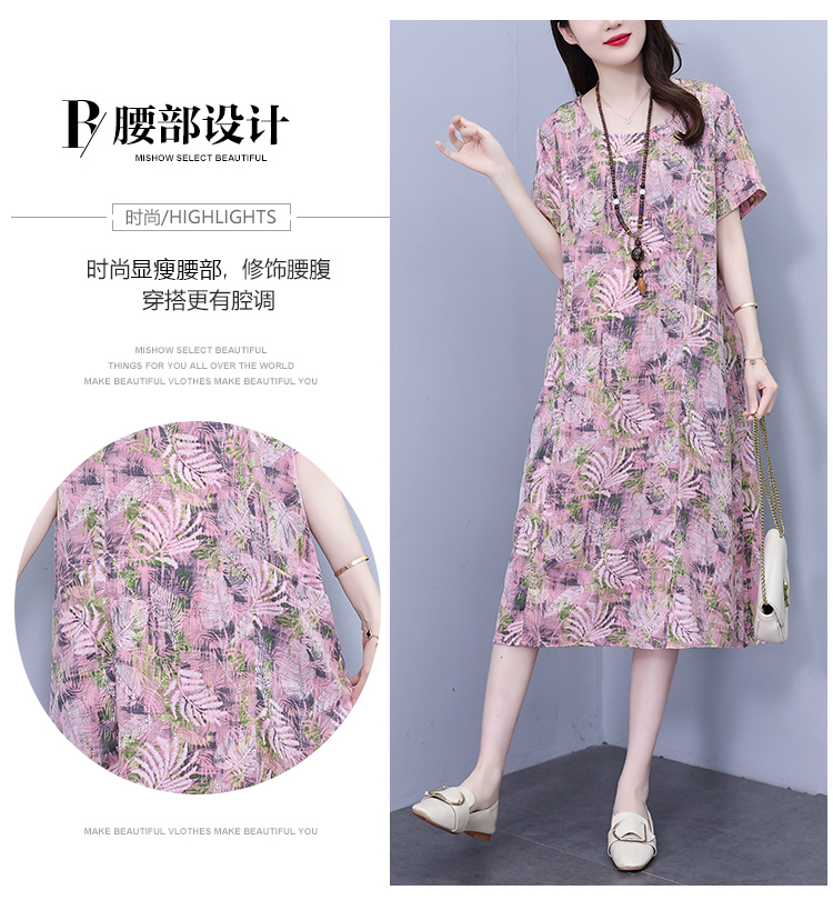 RY817# 实拍大码连衣裙2026夏季新款女高端印花遮肚中长款显瘦气质裙