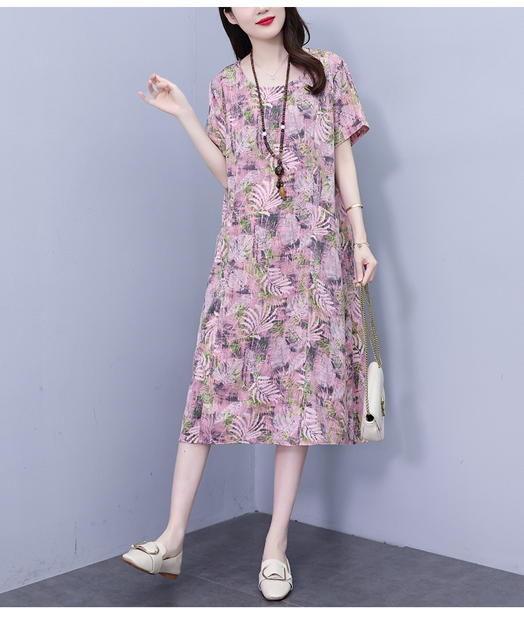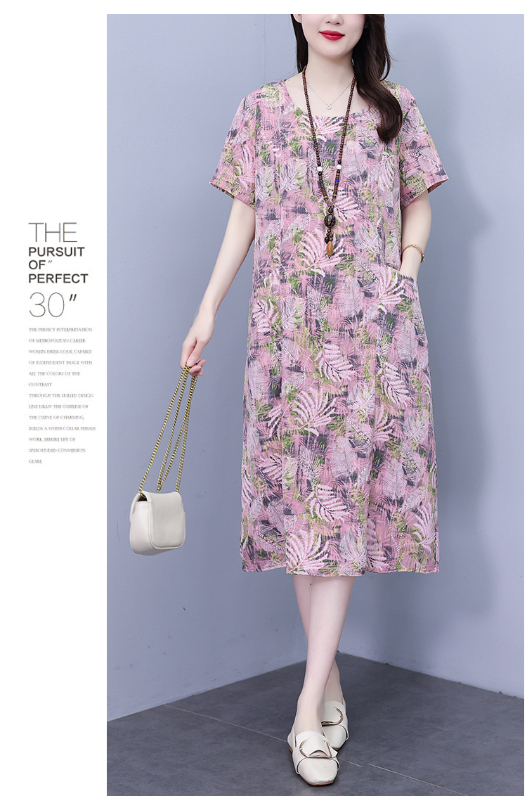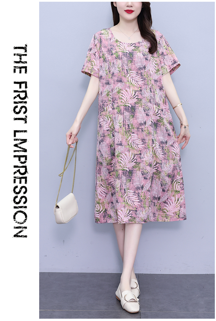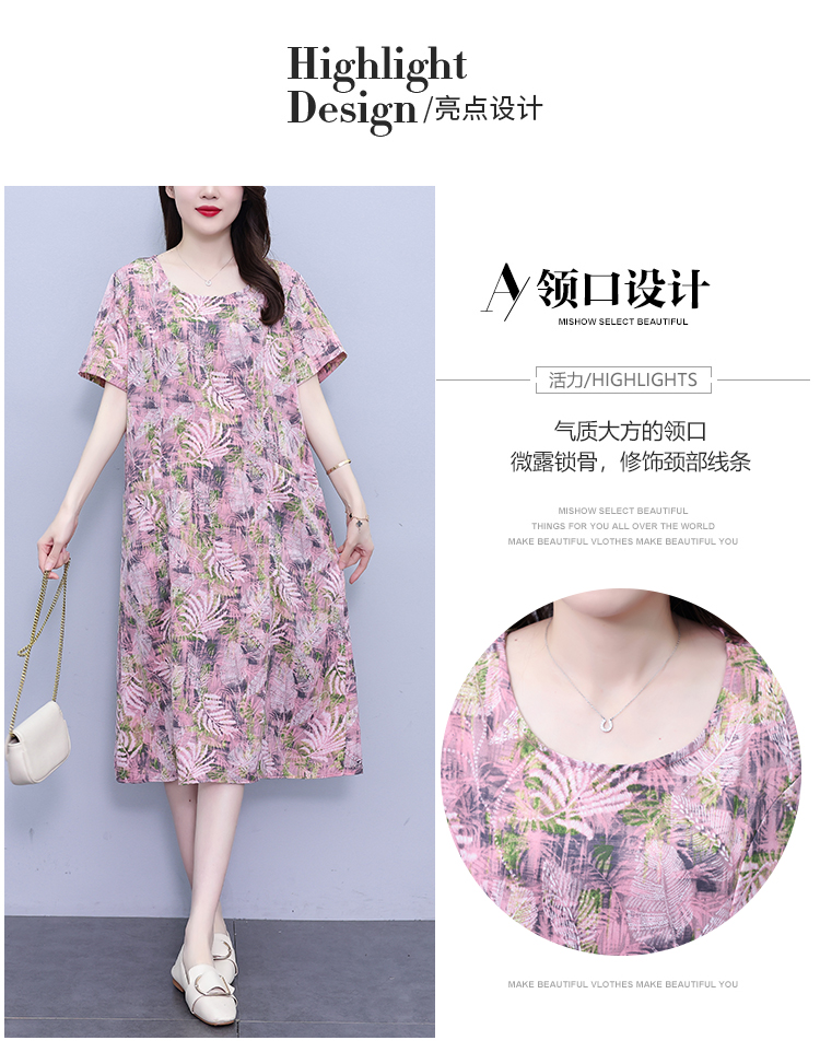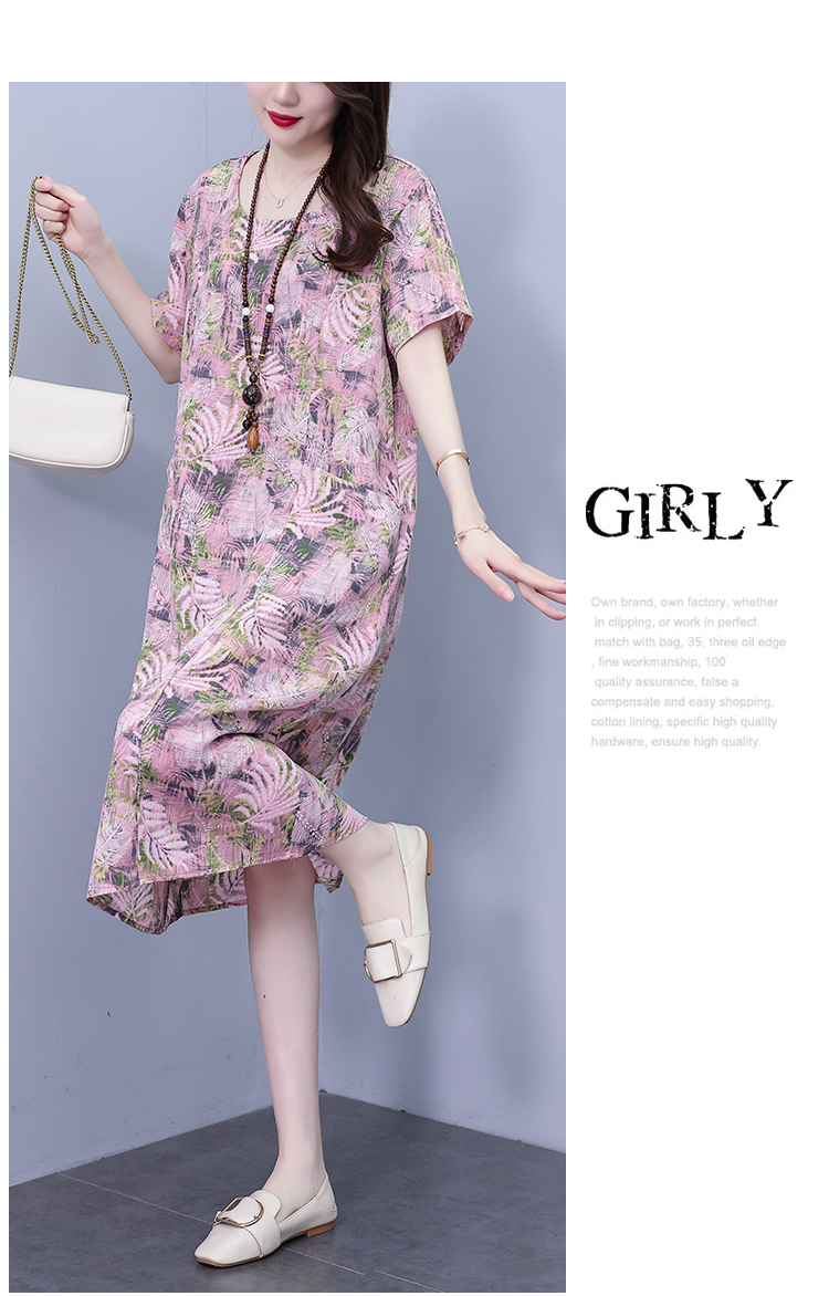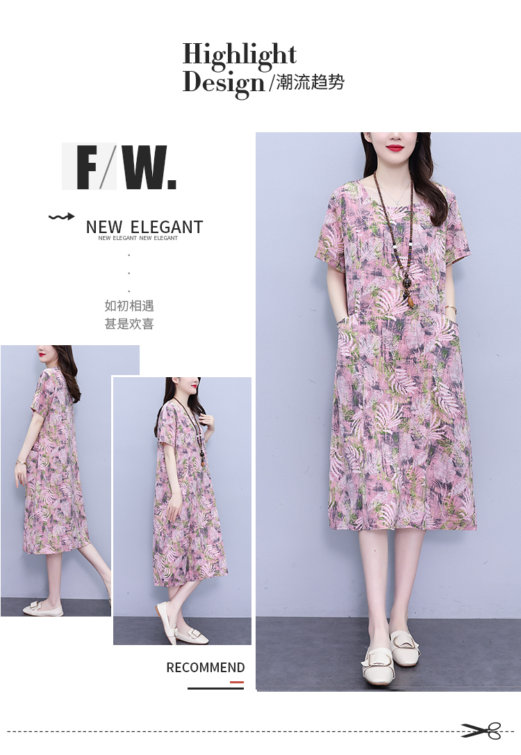 RY817# 实拍大码连衣裙2026夏季新款女高端印花遮肚中长款显瘦气质裙