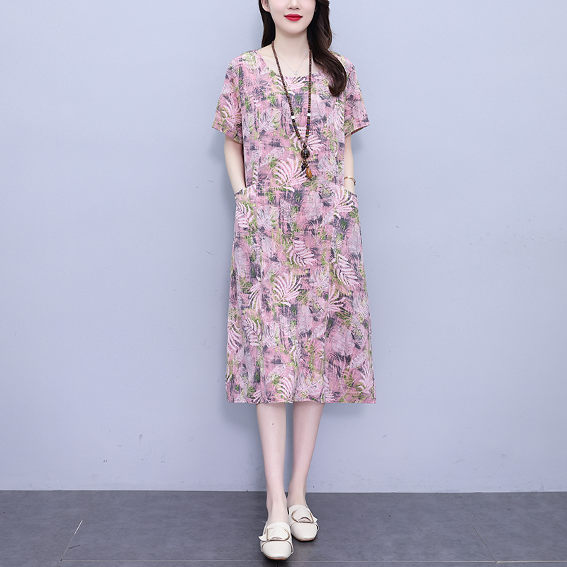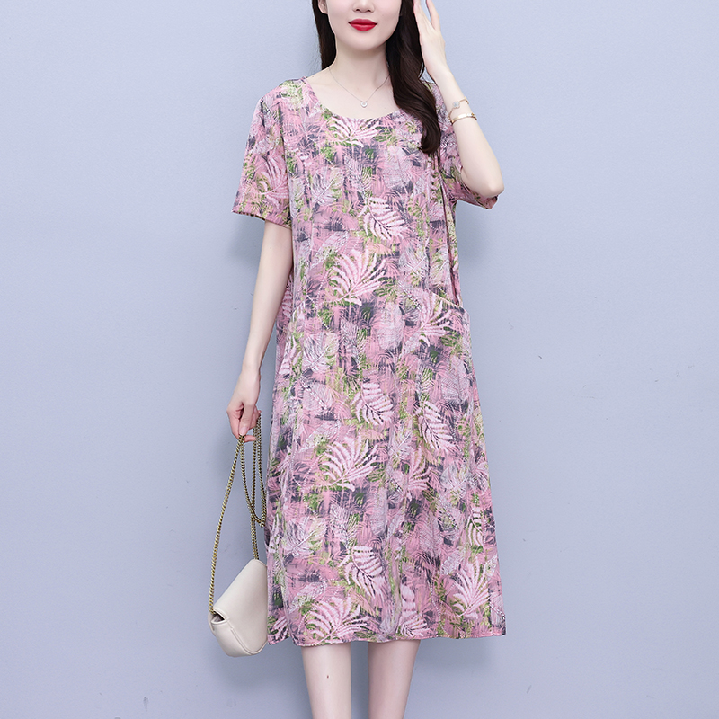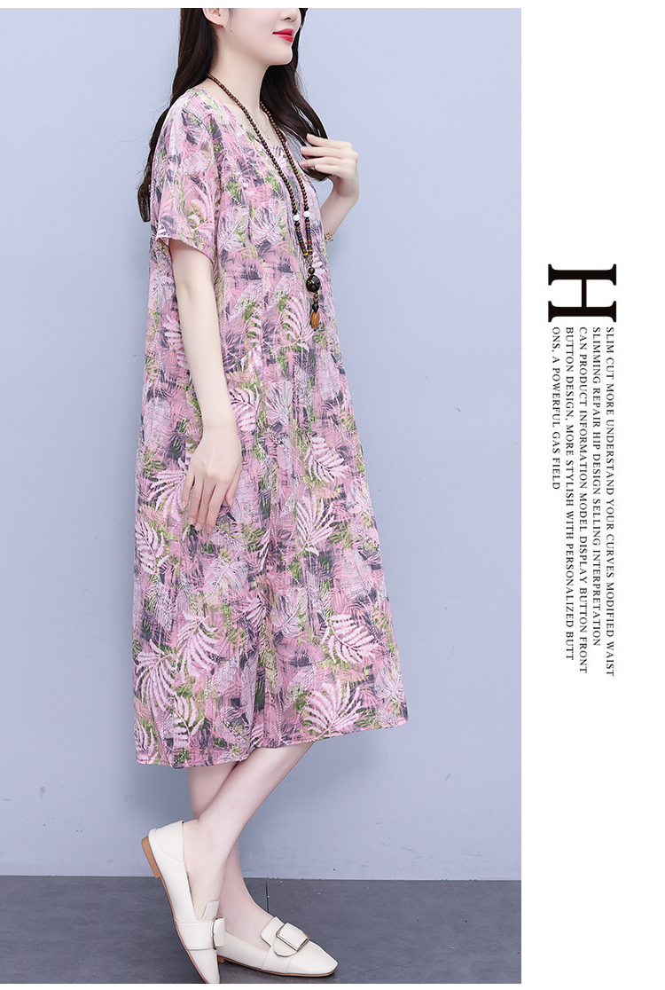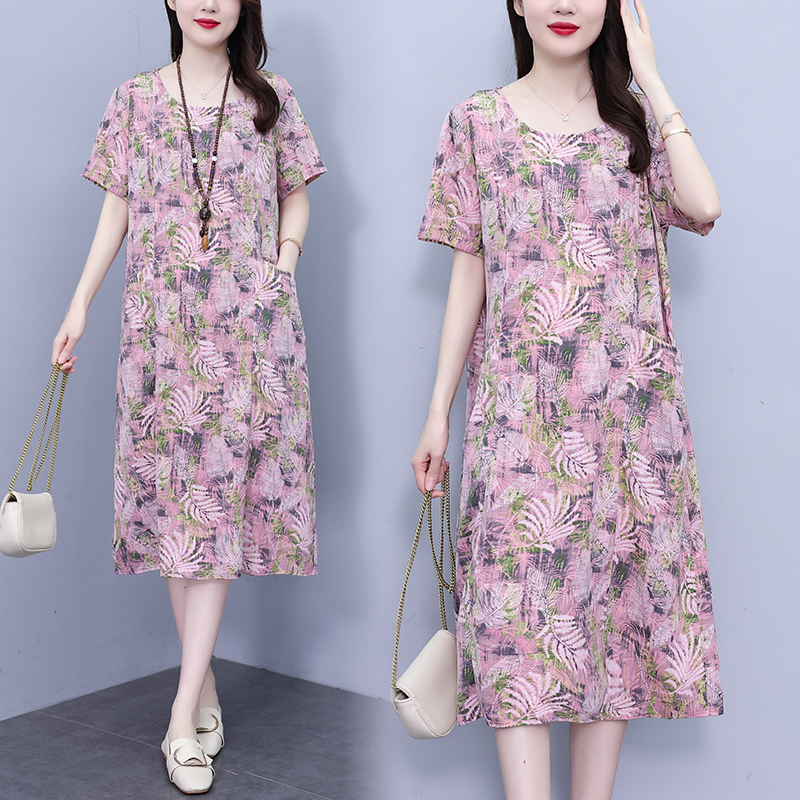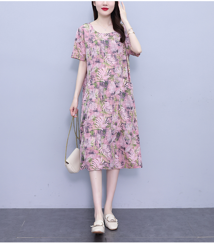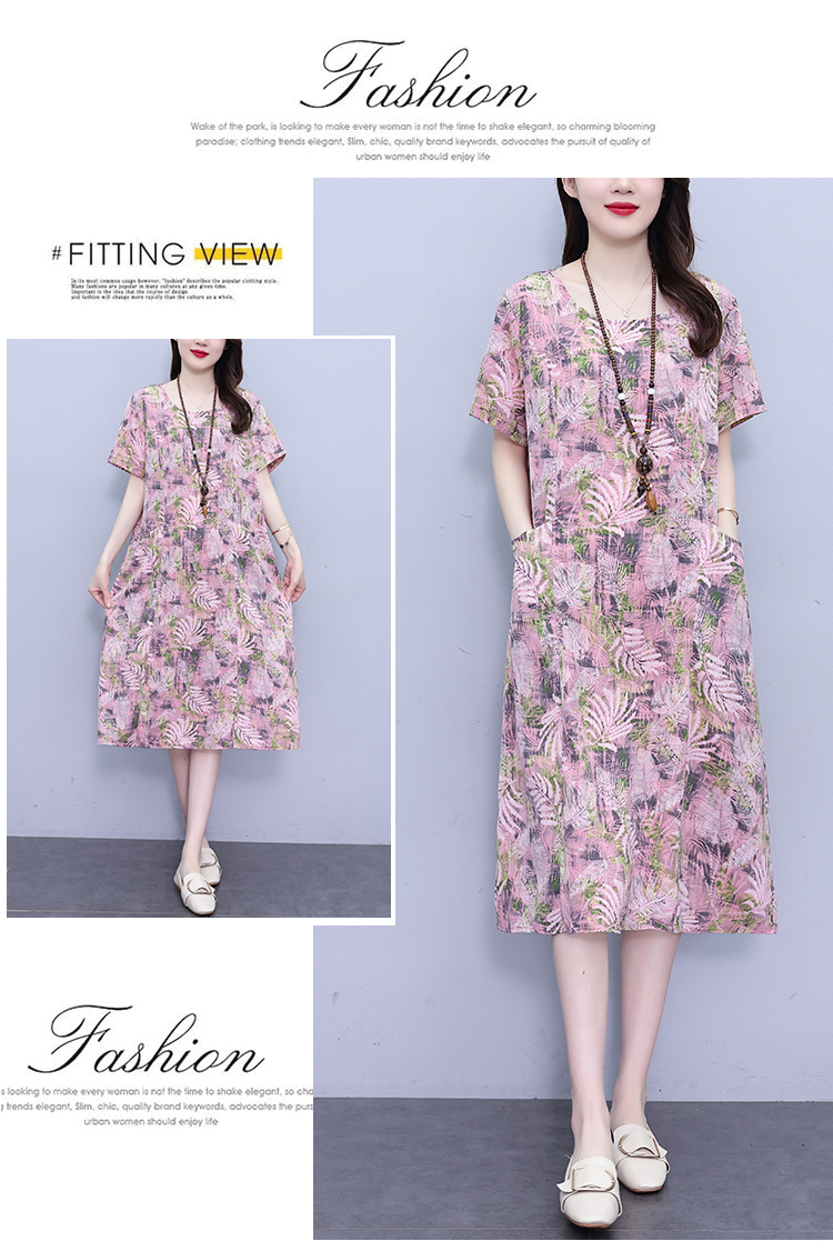 RY817# 实拍大码连衣裙2026夏季新款女高端印花遮肚中长款显瘦气质裙