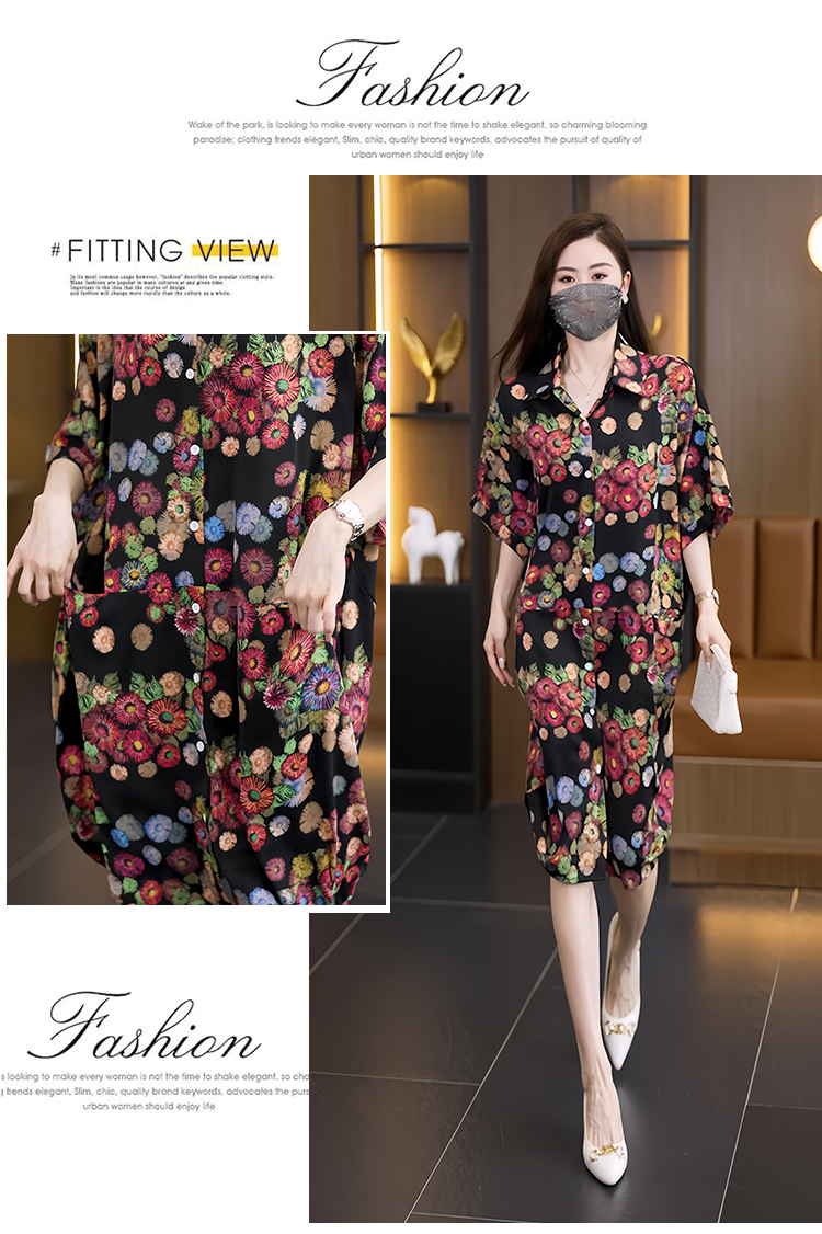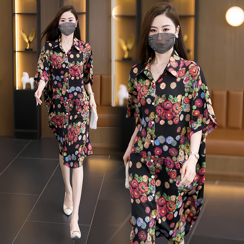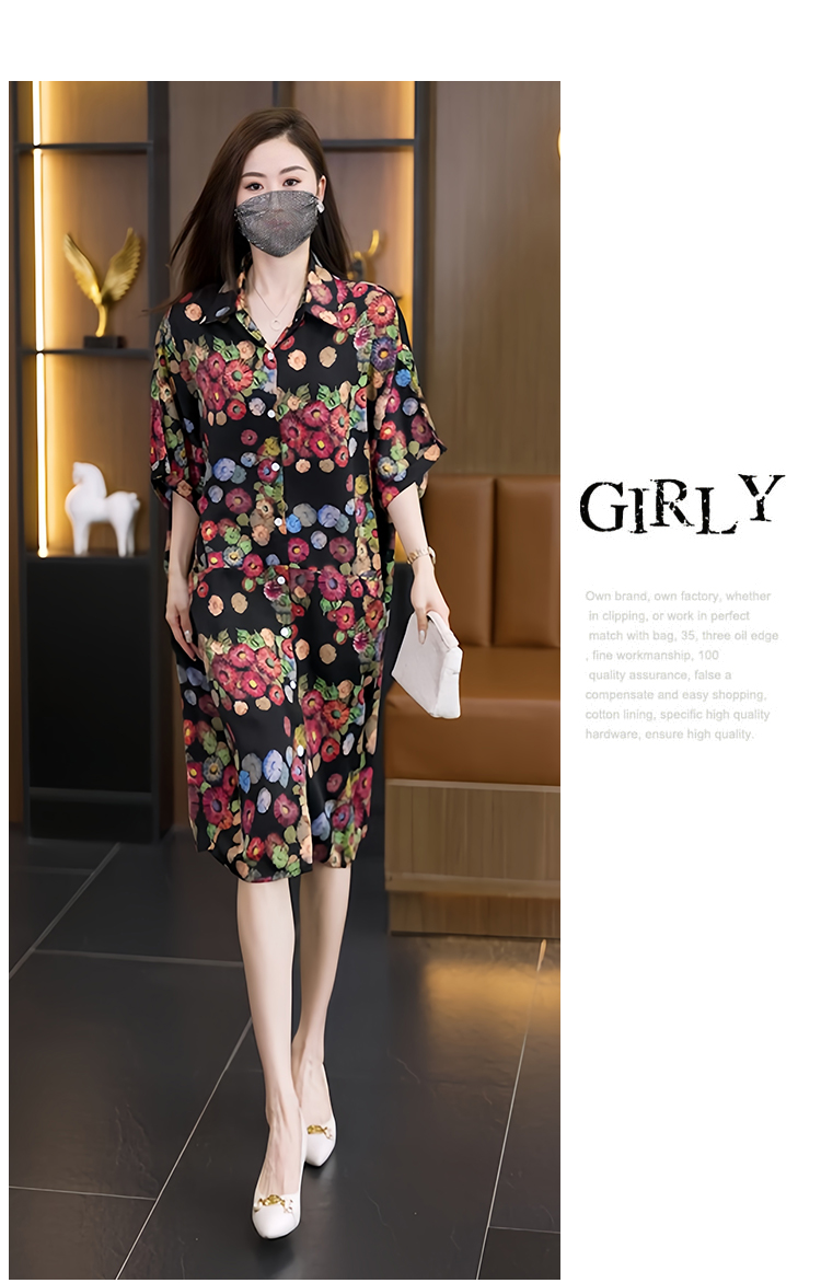 RY821# 实拍2026夏季新款韩版POLO领遮肉衬衫连衣裙中长款休闲宽松型