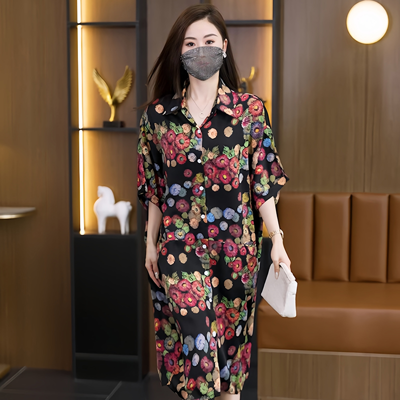 RY639# 2025新款桑蚕丝印花连衣裙女春夏新款重磅高端真丝度假裙子
