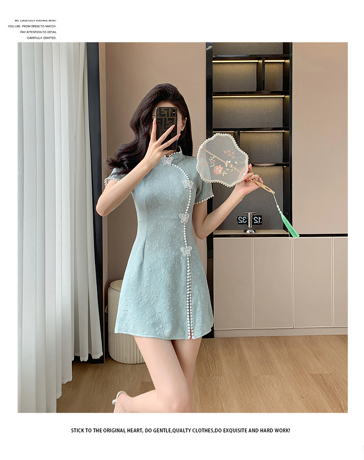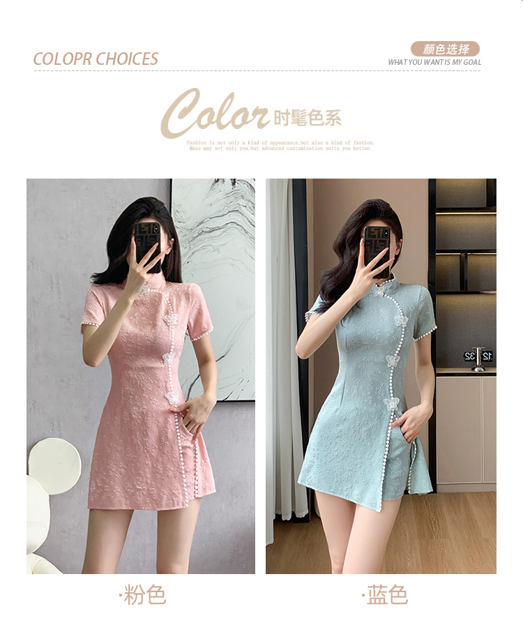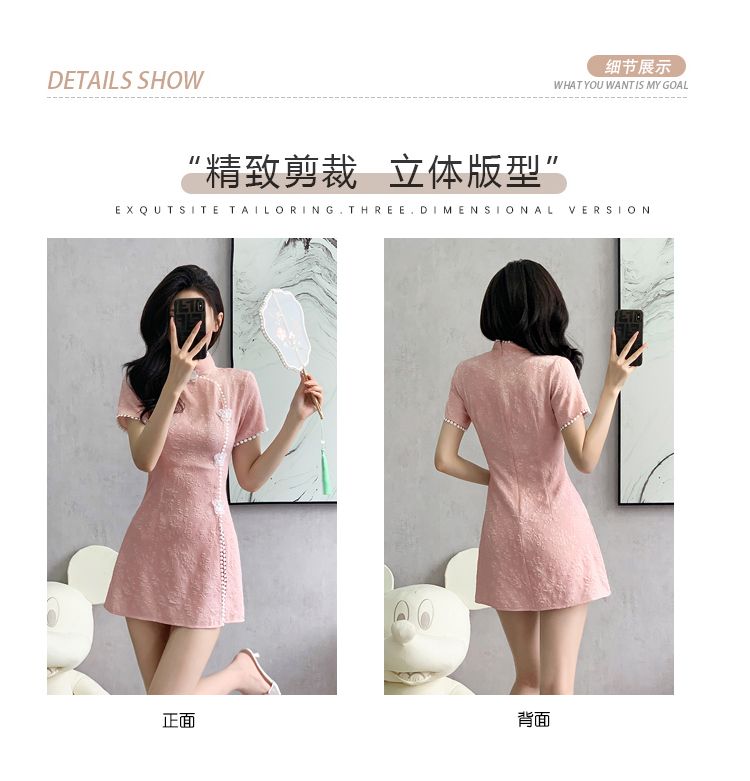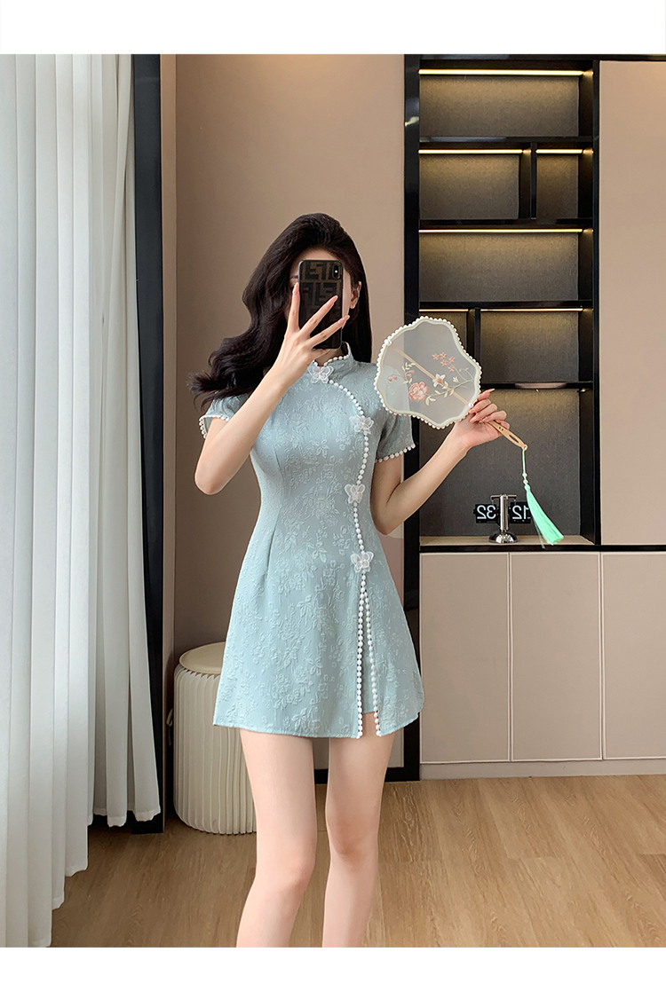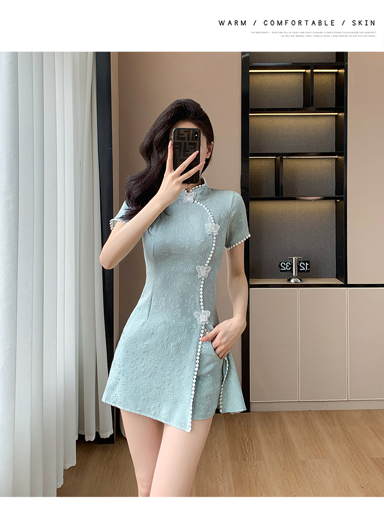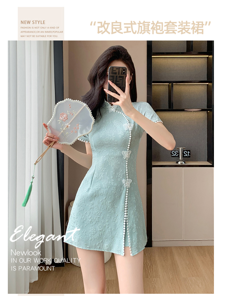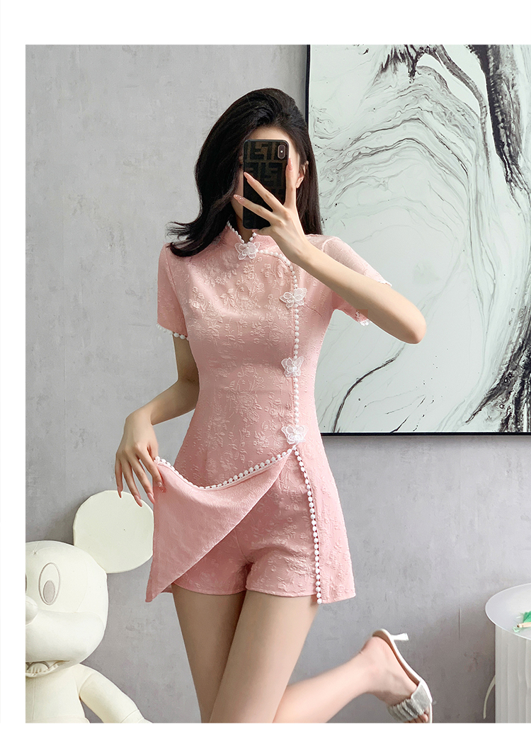 RY847# 实拍夏季提花拼接新中式改良旗袍连衣裙短裤两件套