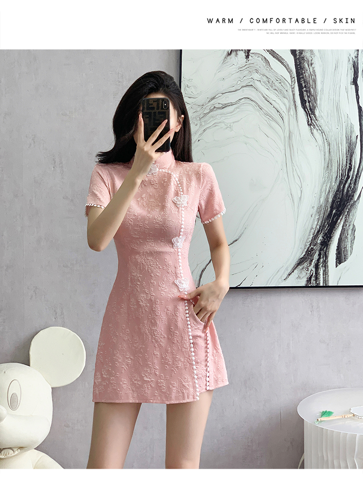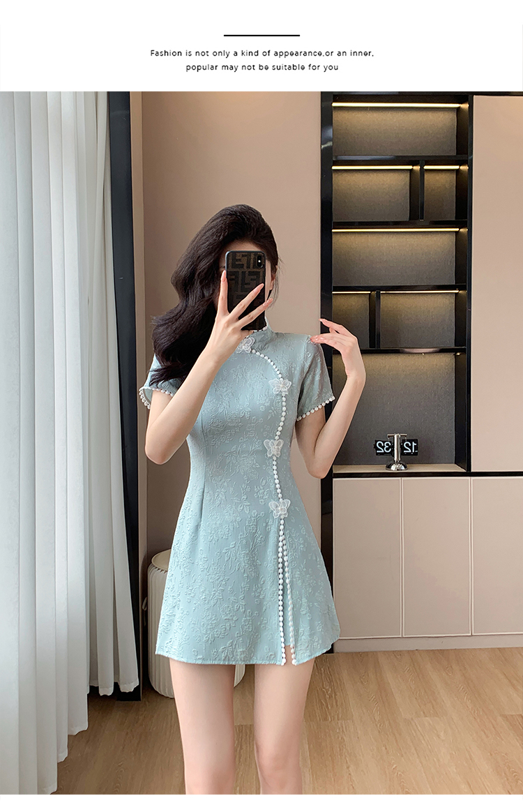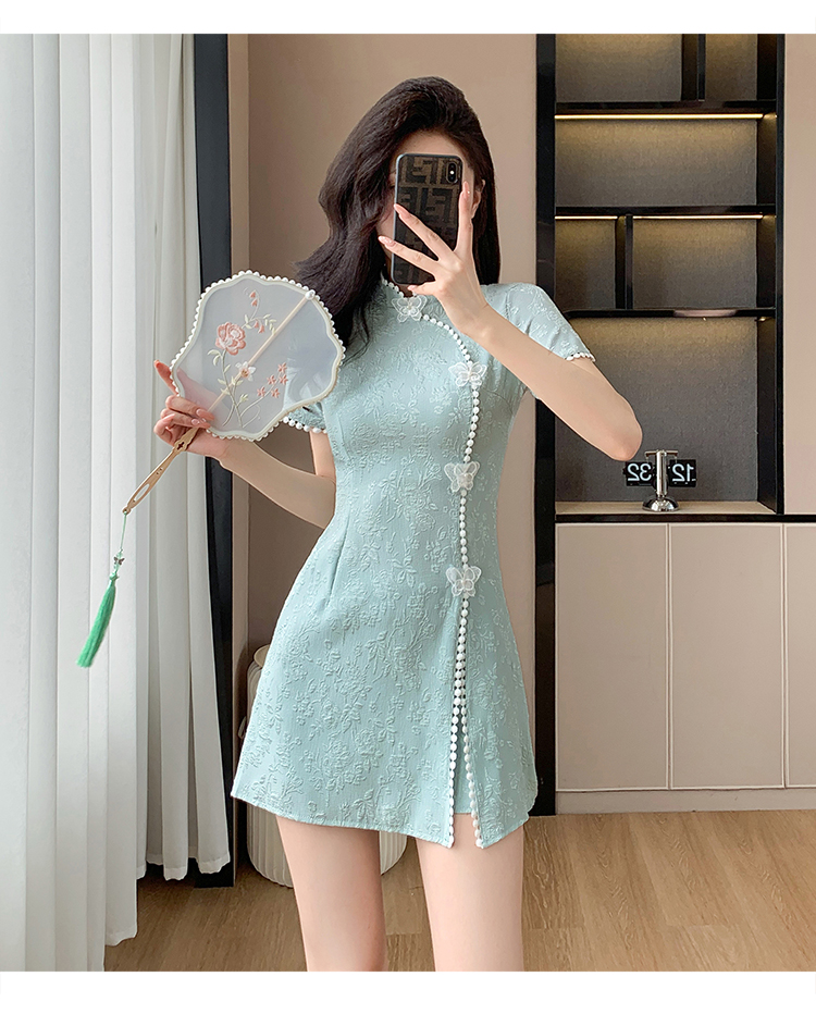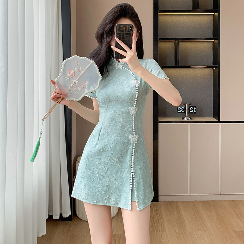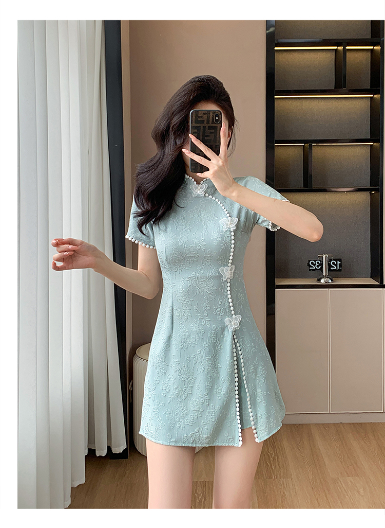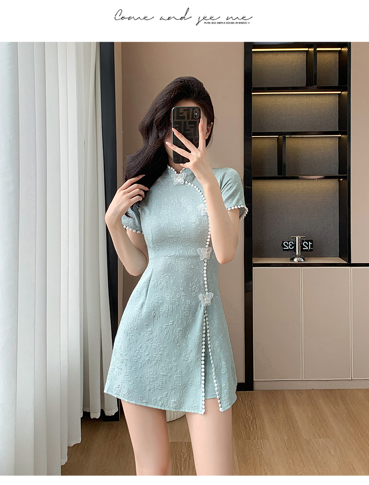 RY847# 实拍夏季提花拼接新中式改良旗袍连衣裙短裤两件套