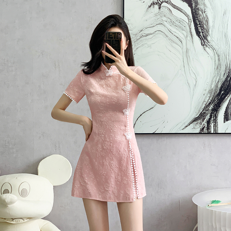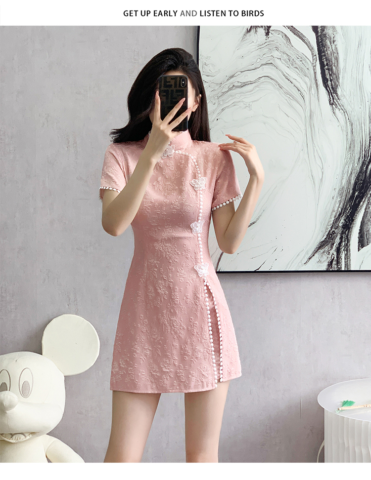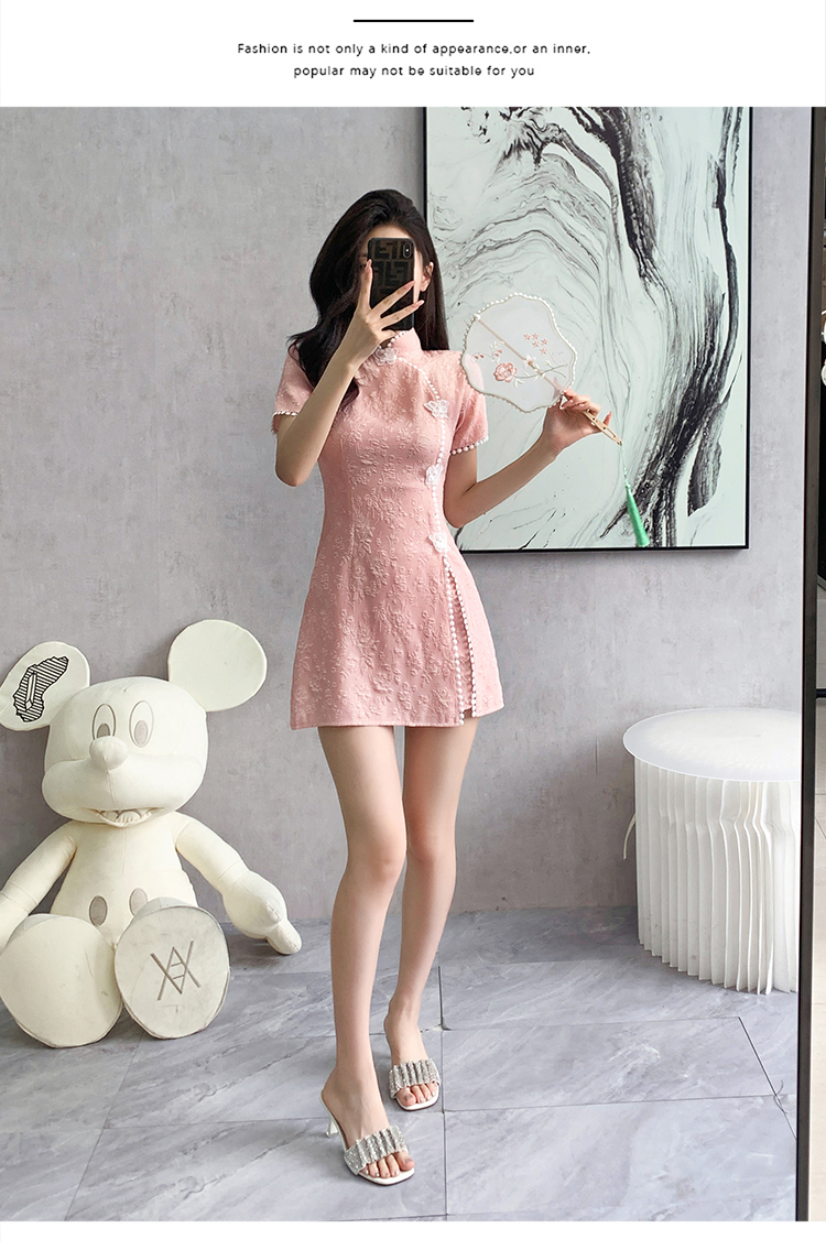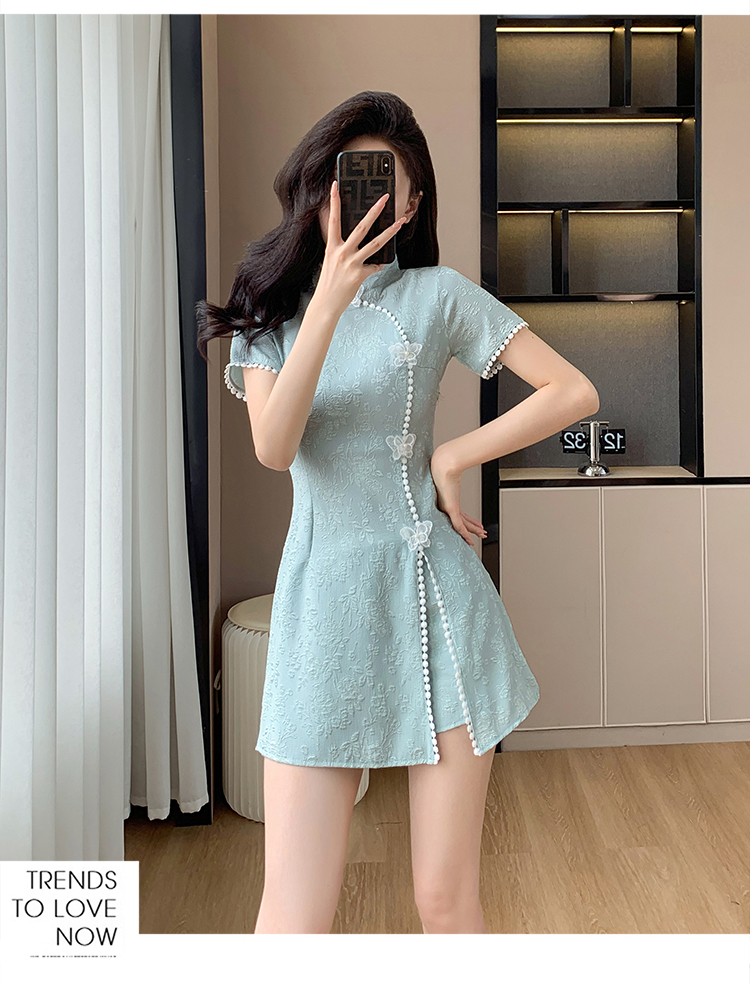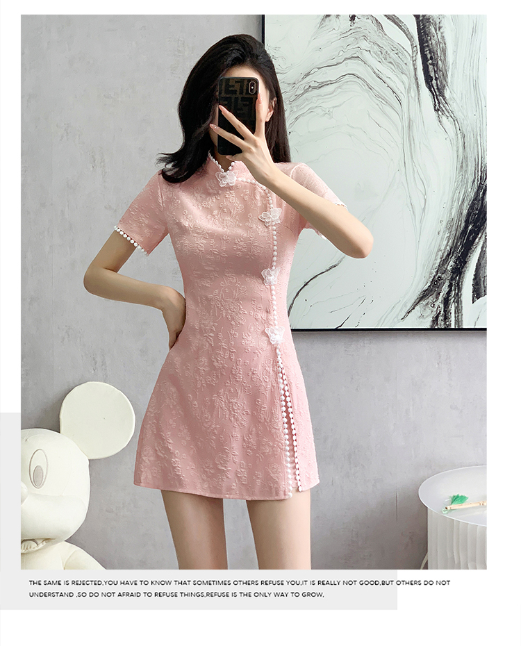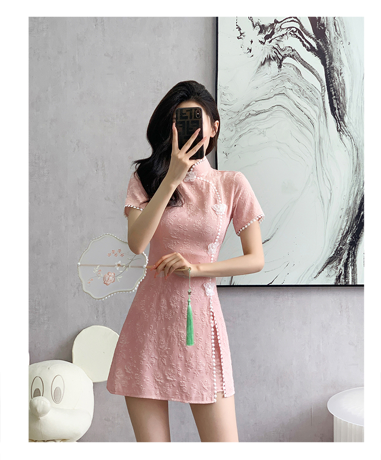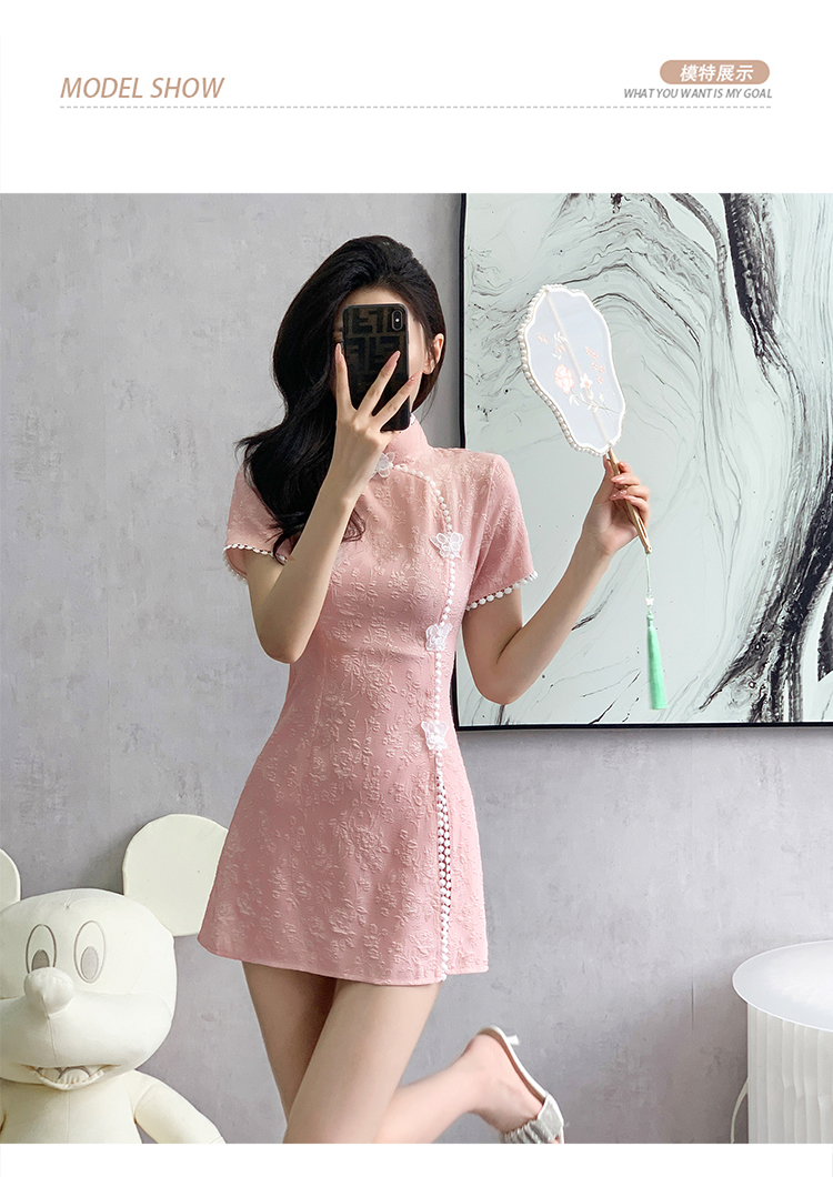 RY847# 实拍夏季提花拼接新中式改良旗袍连衣裙短裤两件套