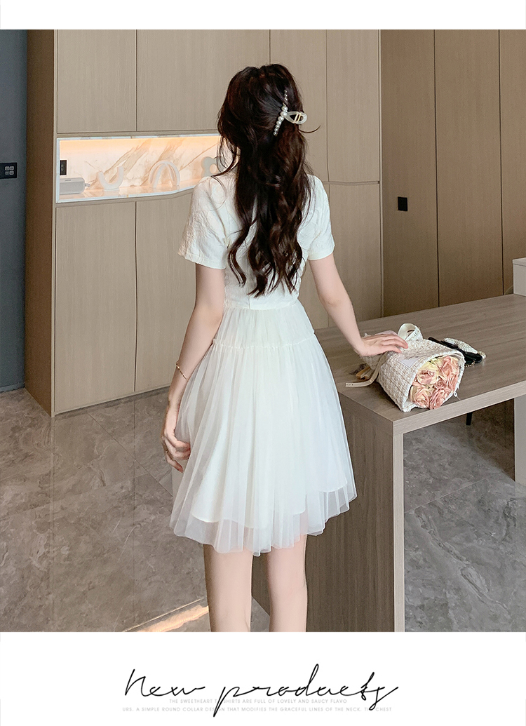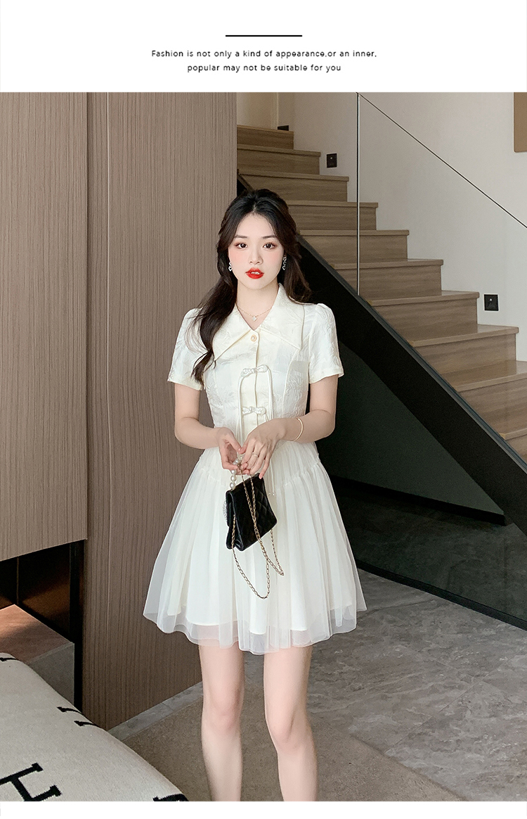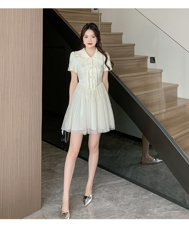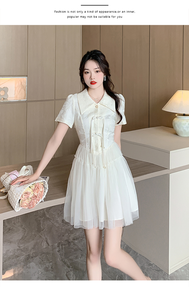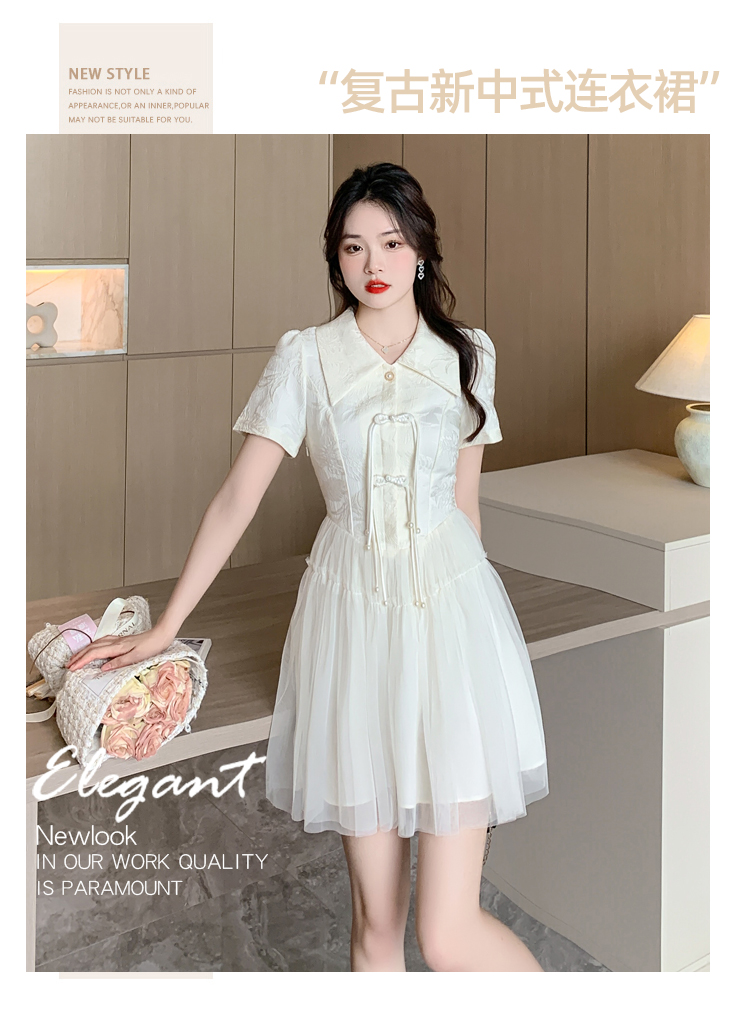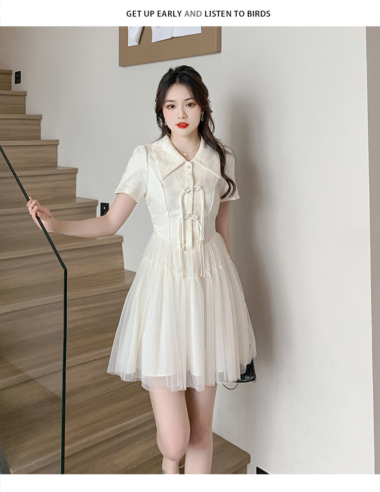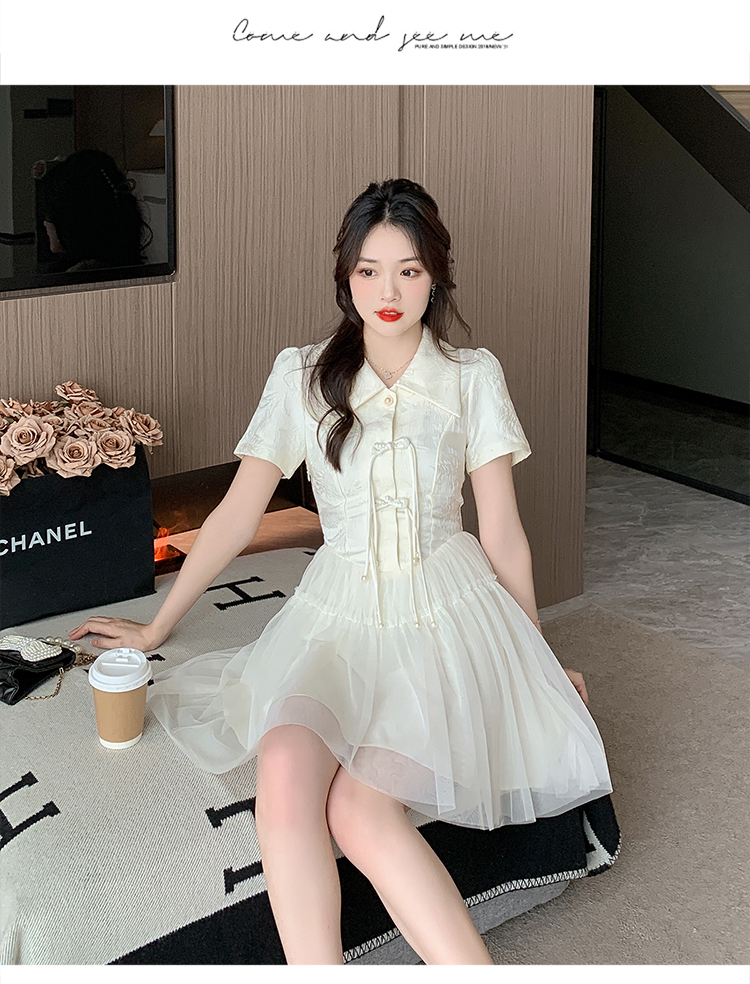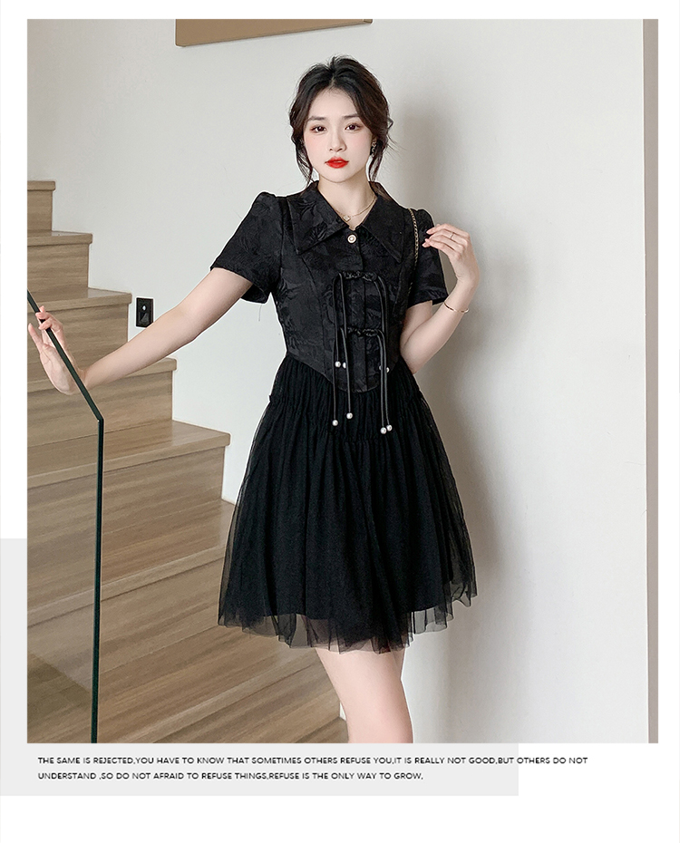 RY851# 实拍夏季新款提花拼接珍珠新中式改良旗袍时尚网纱蓬蓬连衣裙