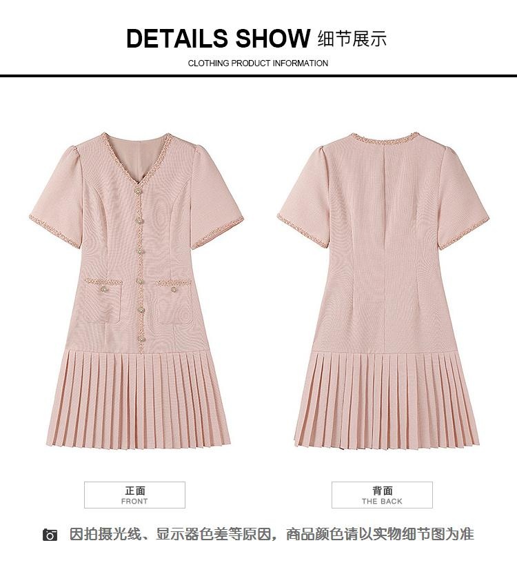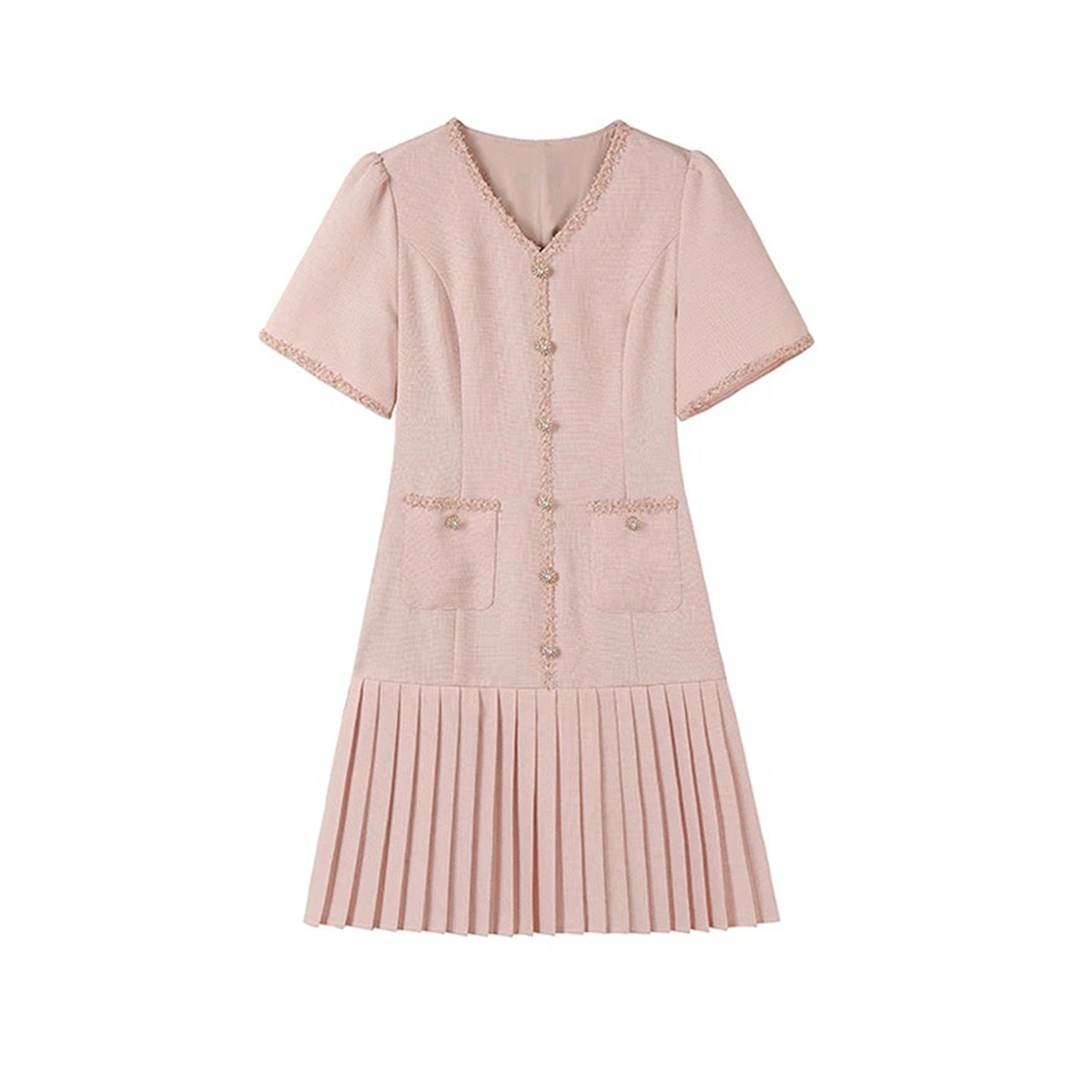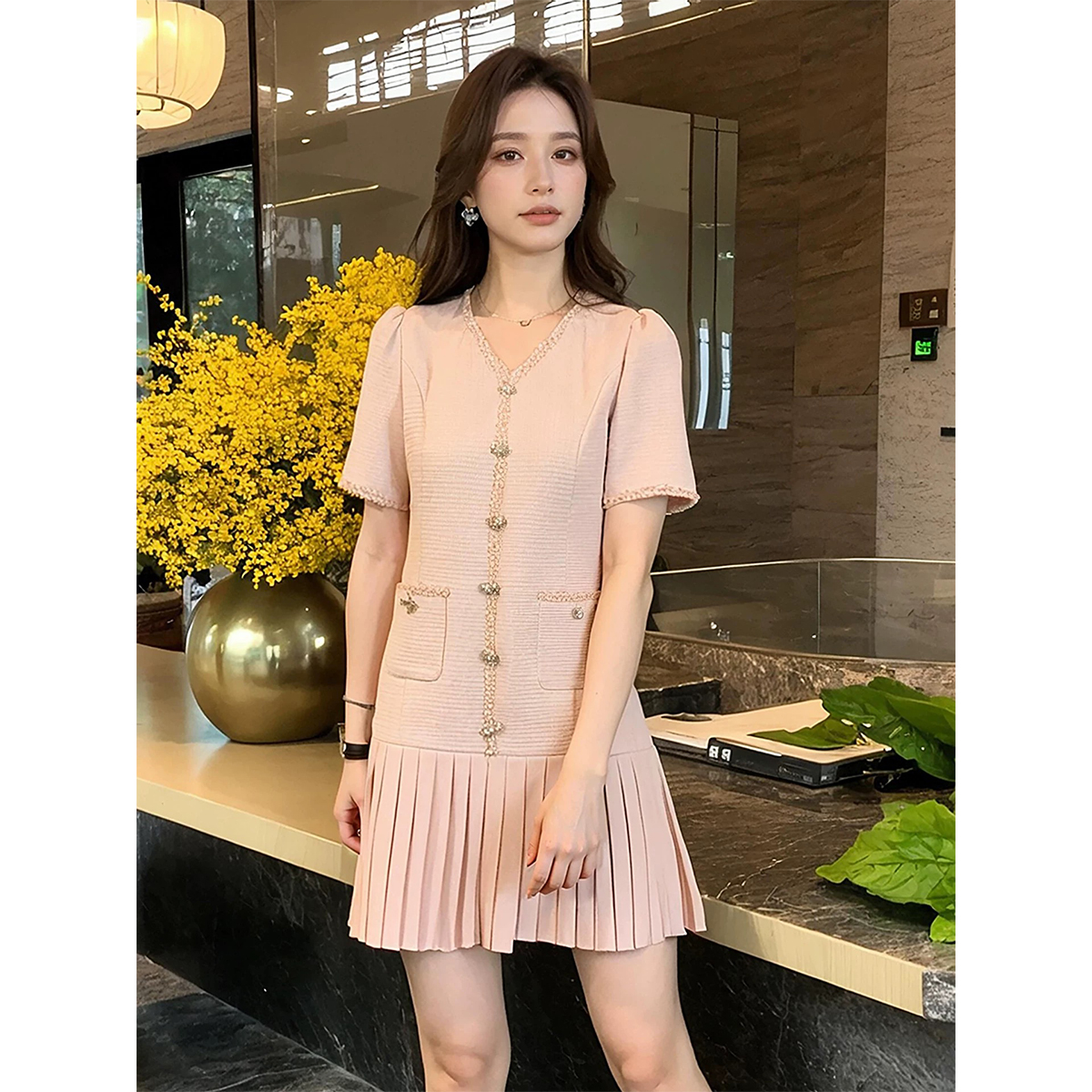RY854# 大码女装2026夏季轻奢小香风连衣裙胖妹妹时尚百褶