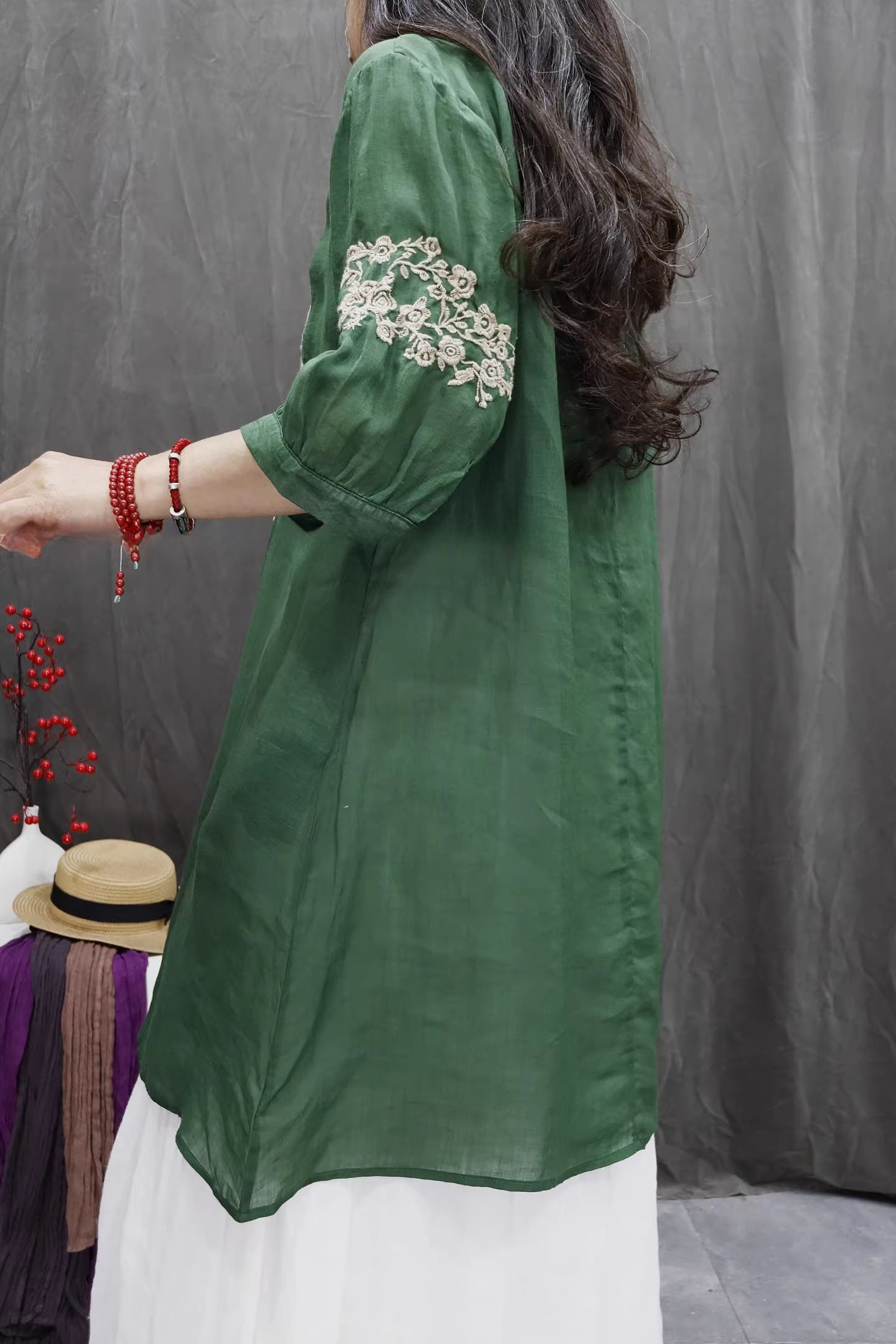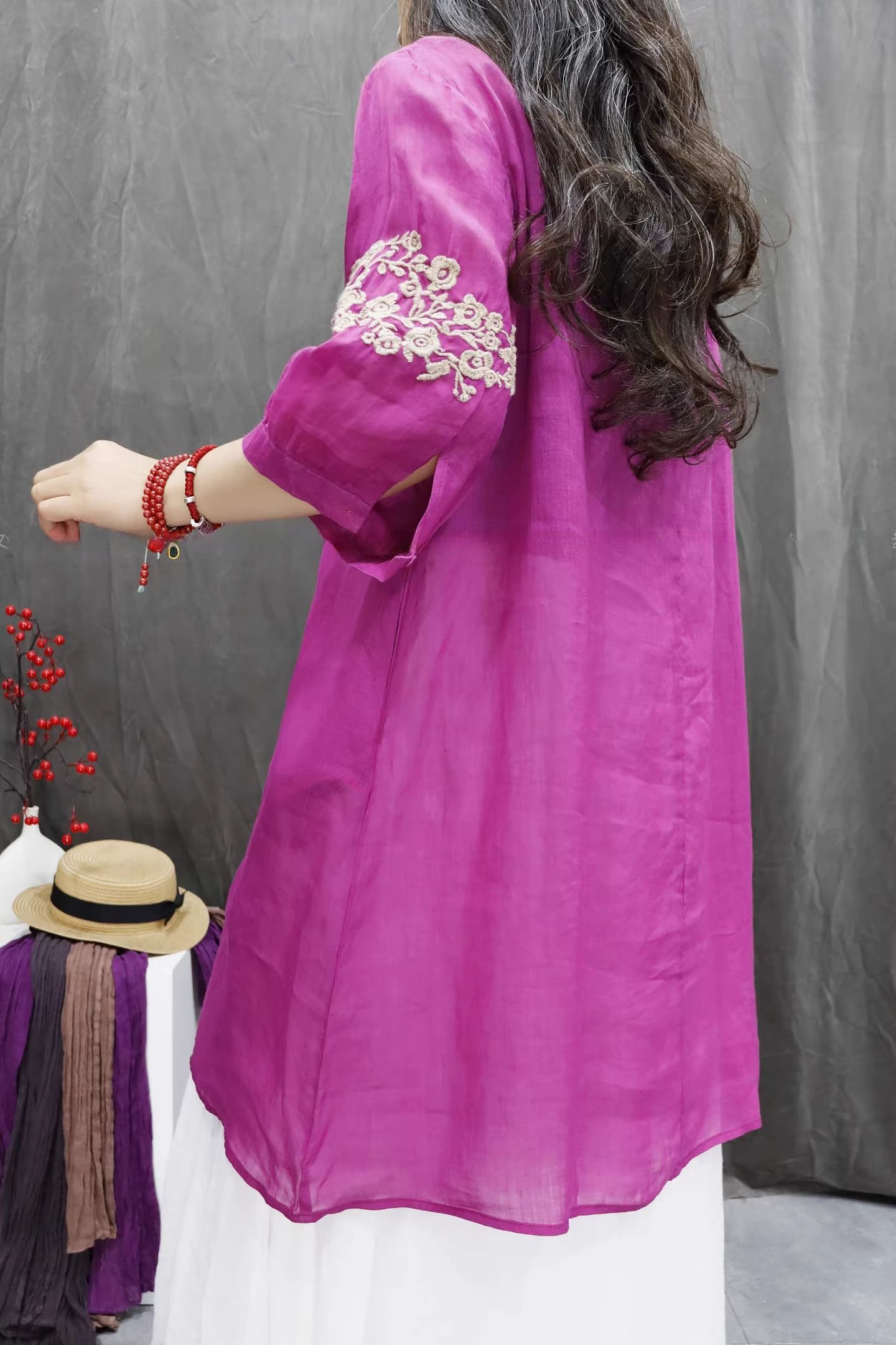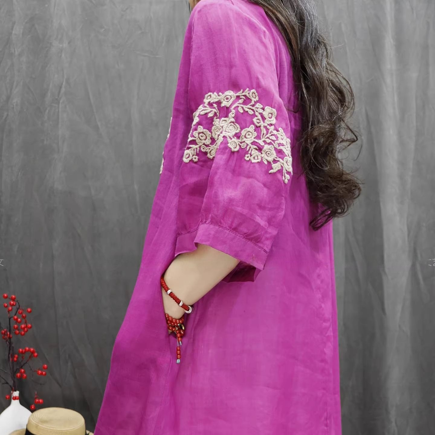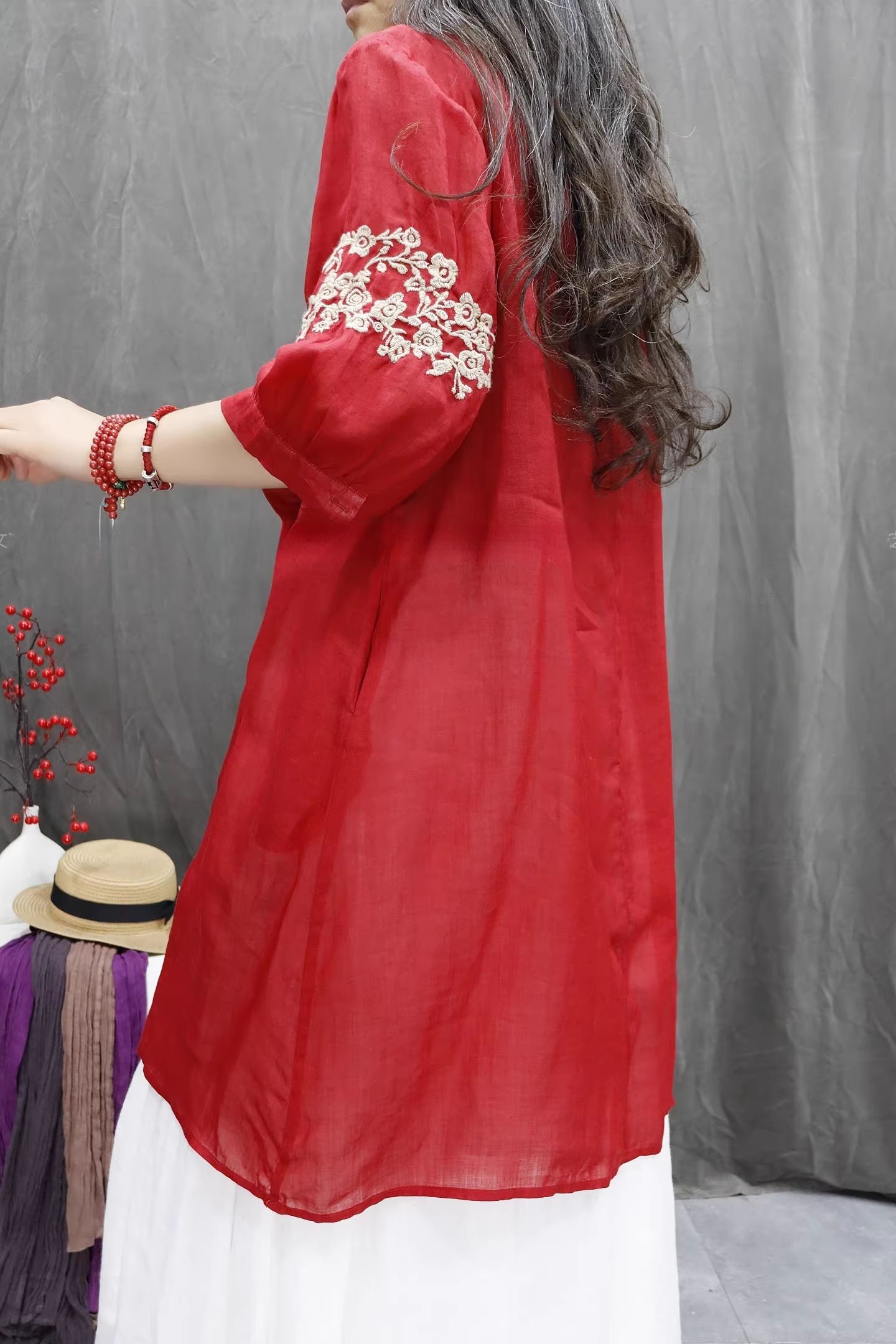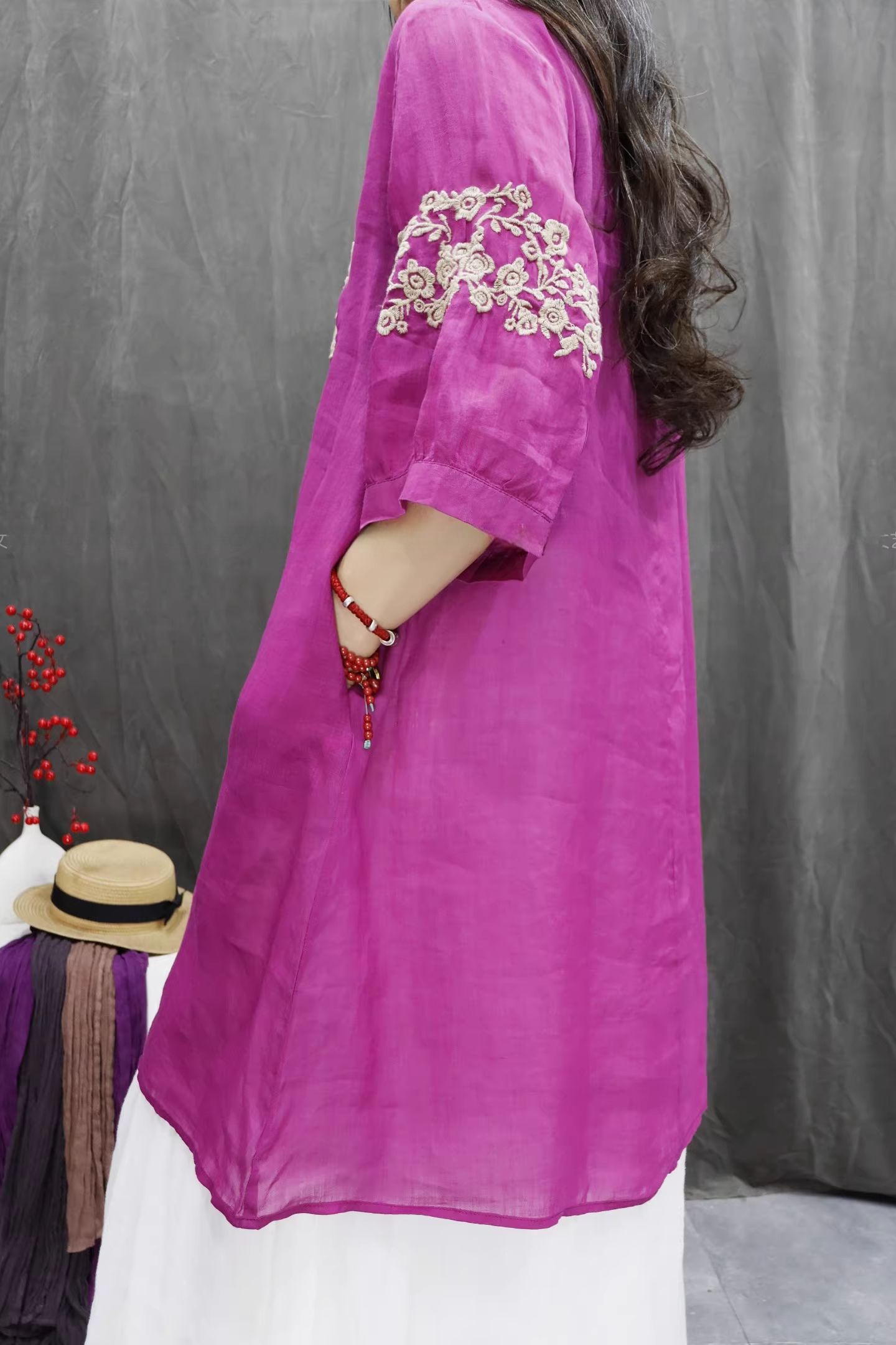 RY864# 2026春夏复古棉麻重工刺绣文艺百搭上衣宽松洋气中长款休闲衬衫裙
