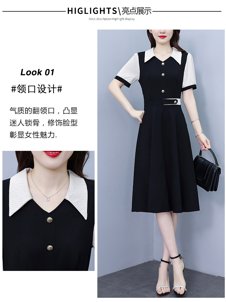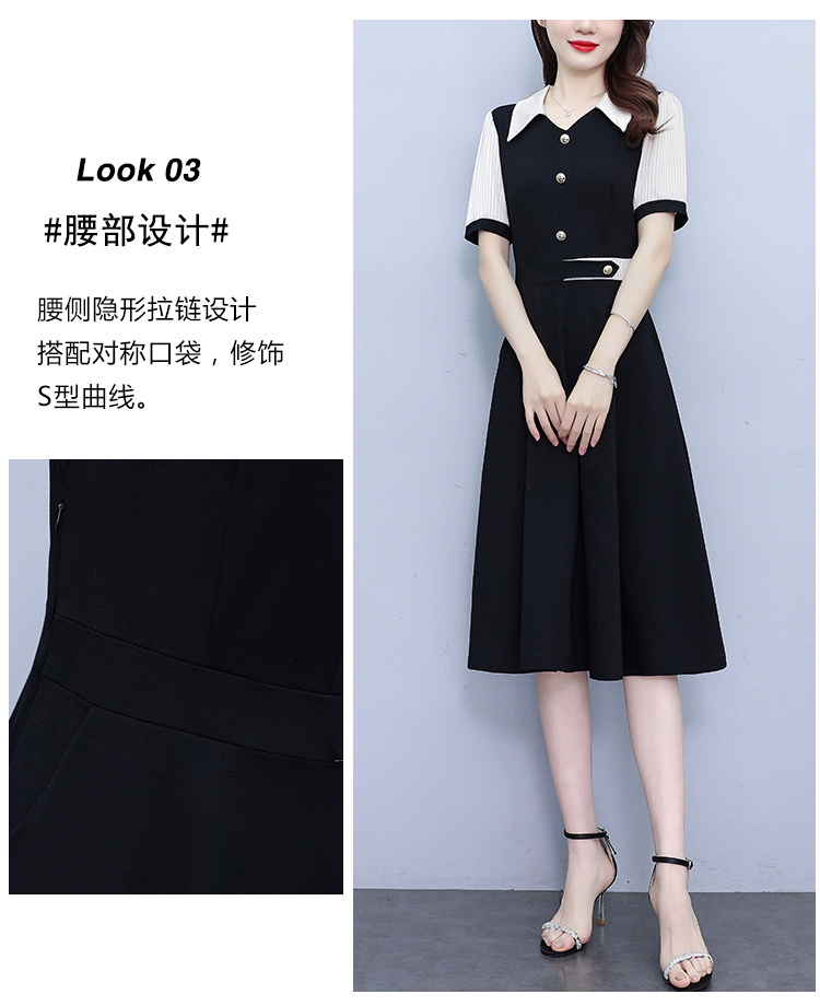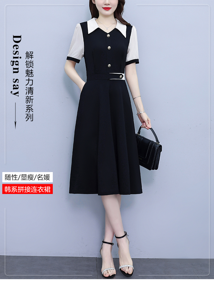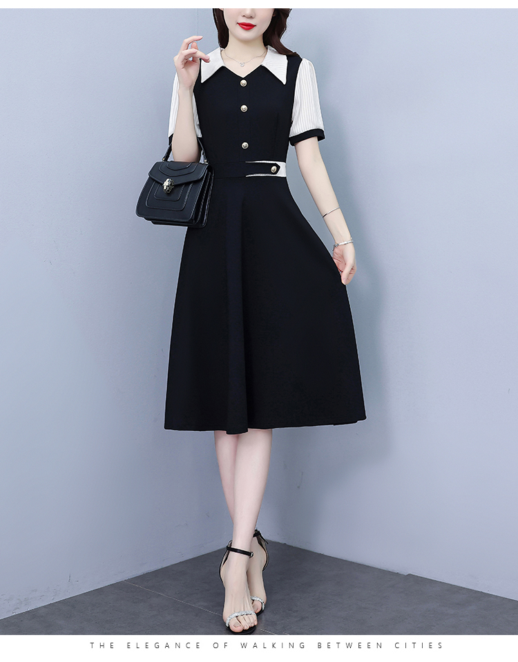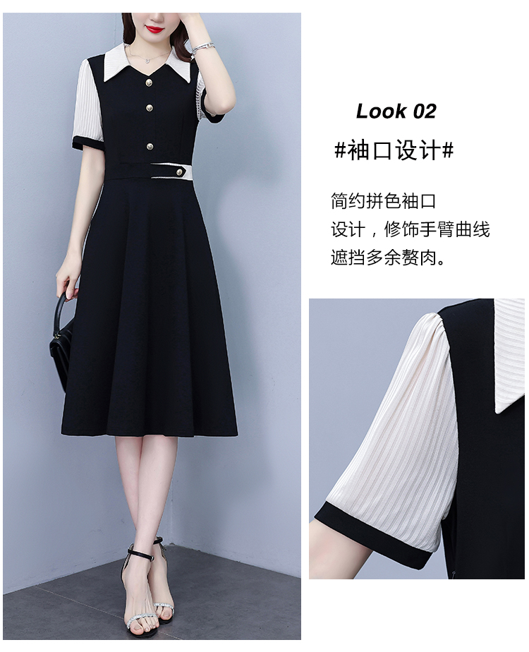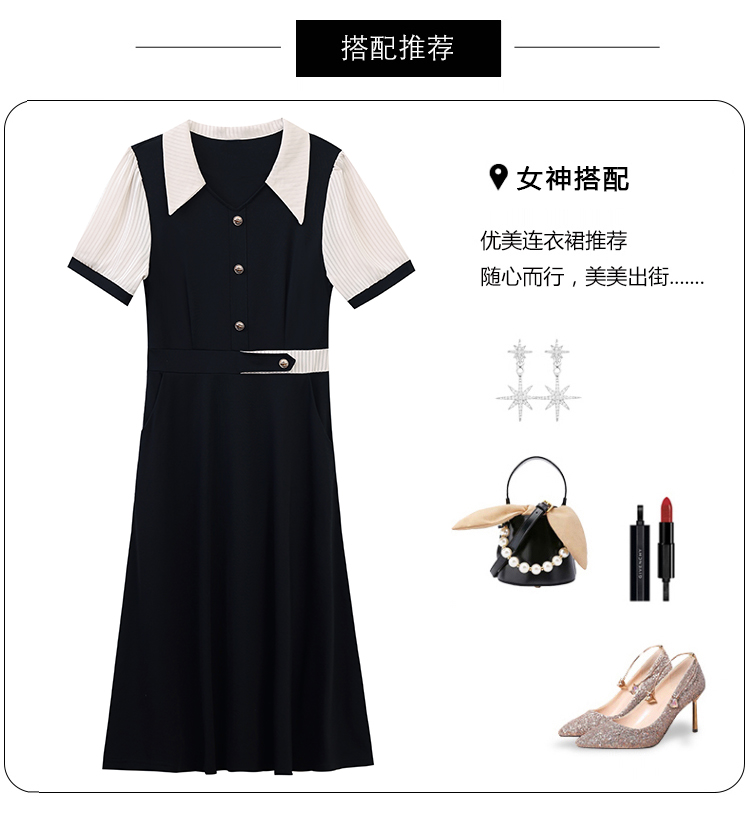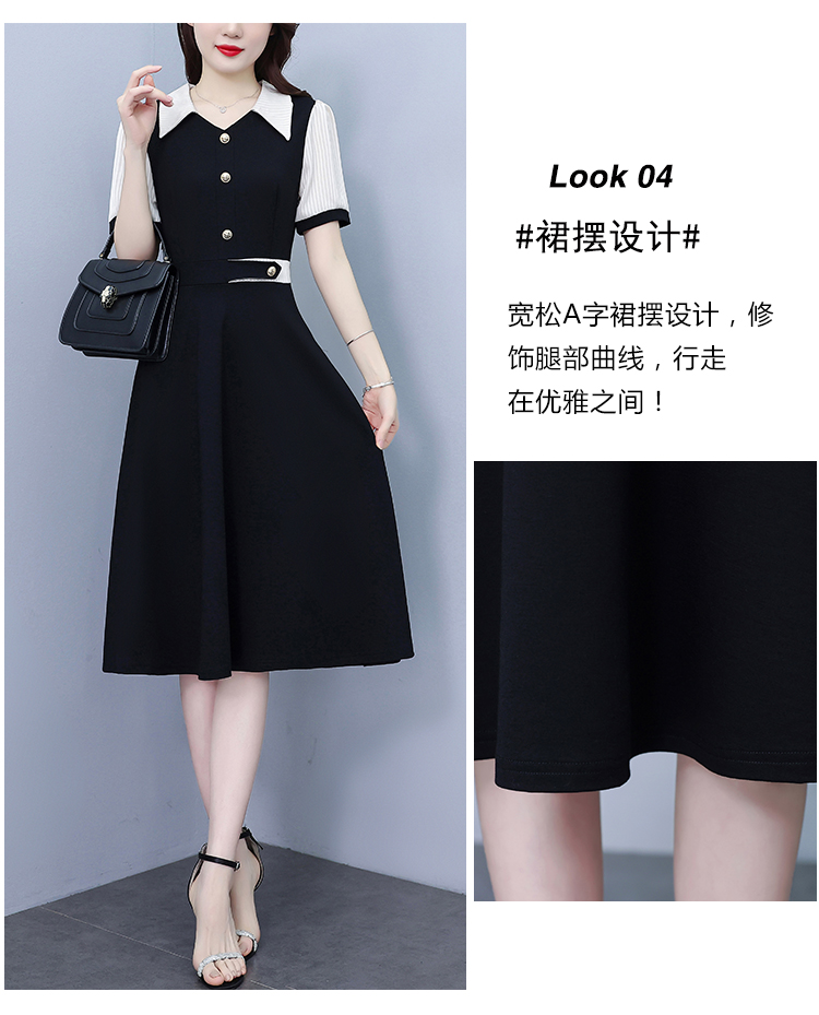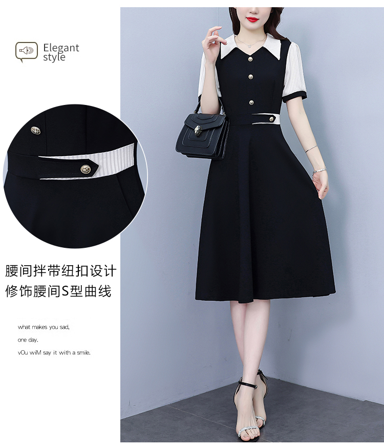 RY882# 2026夏季新款大码女装条纹西服领拼色时尚气质遮肉显瘦连衣裙中裙
