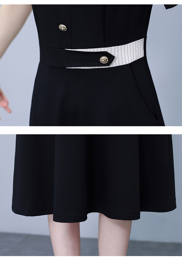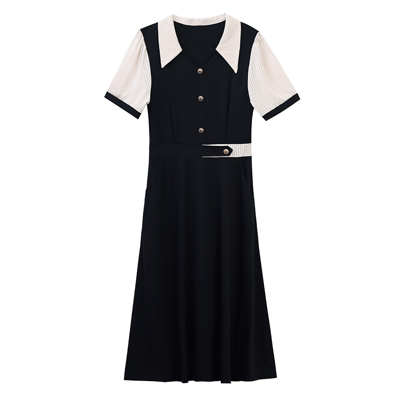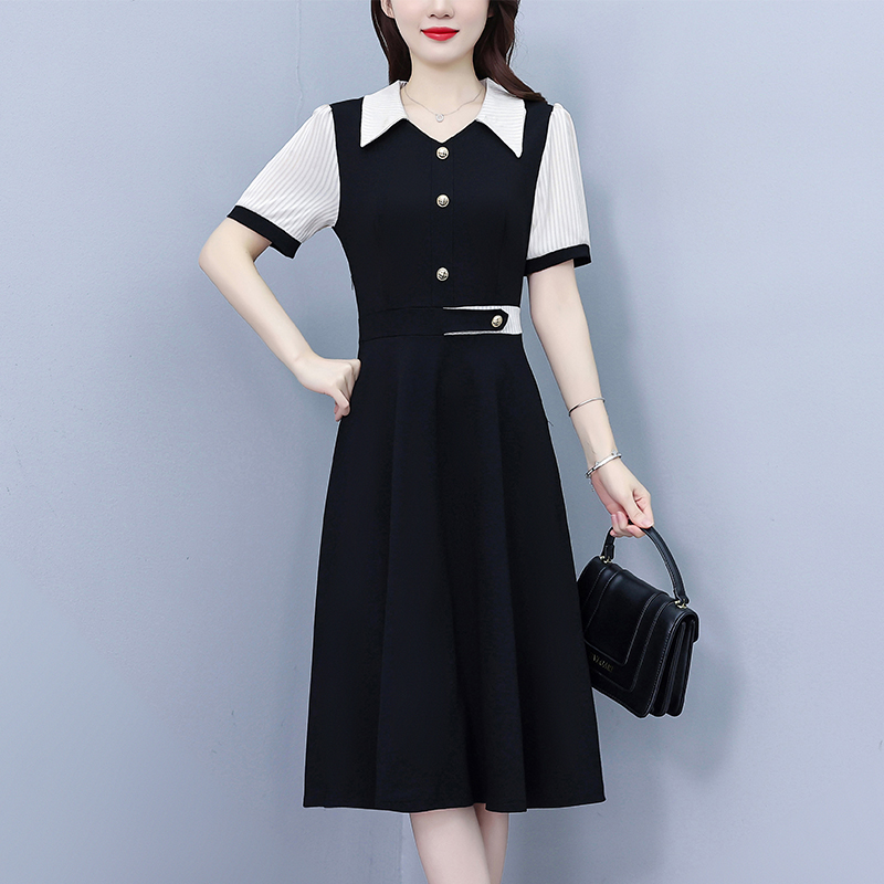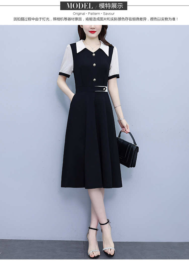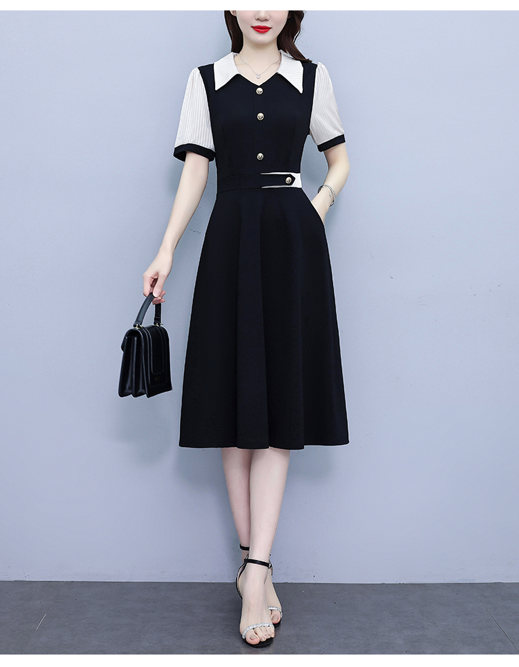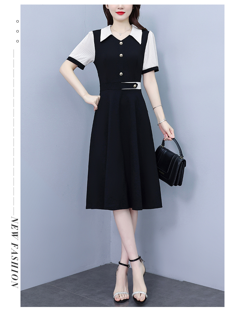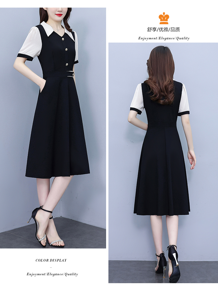 RY882# 2026夏季新款大码女装条纹西服领拼色时尚气质遮肉显瘦连衣裙中裙
