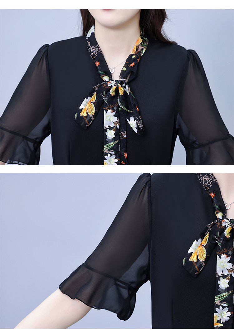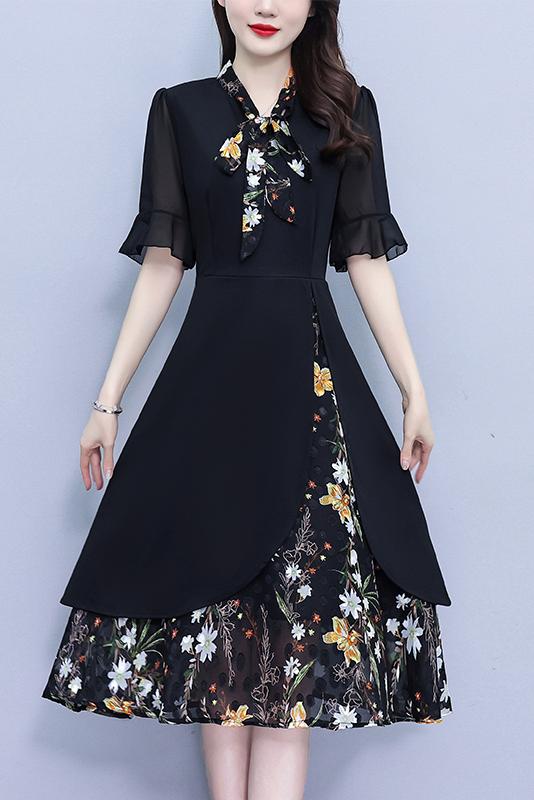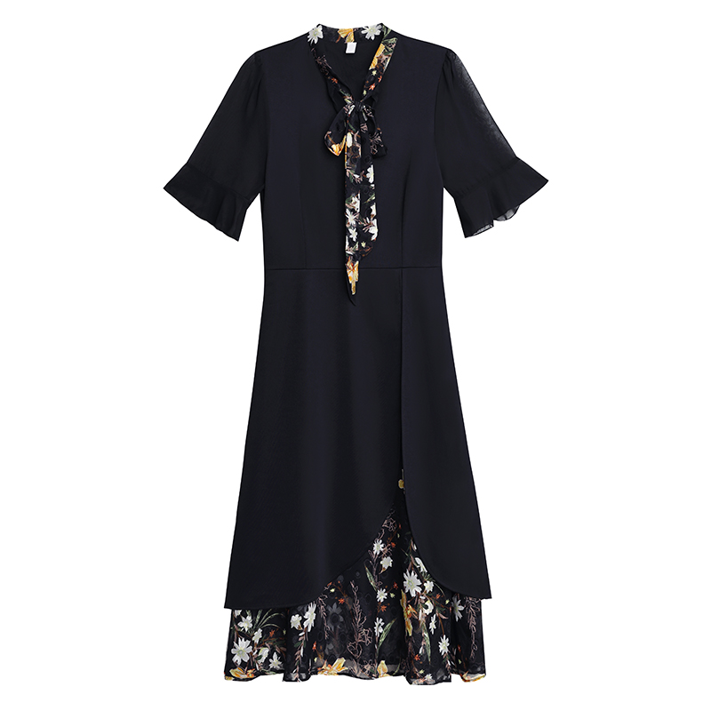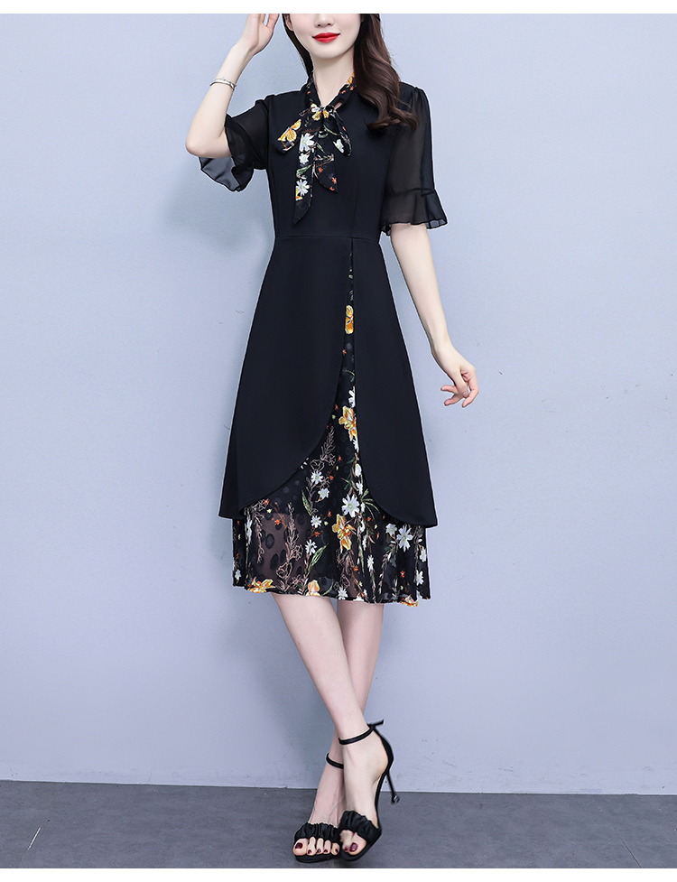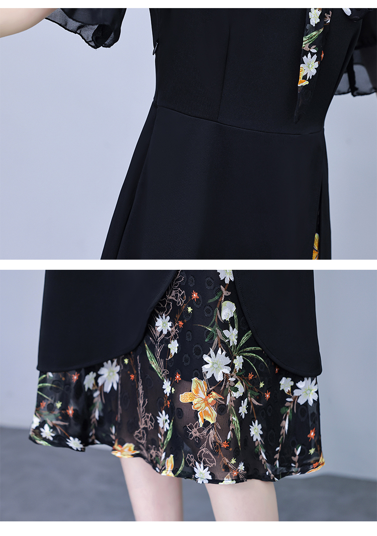 首页 > 女装批发-夏款 > 短袖连衣裙 > RY889# 中年妈妈大码女装2026新款短袖V领收腰显瘦遮肚子拼接雪纺连衣裙