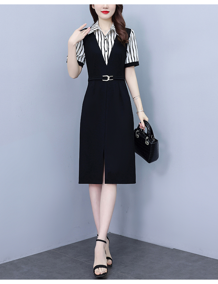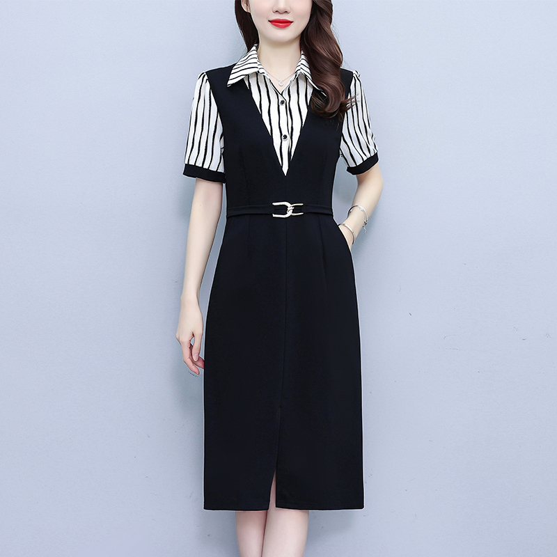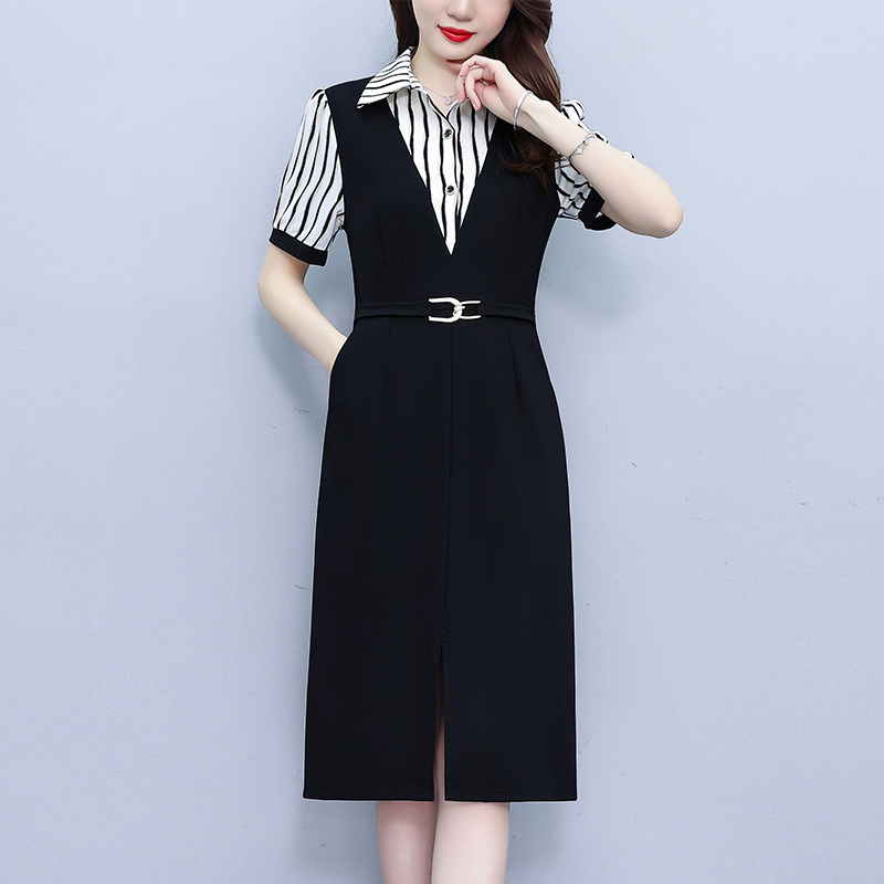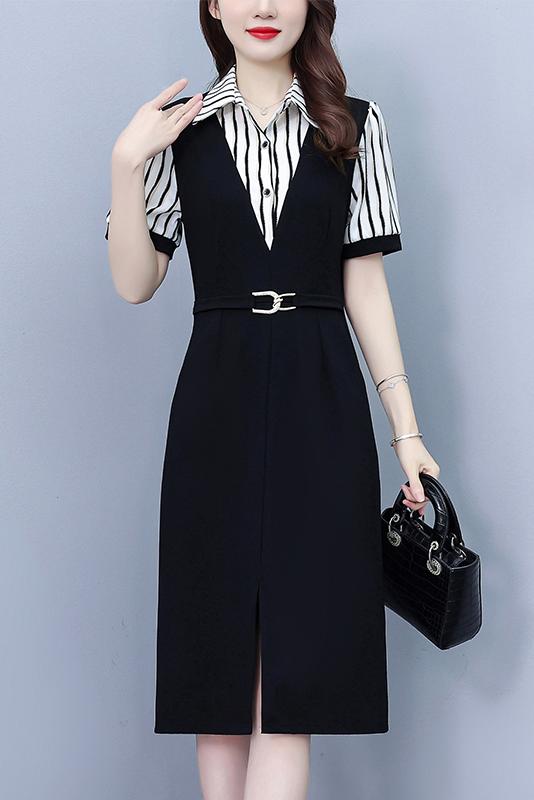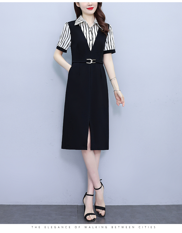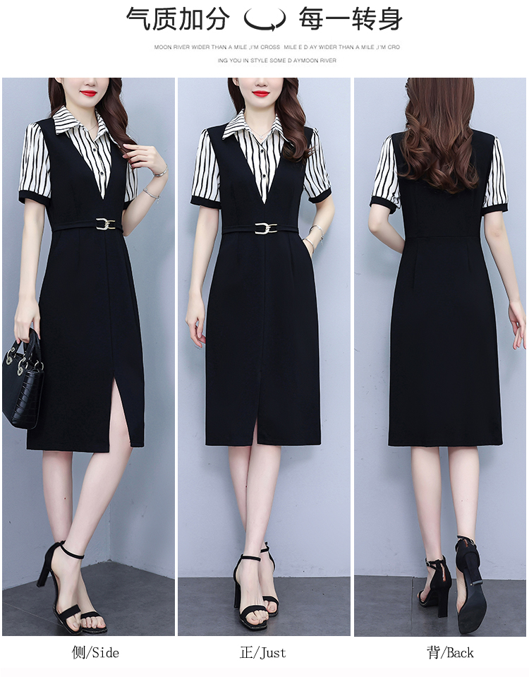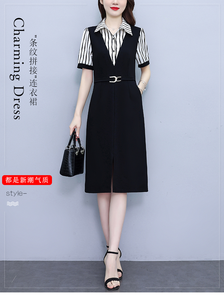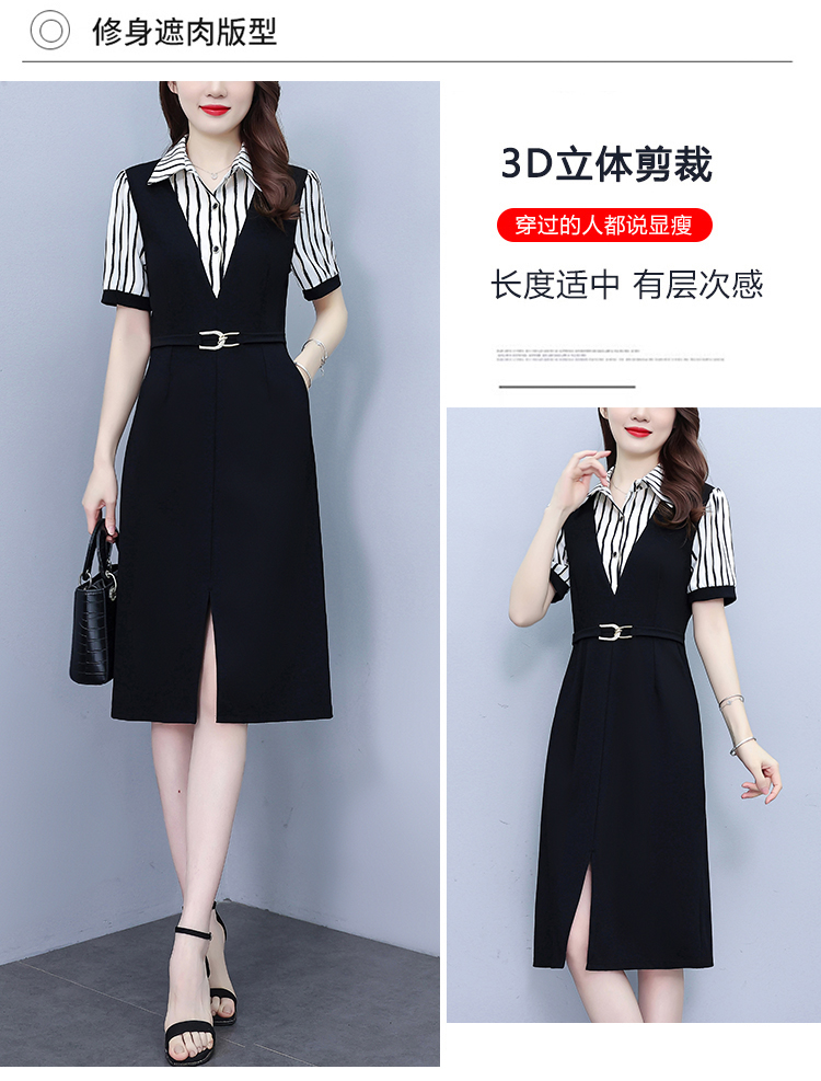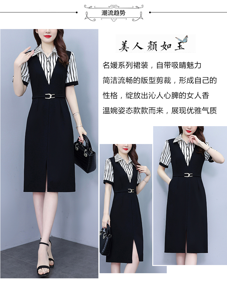 RY898# 女装连衣裙2026夏季新款气质韩版显瘦时尚收腰裙子中年妈妈假两件