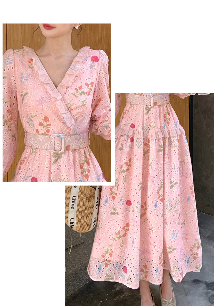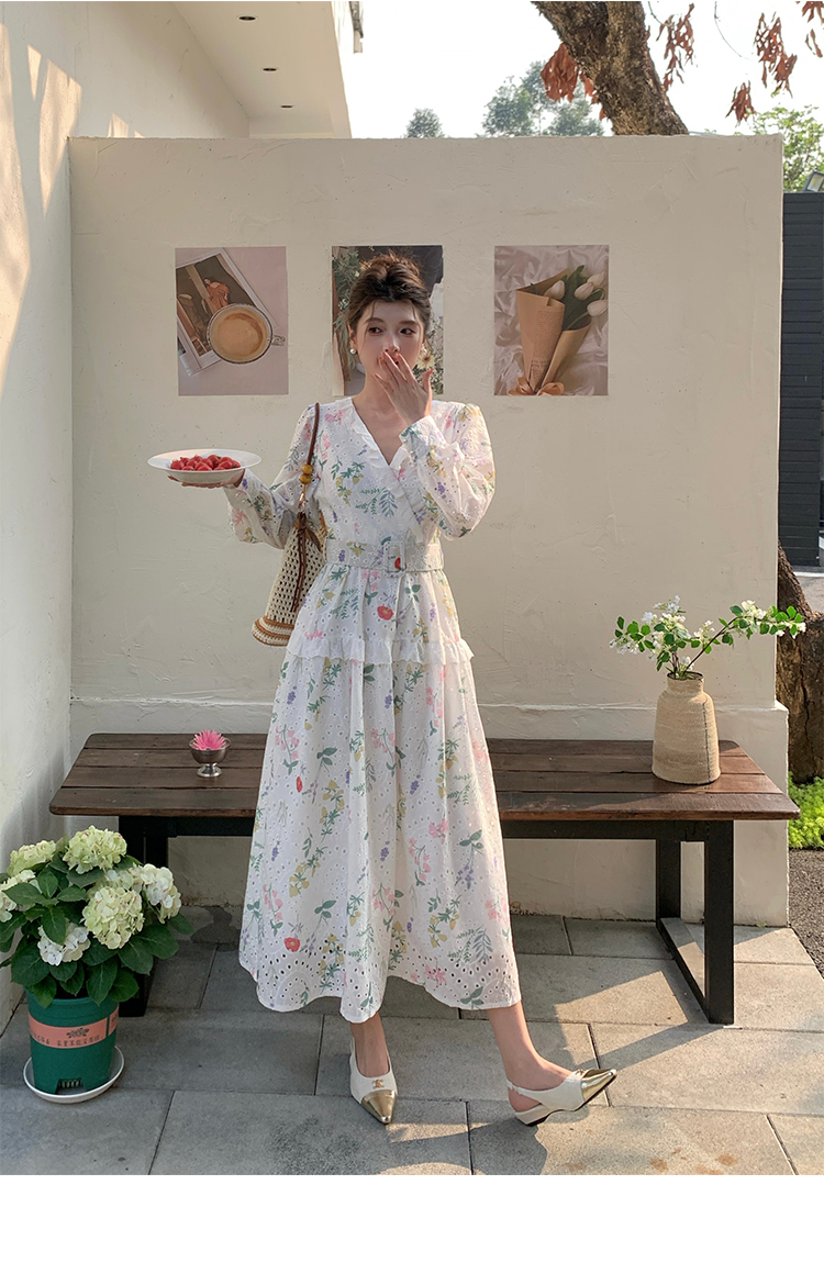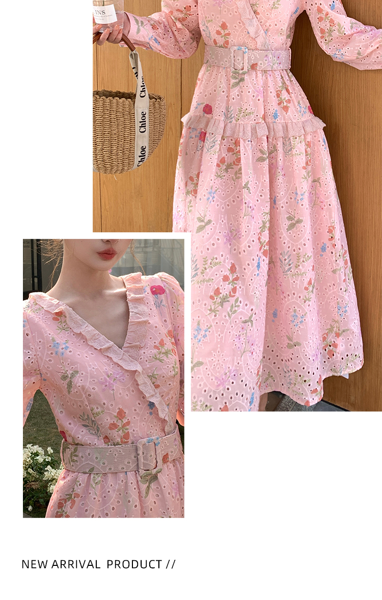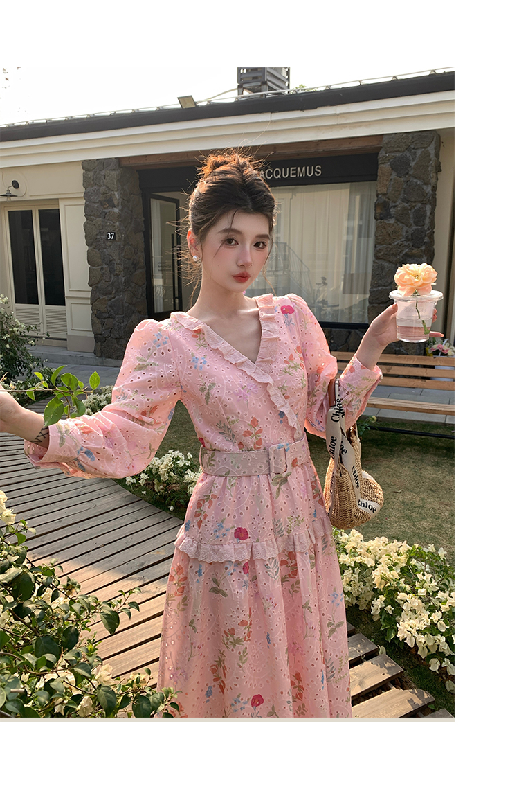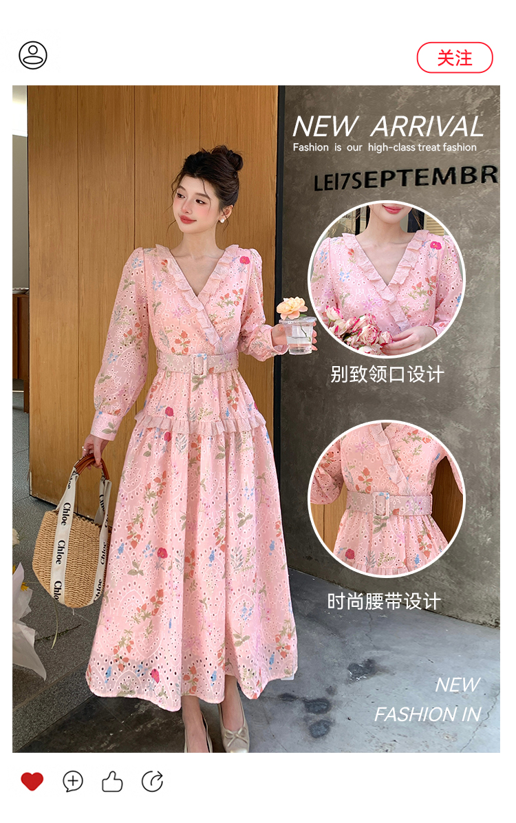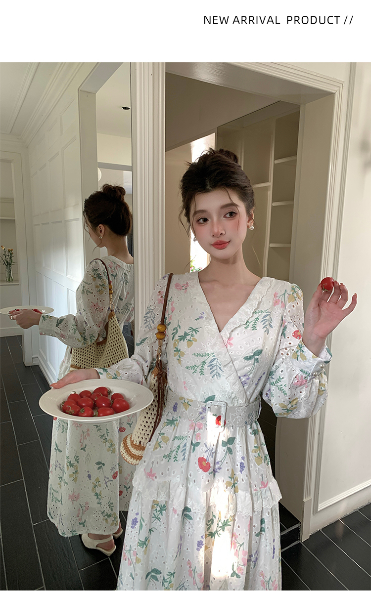 RY1272# 十三行品质 新款法式茶歇V 领碎花连衣裙 配腰带88215