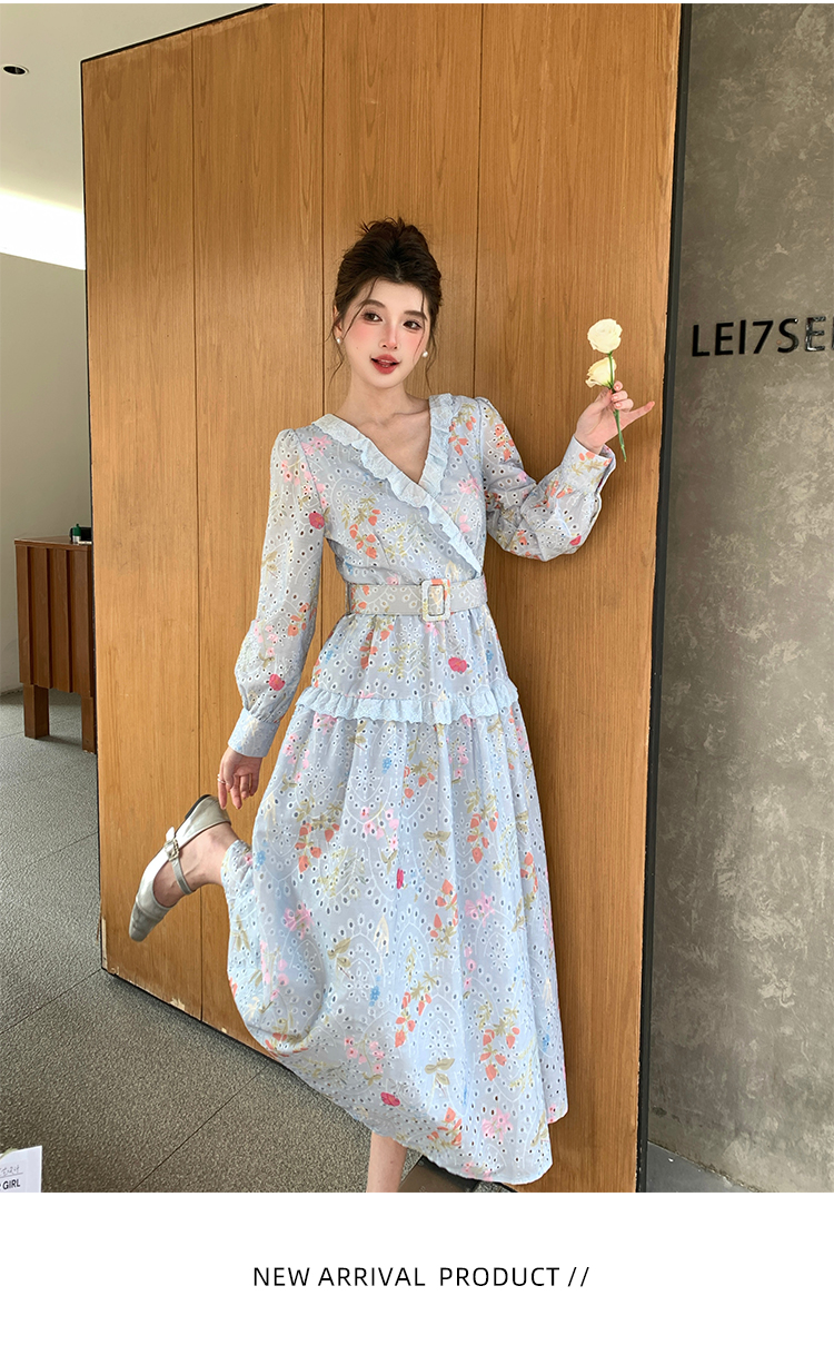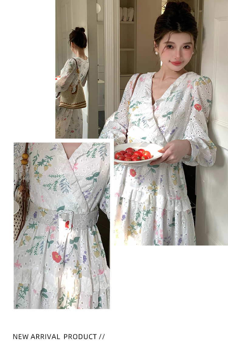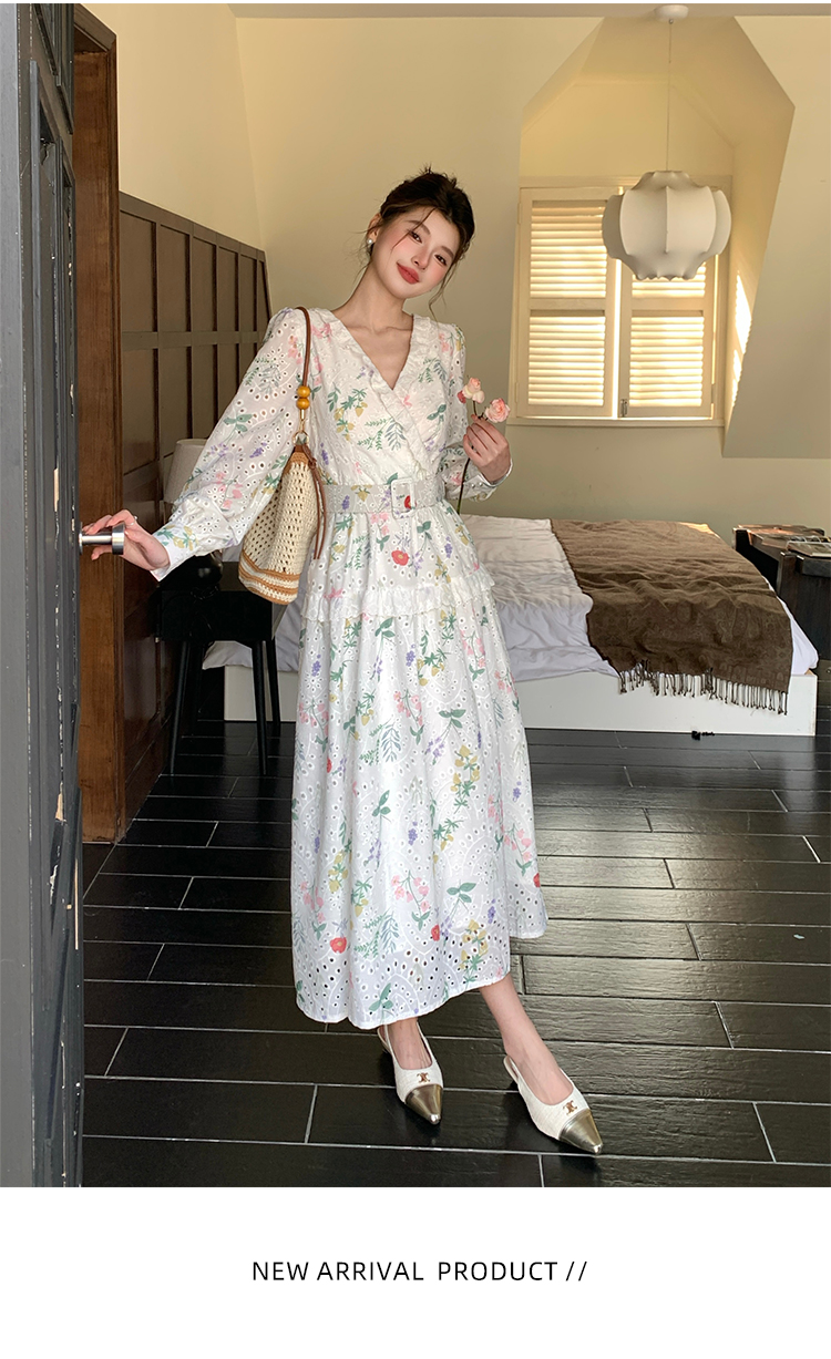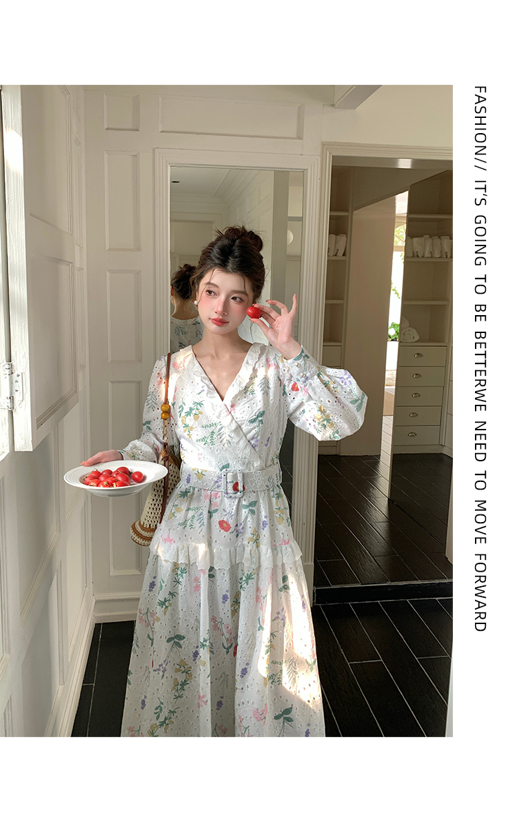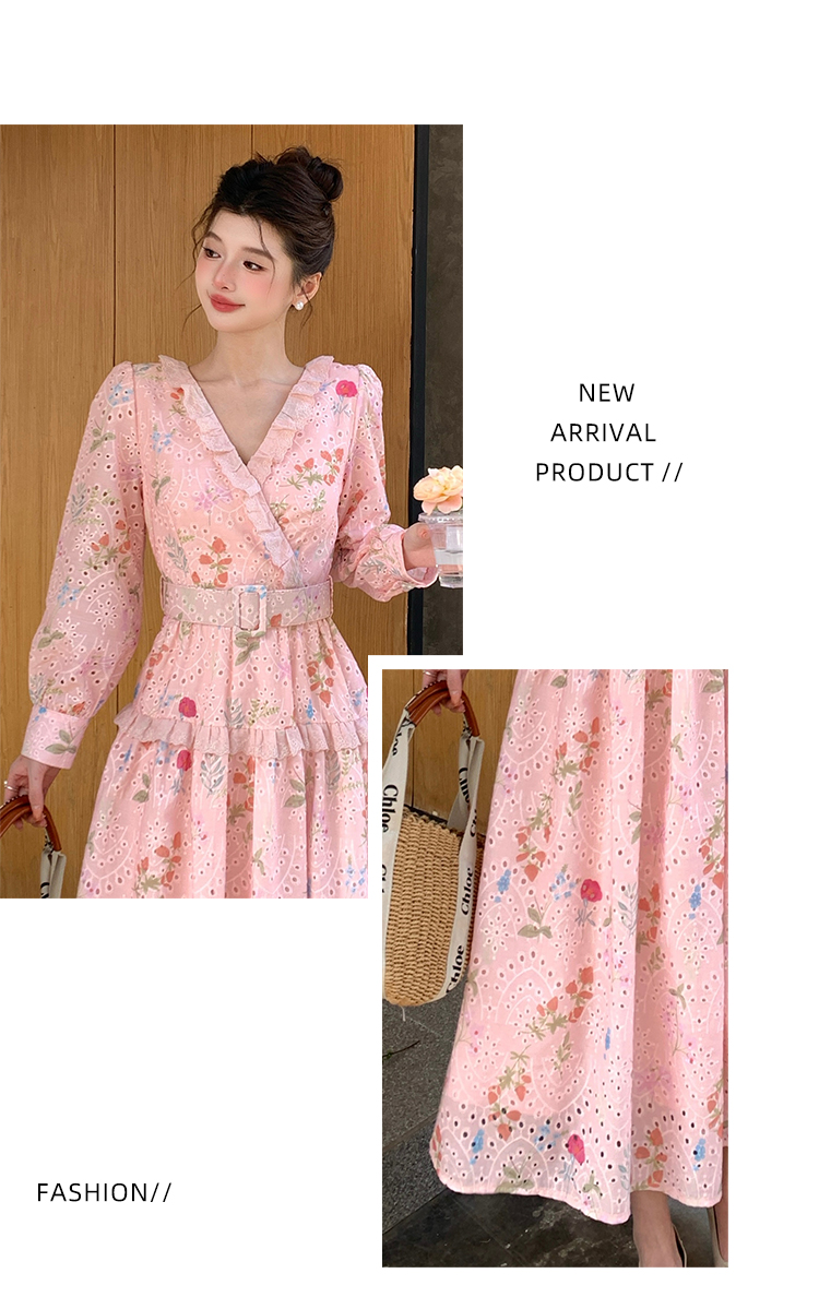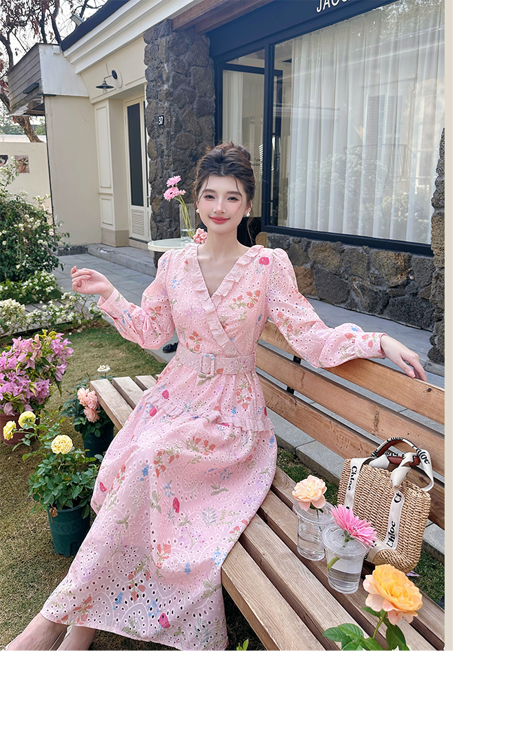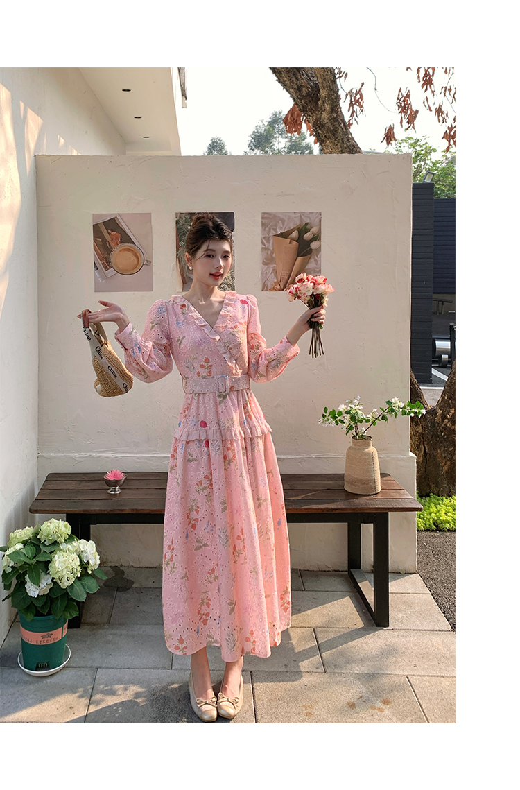 RY1272# 十三行品质 新款法式茶歇V 领碎花连衣裙 配腰带88215
