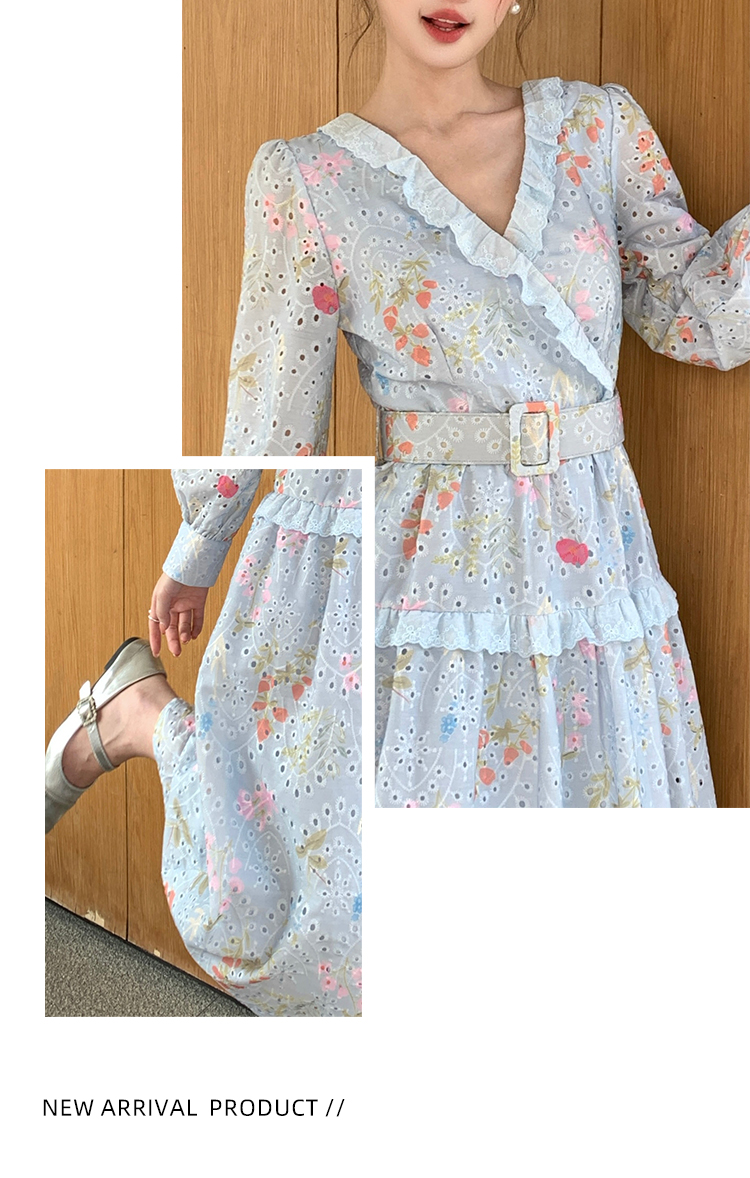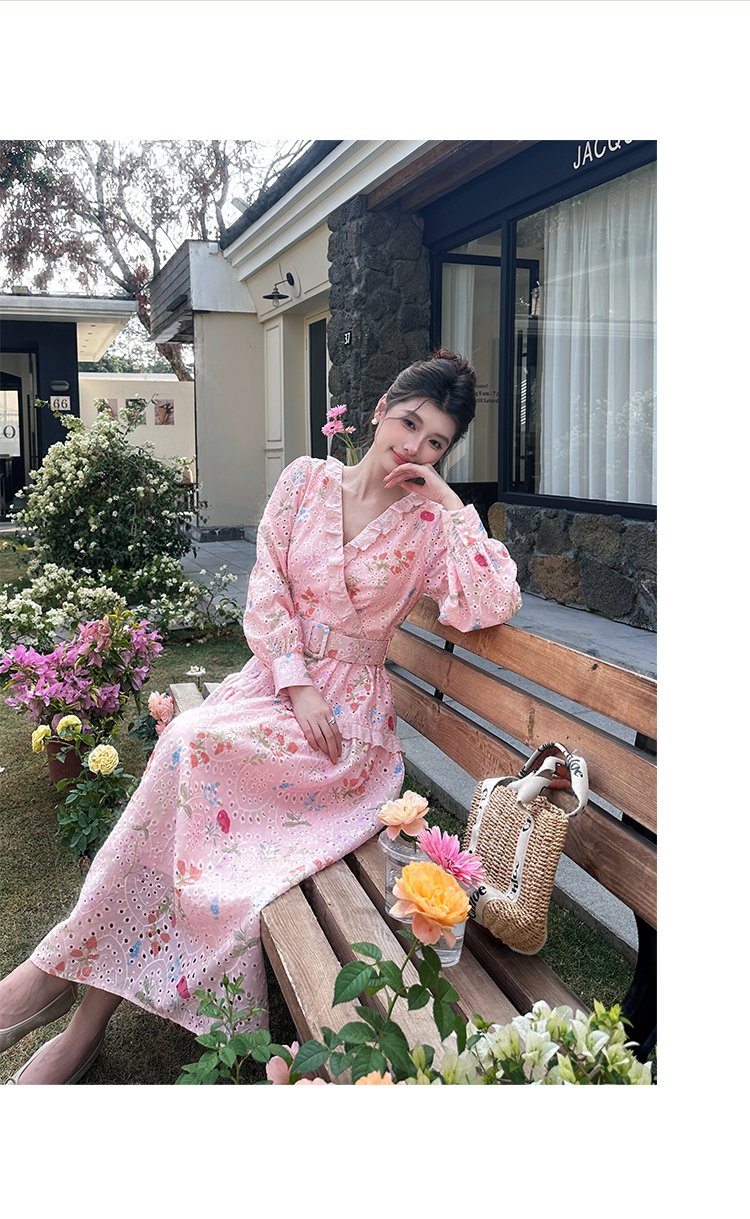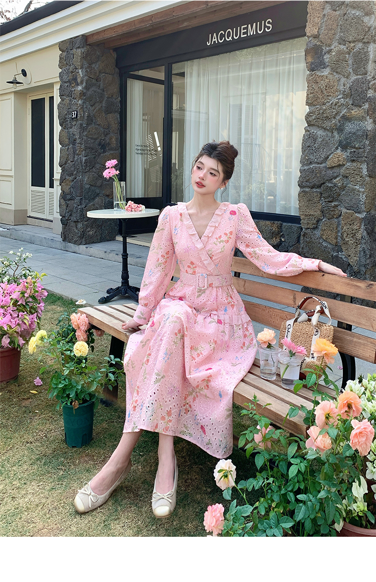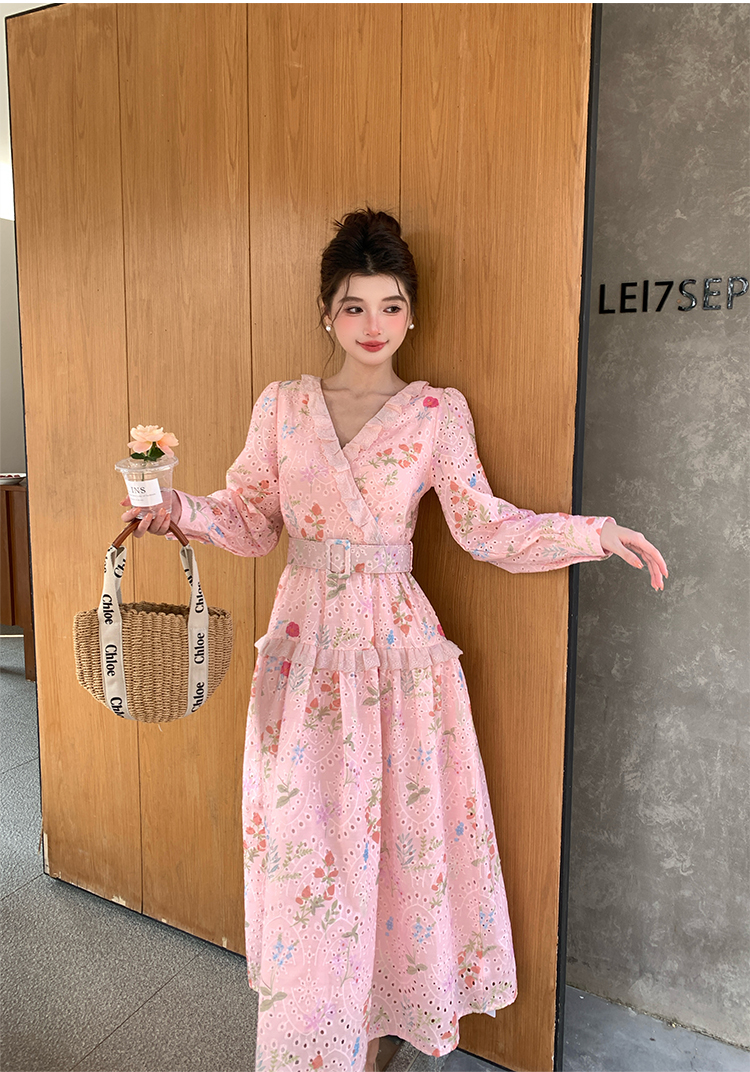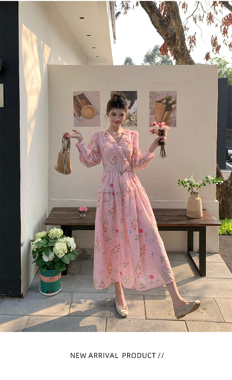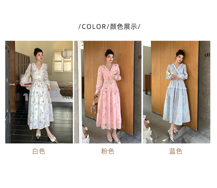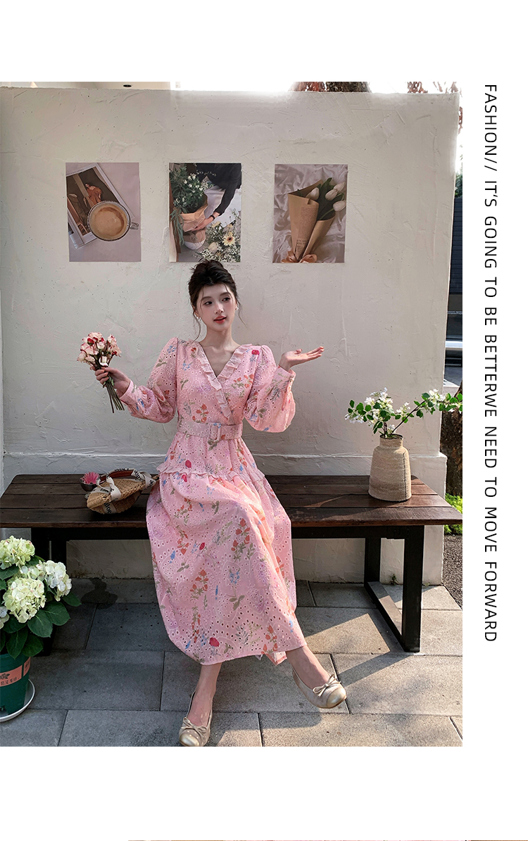 RY1272# 十三行品质 新款法式茶歇V 领碎花连衣裙 配腰带88215