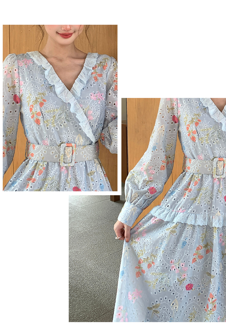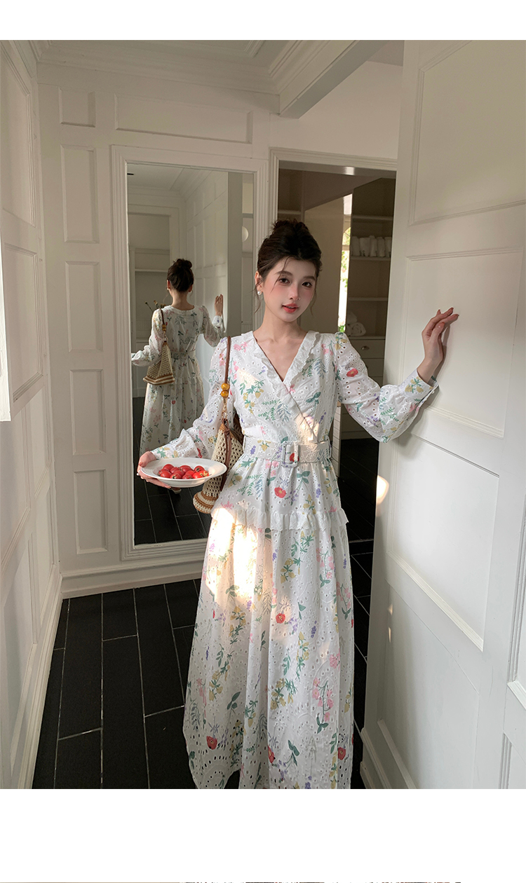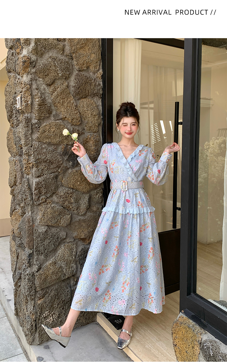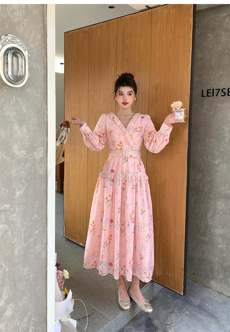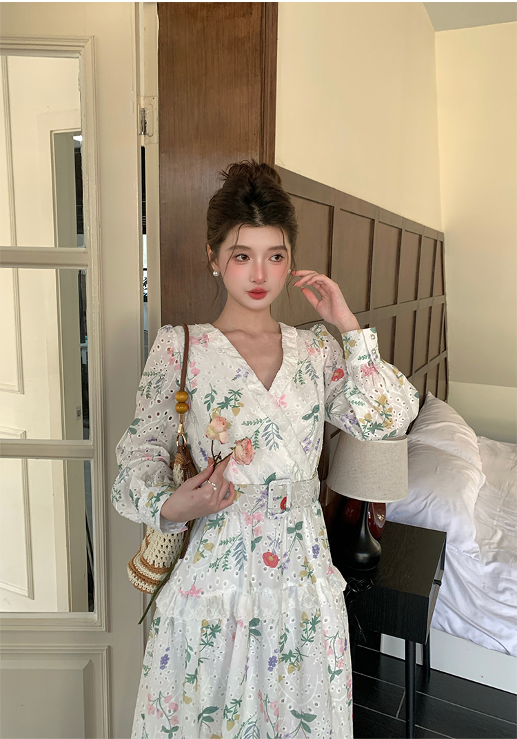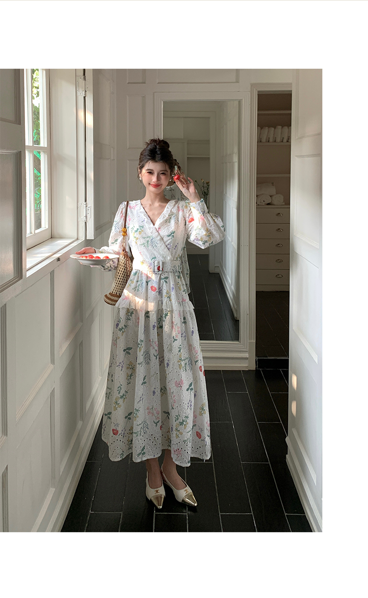 RY1272# 十三行品质 新款法式茶歇V 领碎花连衣裙 配腰带88215