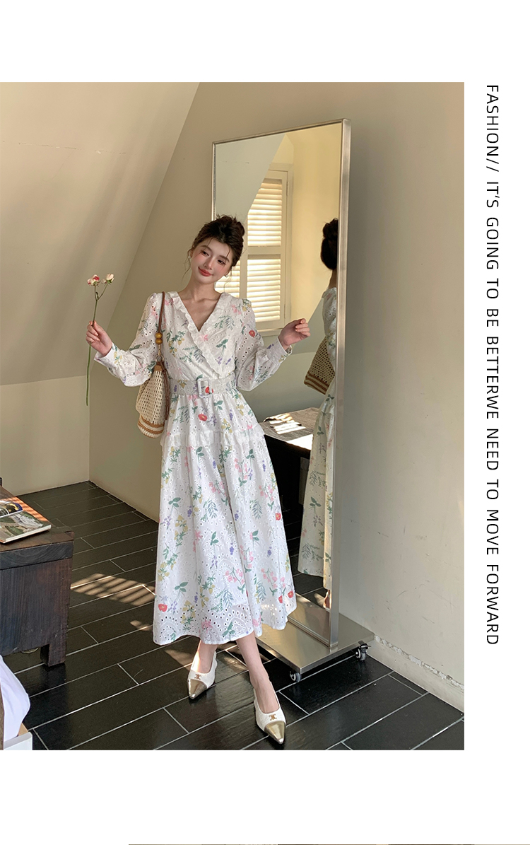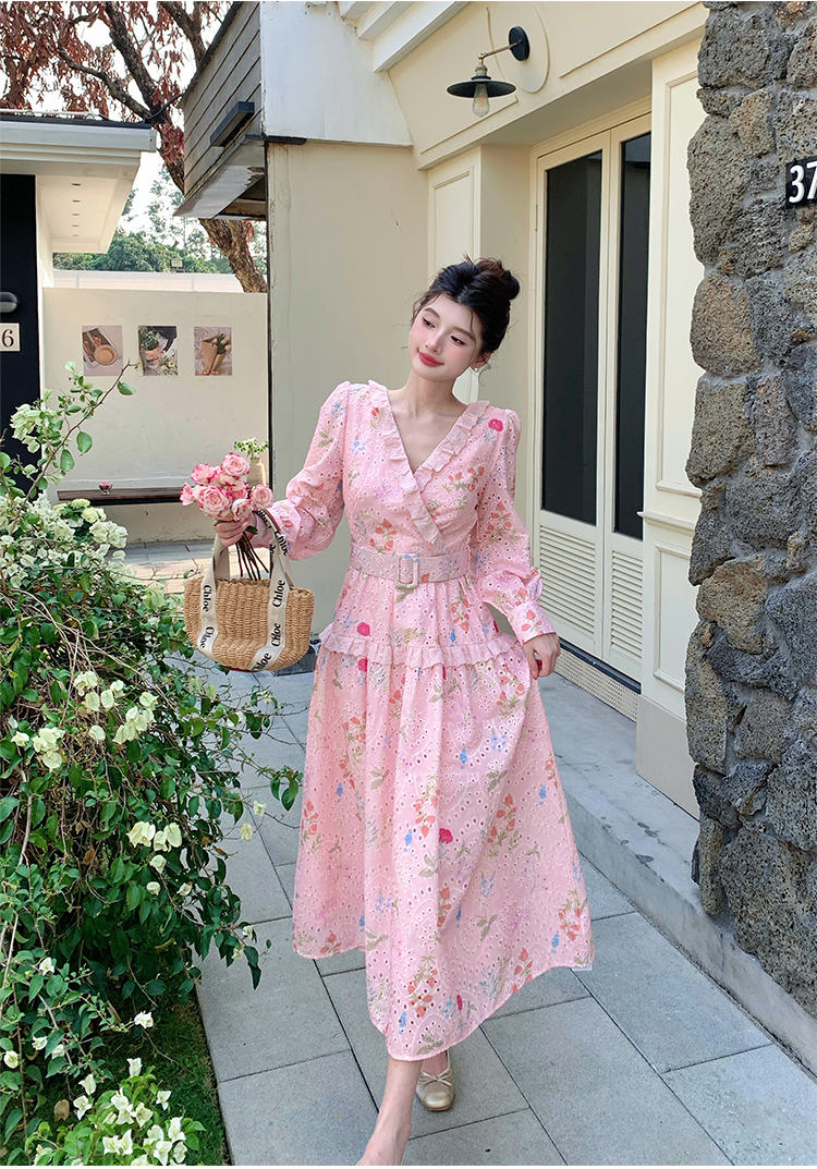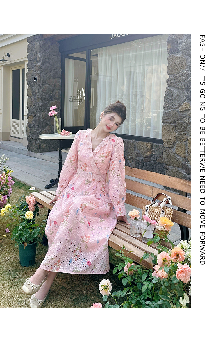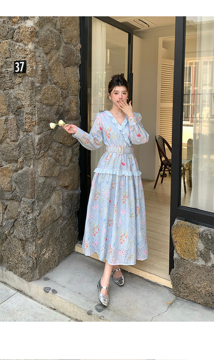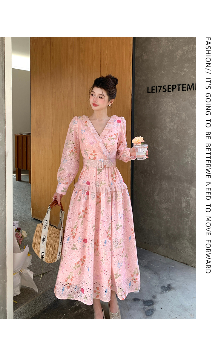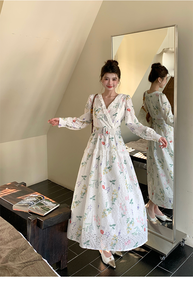 RY1272# 十三行品质 新款法式茶歇V 领碎花连衣裙 配腰带88215