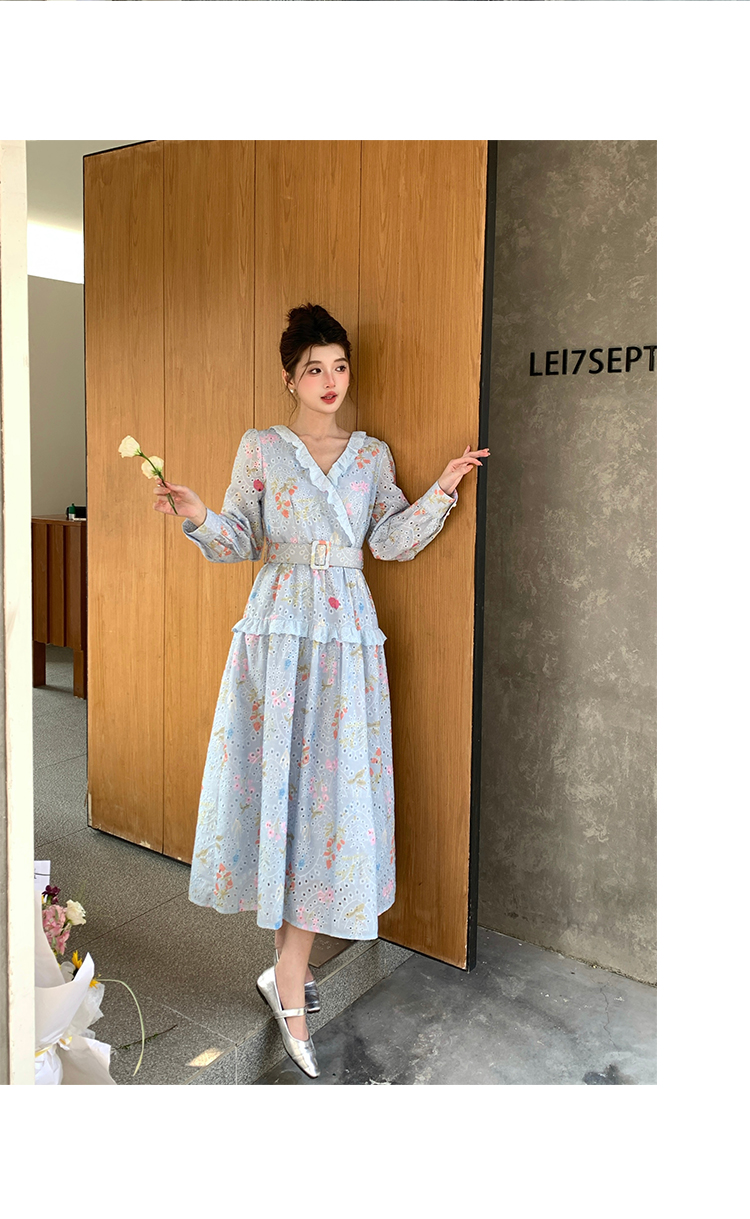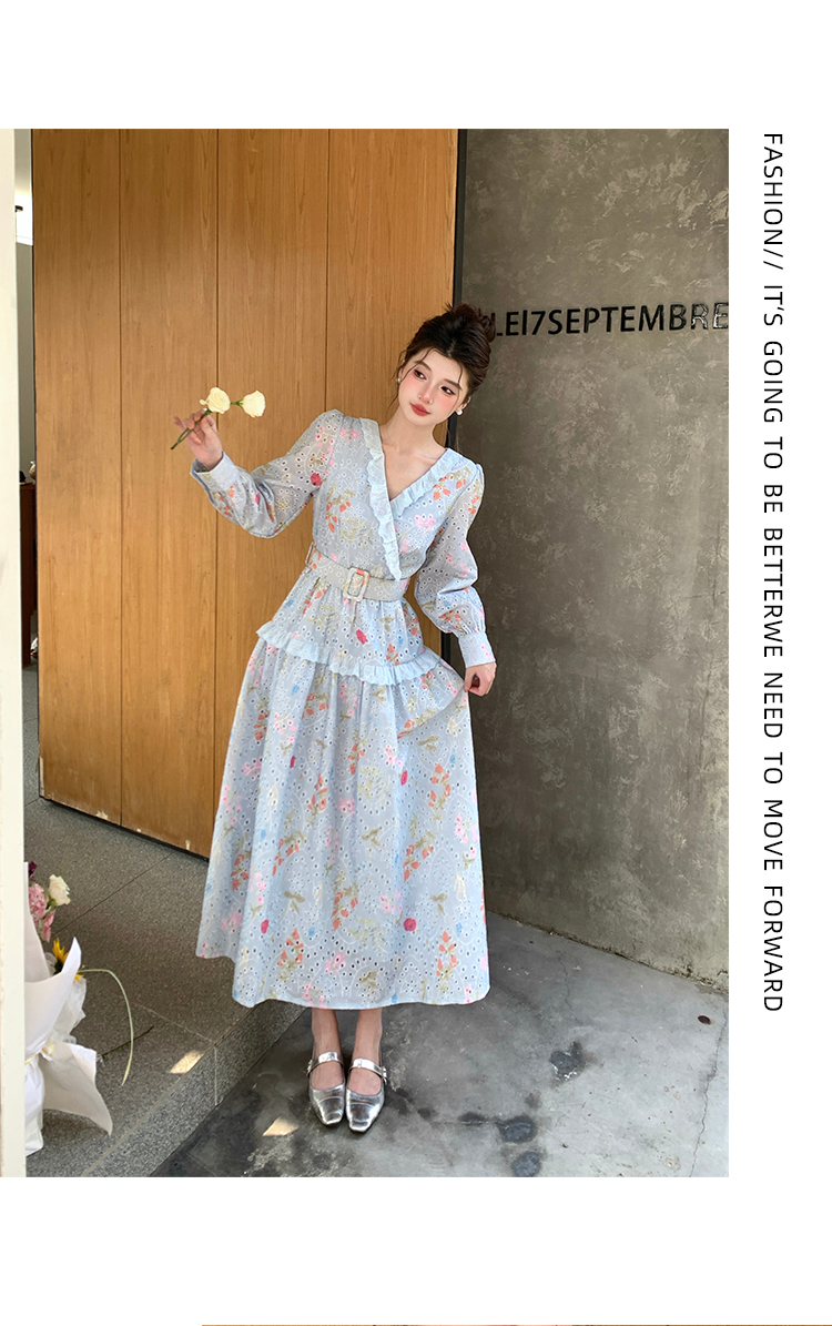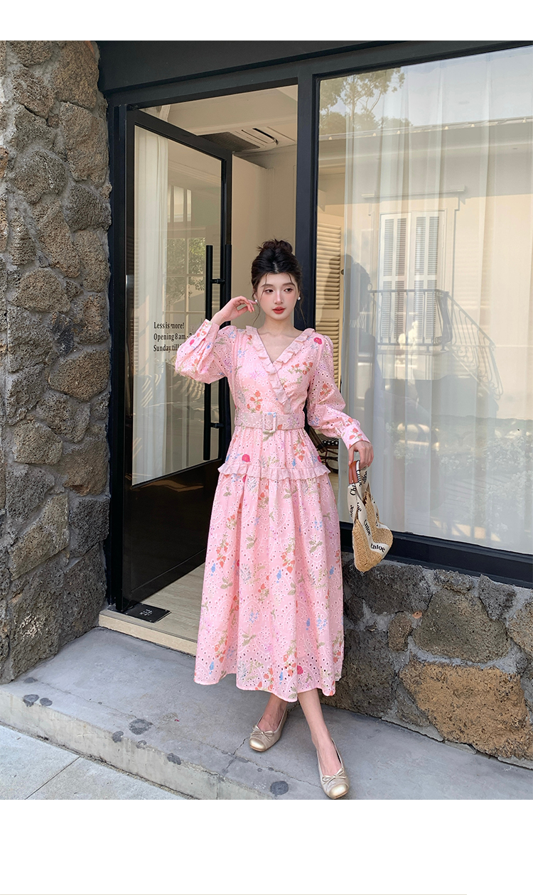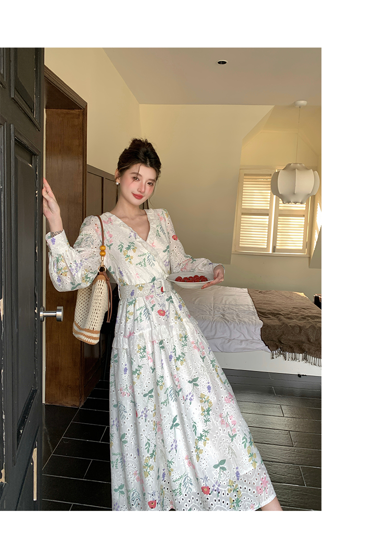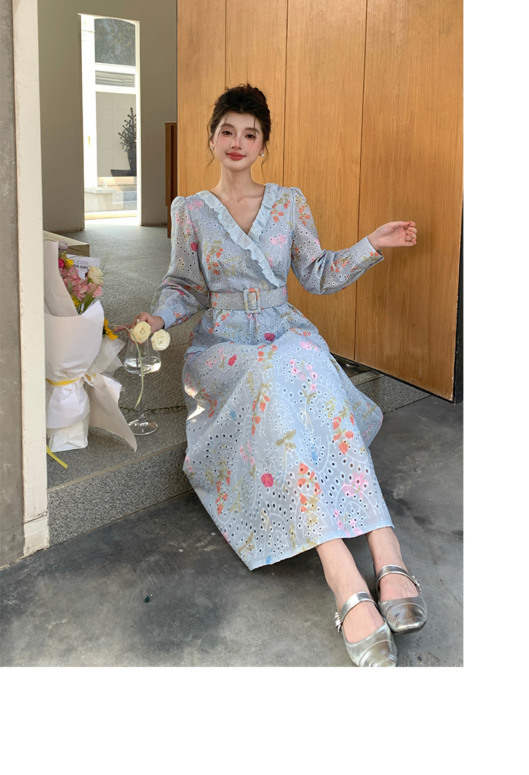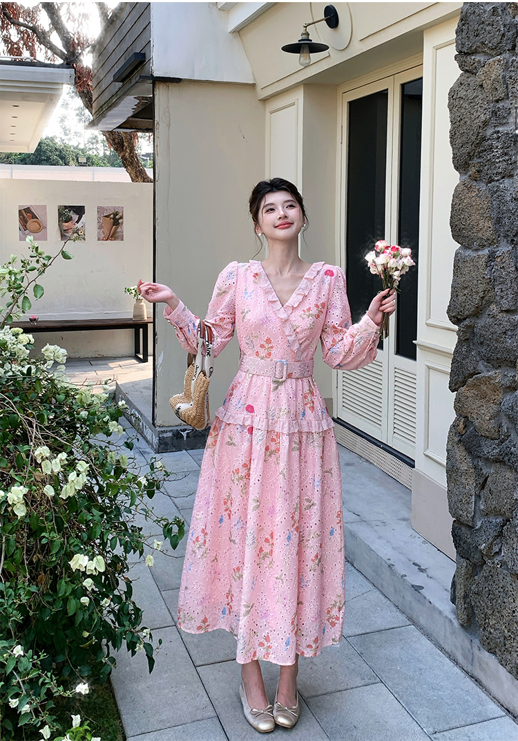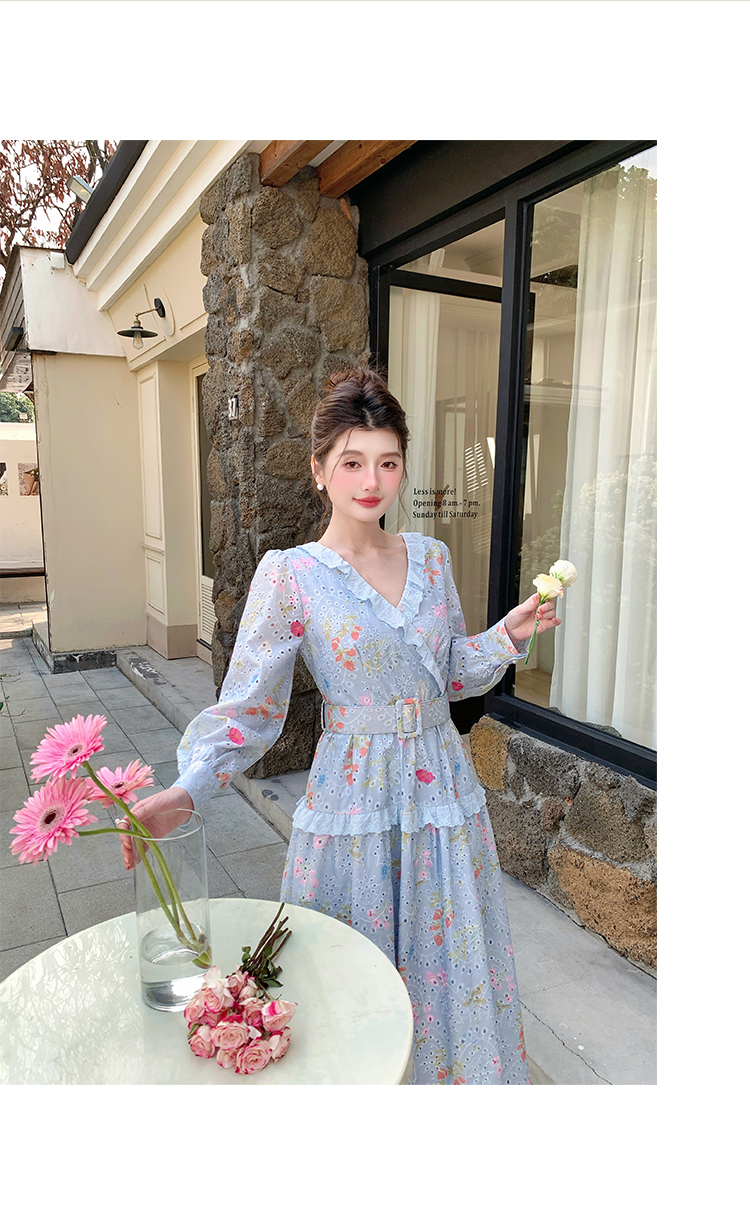 RY1272# 十三行品质 新款法式茶歇V 领碎花连衣裙 配腰带88215