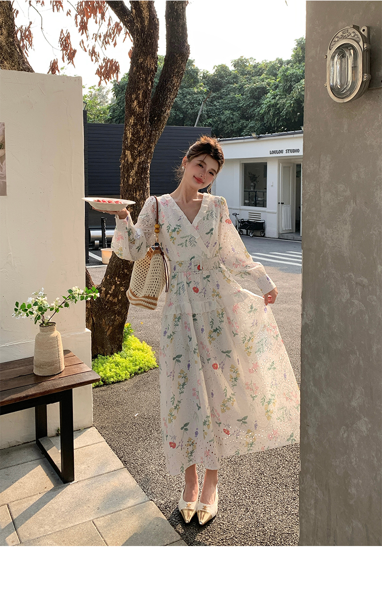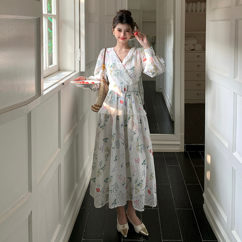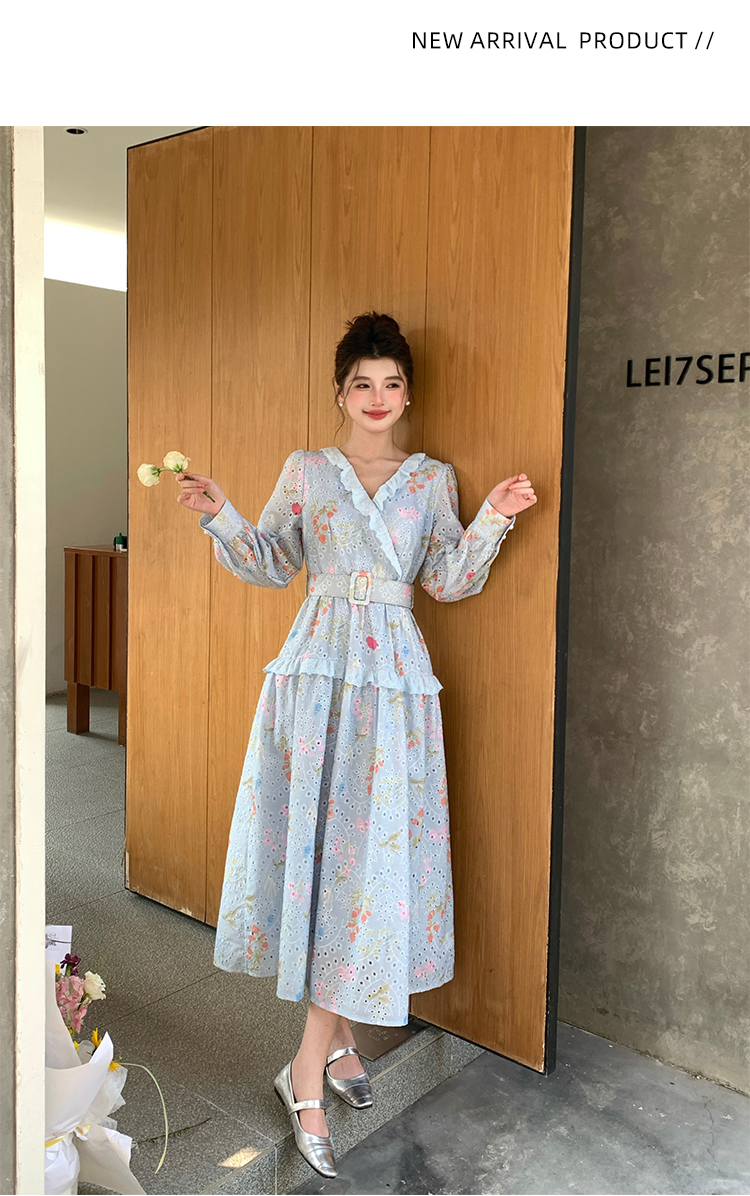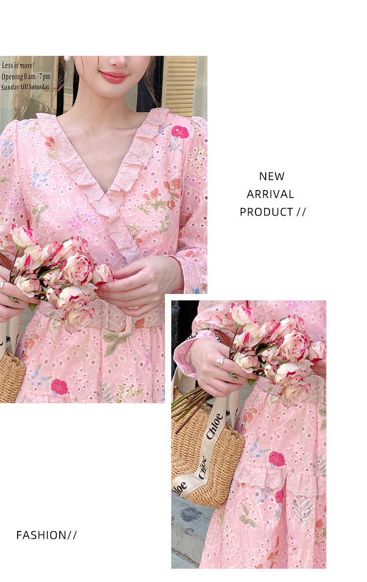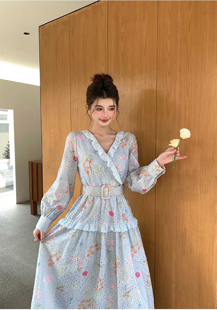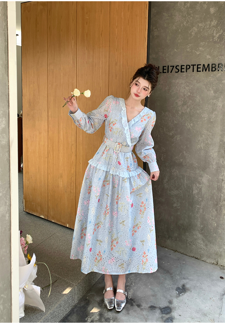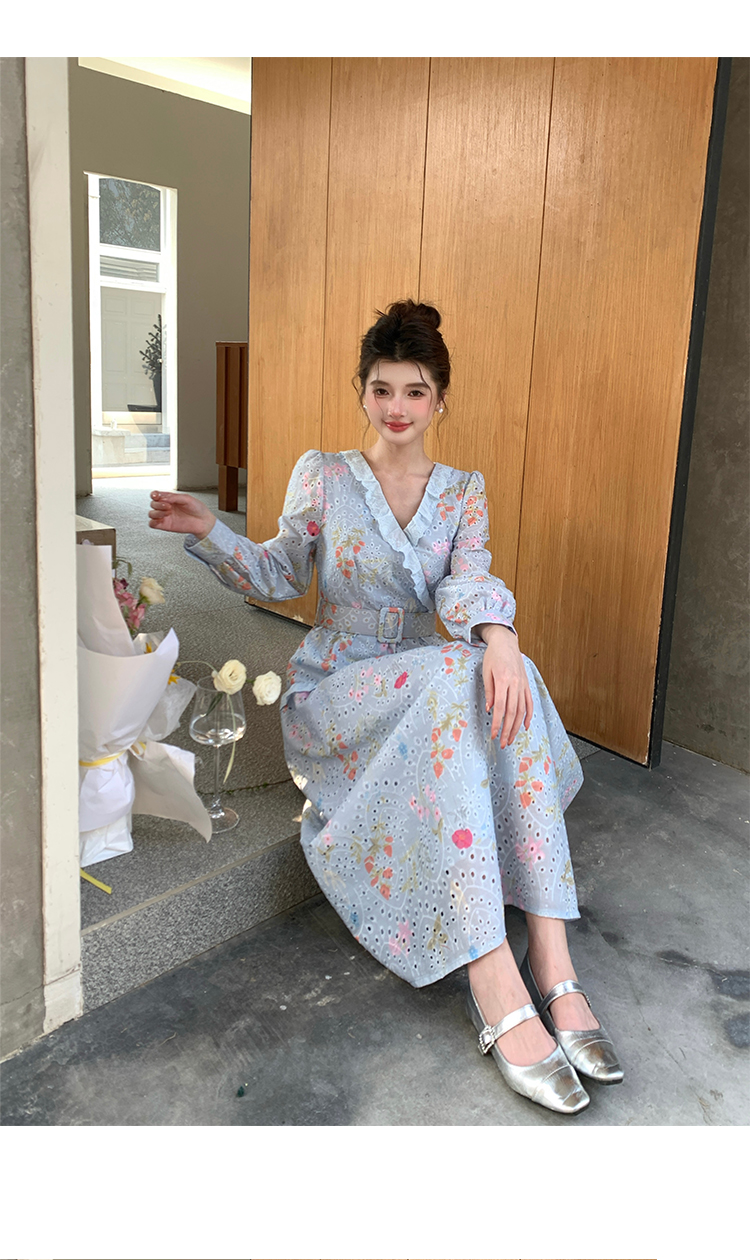 RY1272# 十三行品质 新款法式茶歇V 领碎花连衣裙 配腰带88215