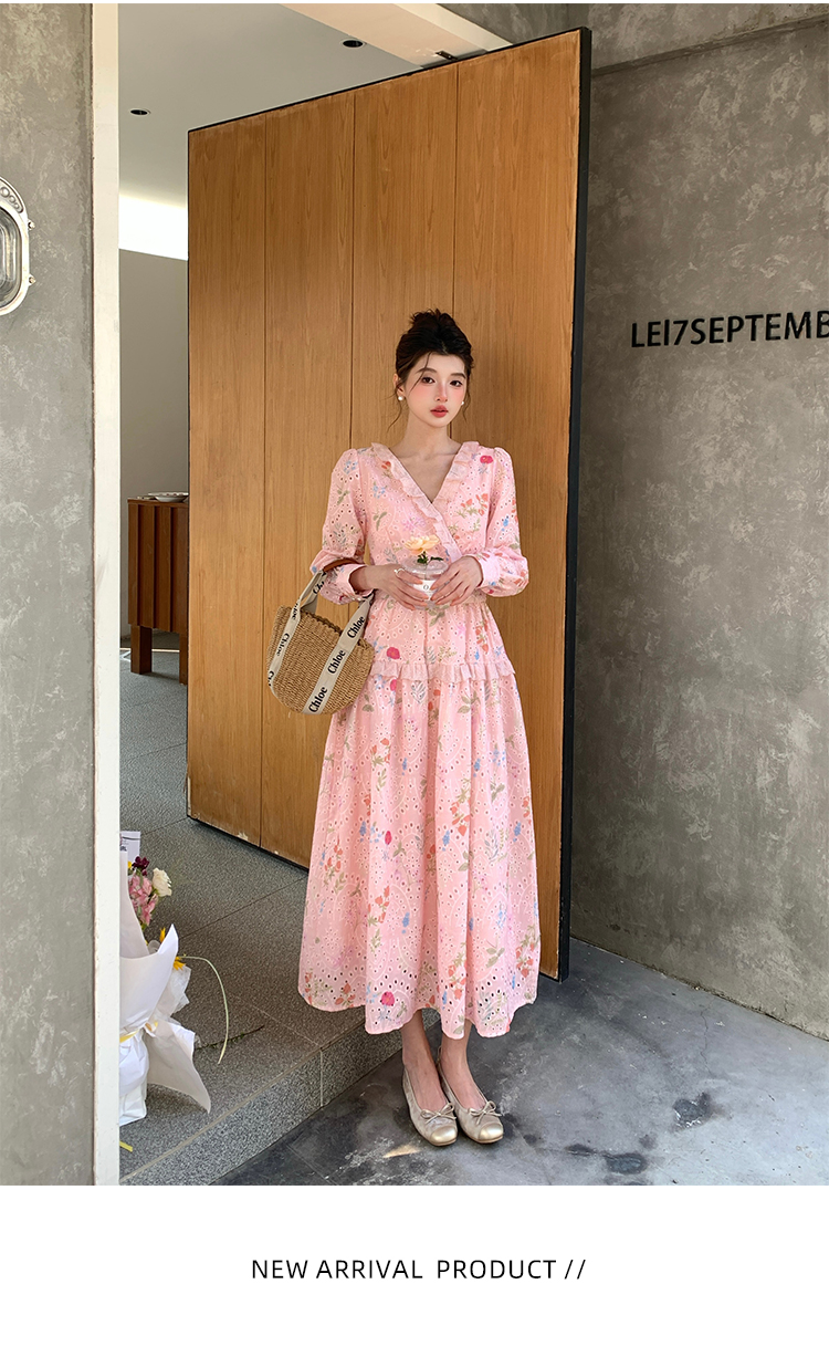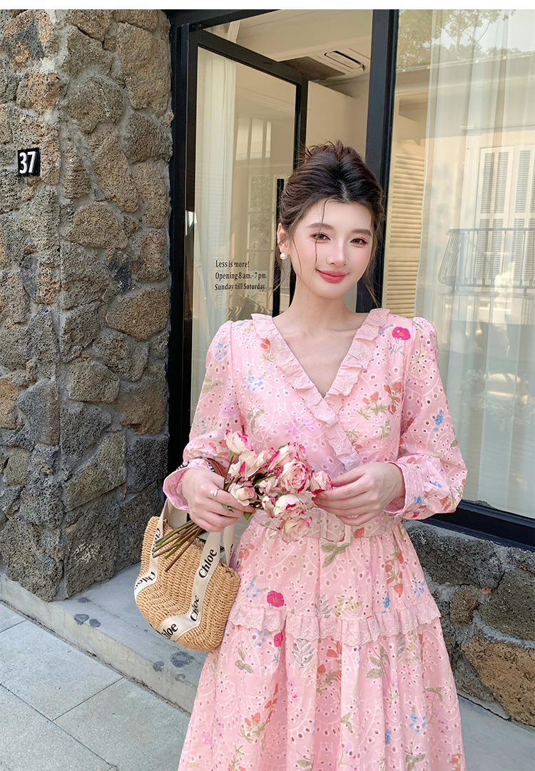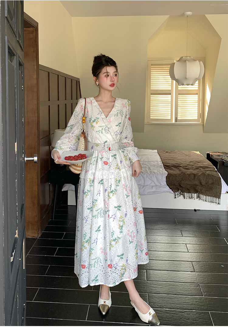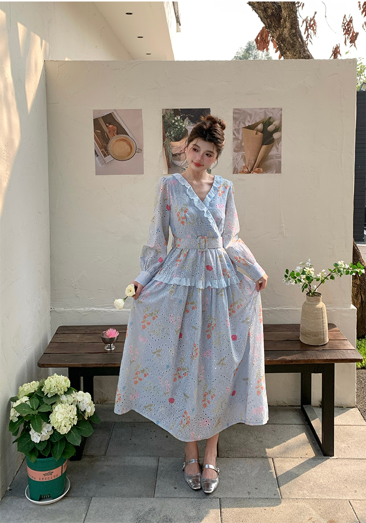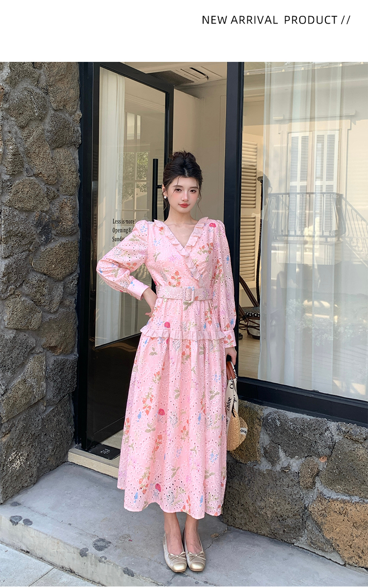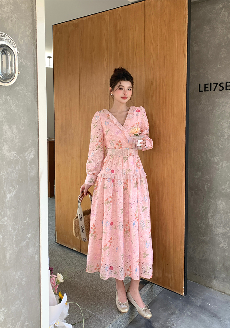 RY1272# 十三行品质 新款法式茶歇V 领碎花连衣裙 配腰带88215