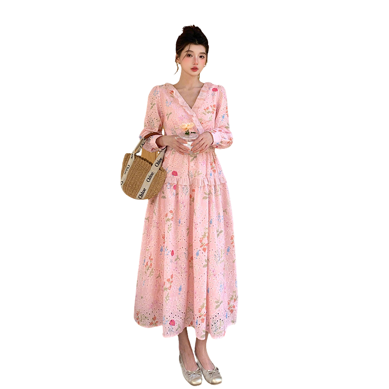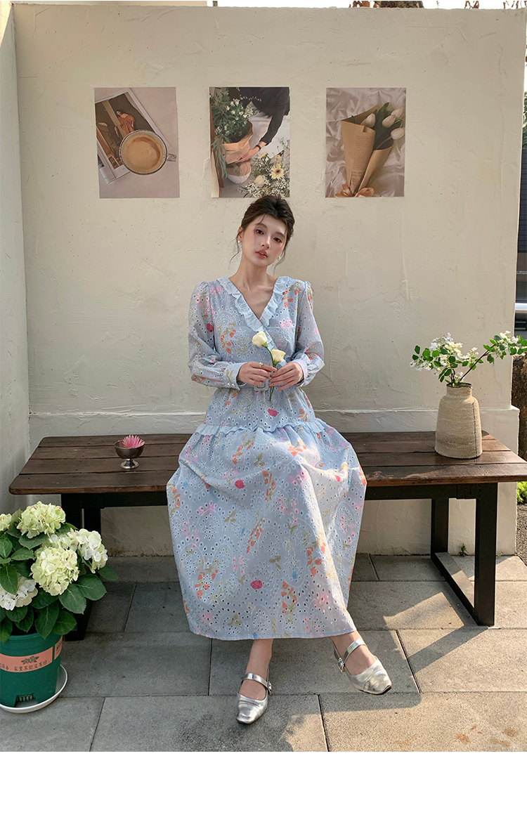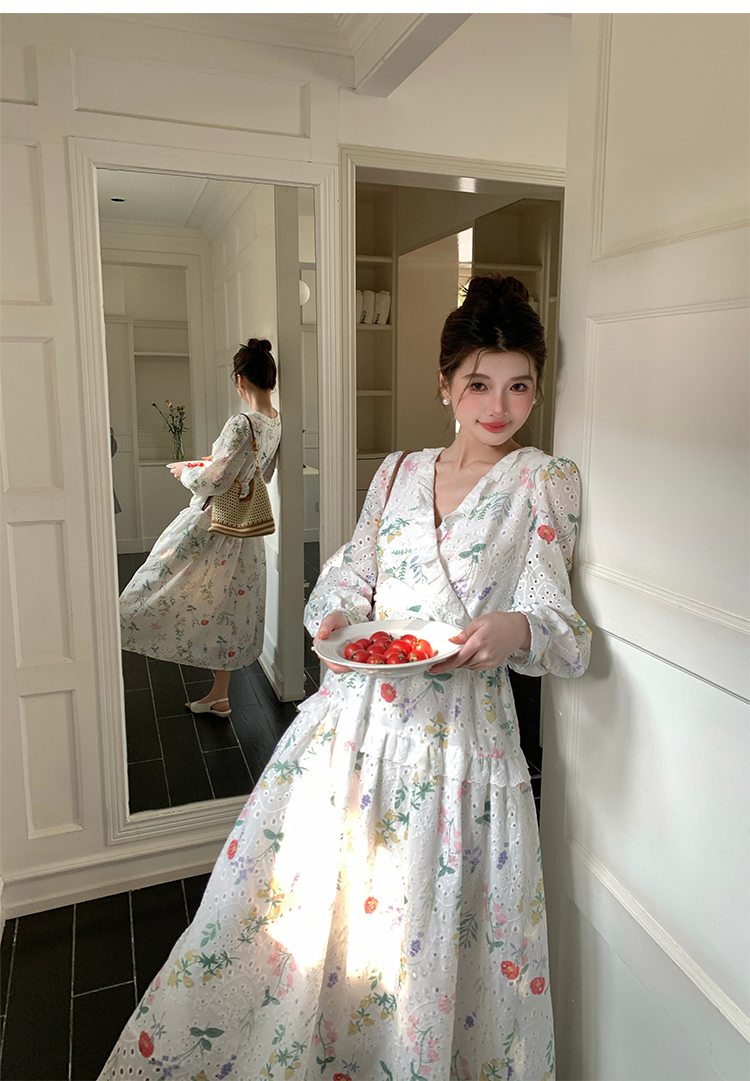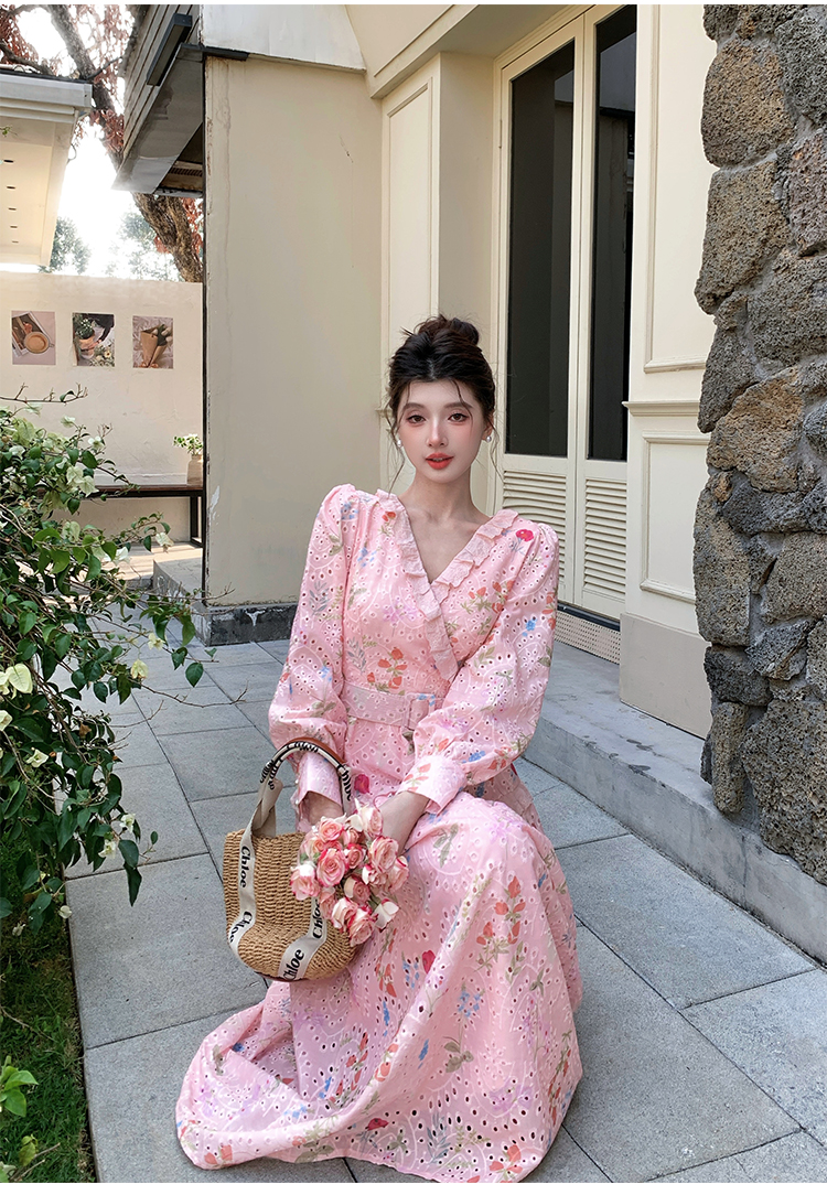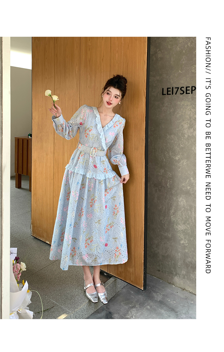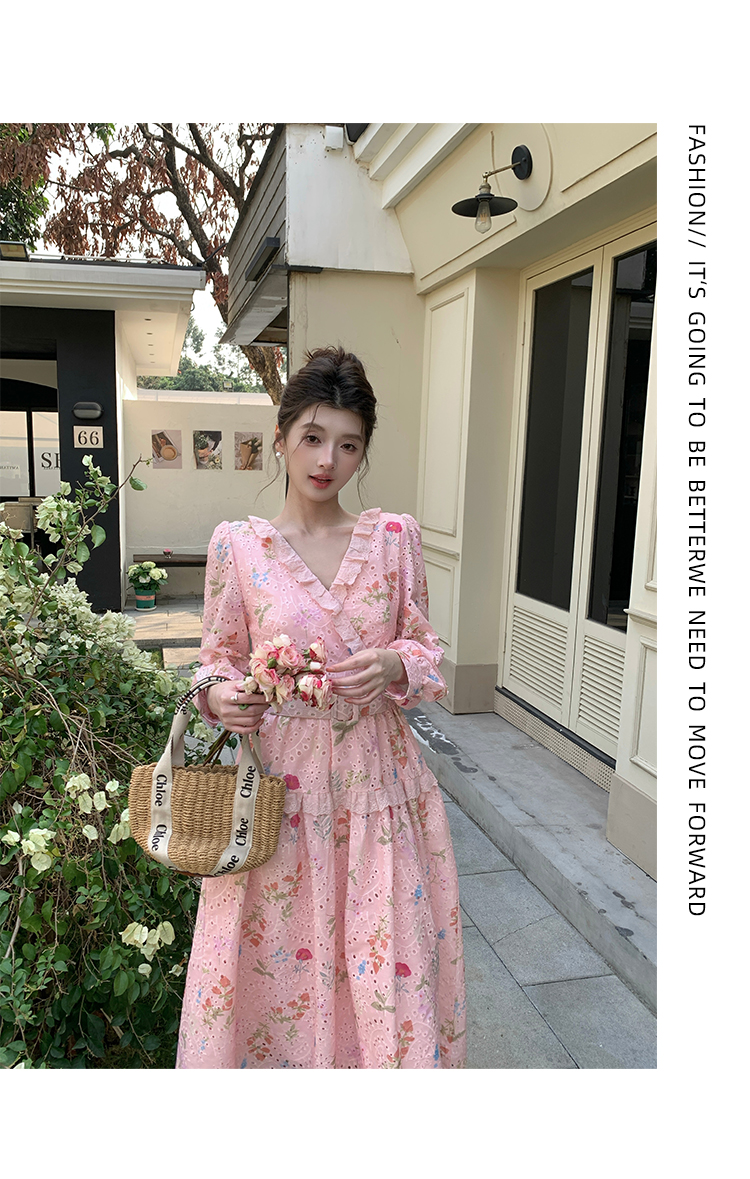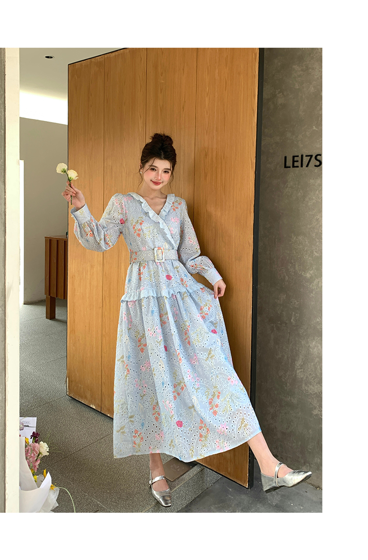 RY1272# 十三行品质 新款法式茶歇V 领碎花连衣裙 配腰带88215