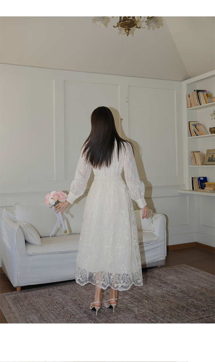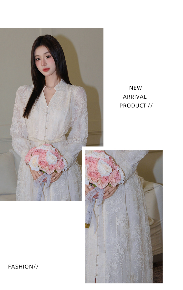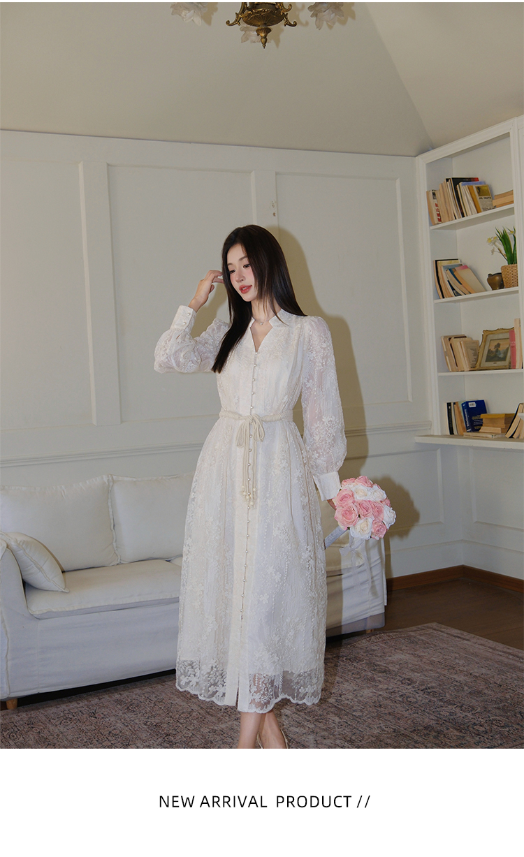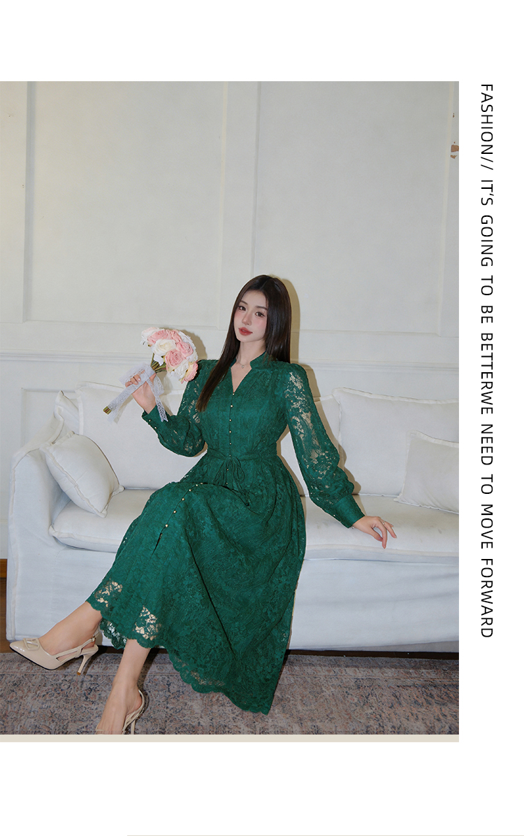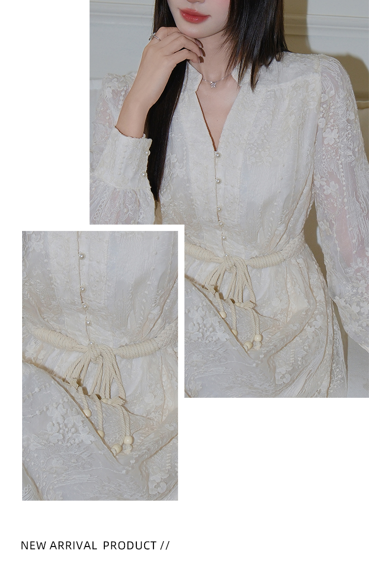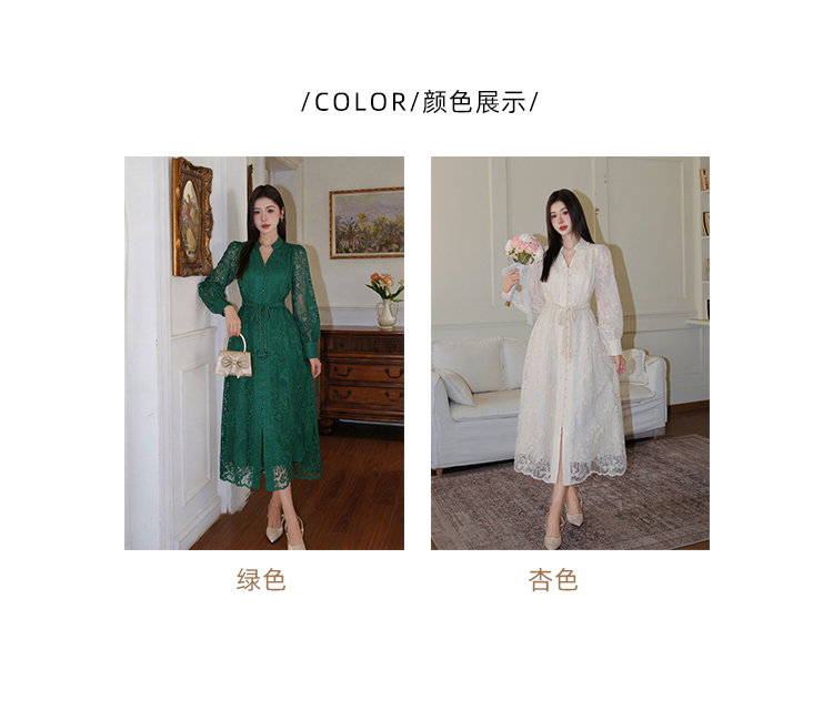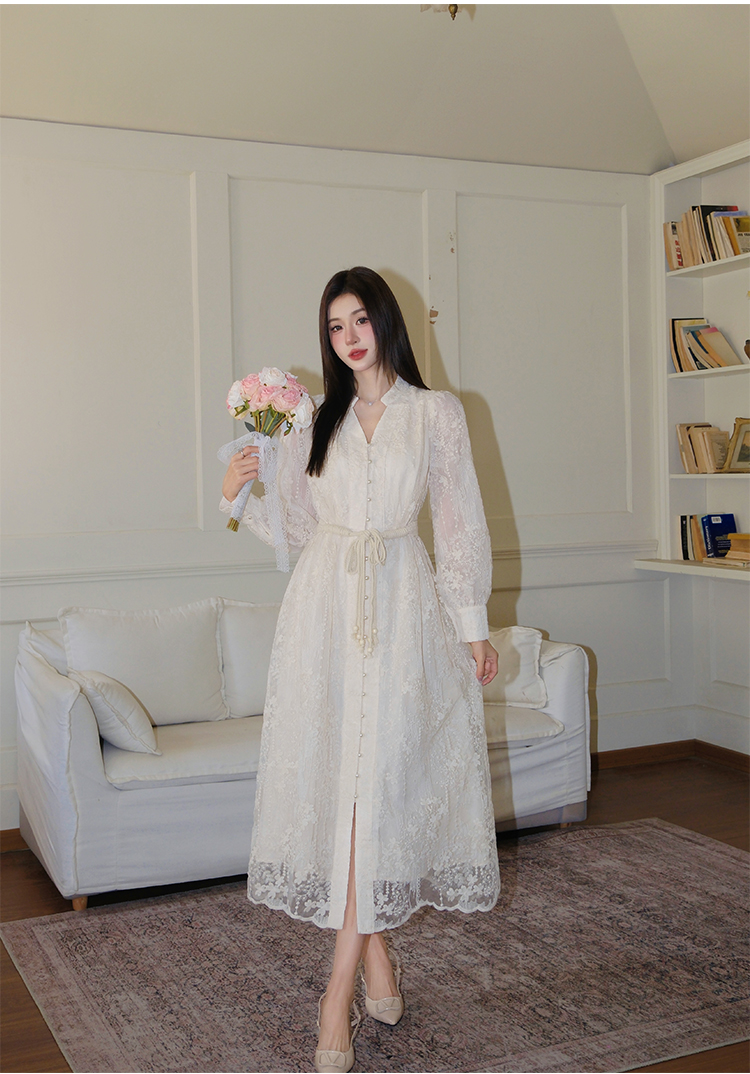 RY1273# 十三行品质 重工刺绣V领灯笼袖连衣裙收腰显瘦大摆长裙子7297