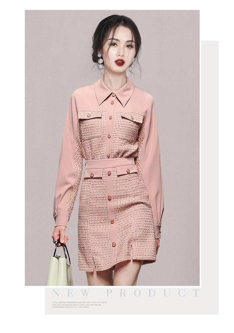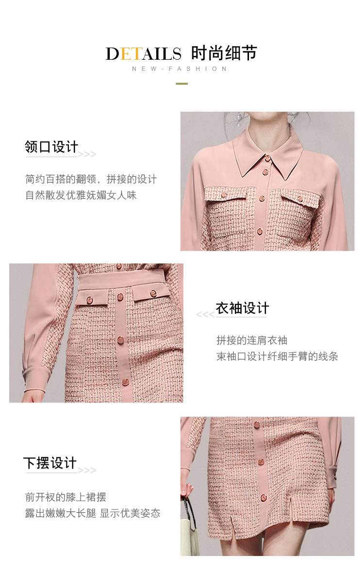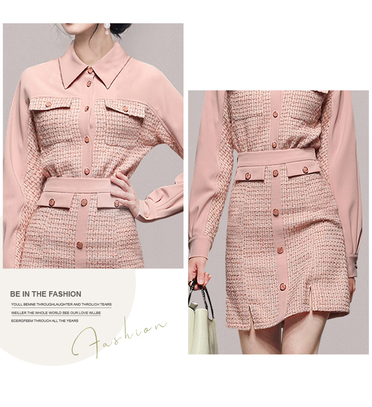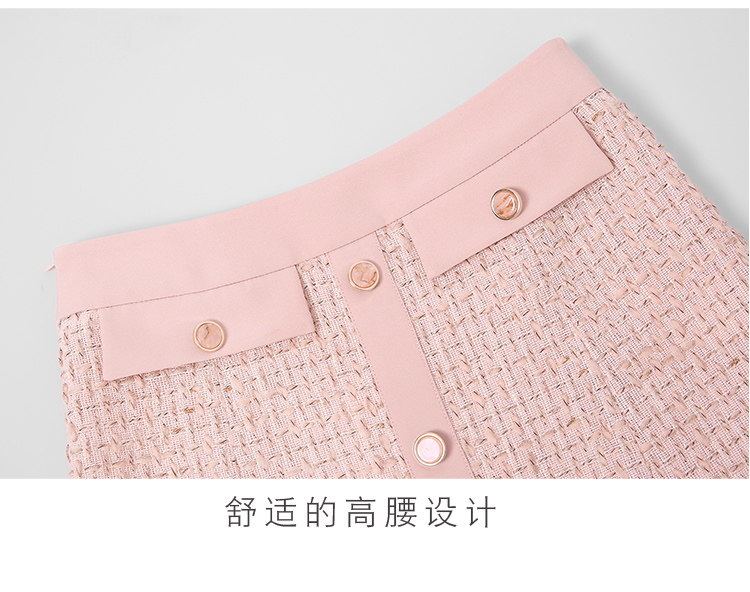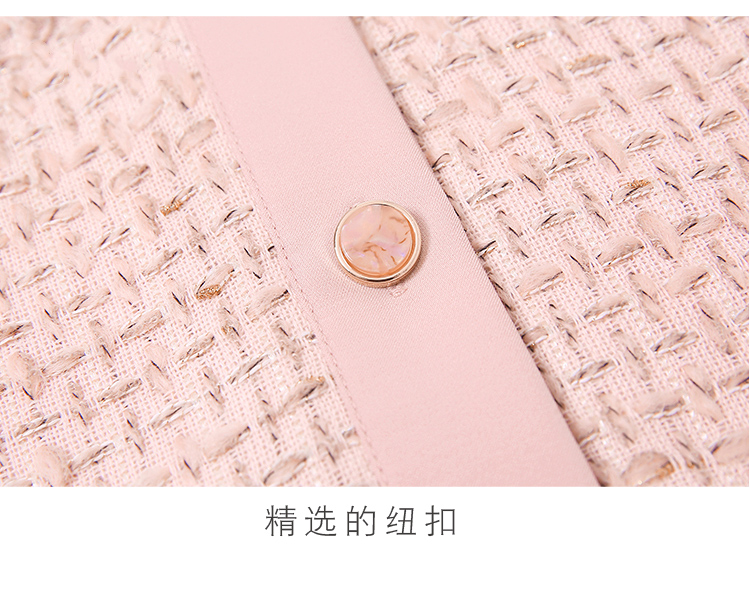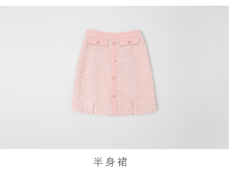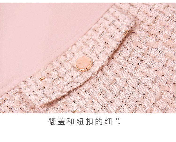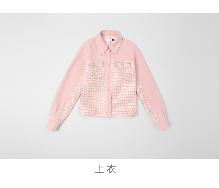 RY1277# 小香风套装女2025新款粉拼接衬衫 粗花呢半身裙气质名媛两件套