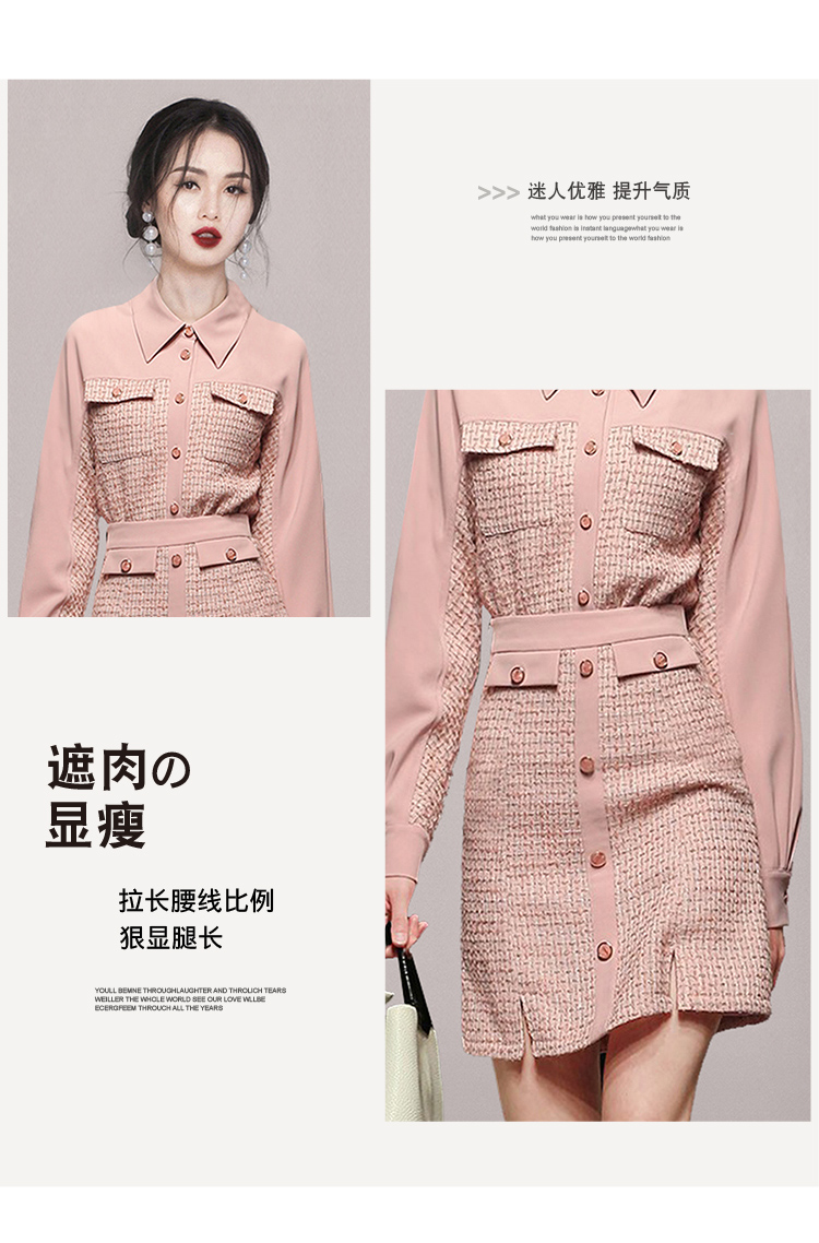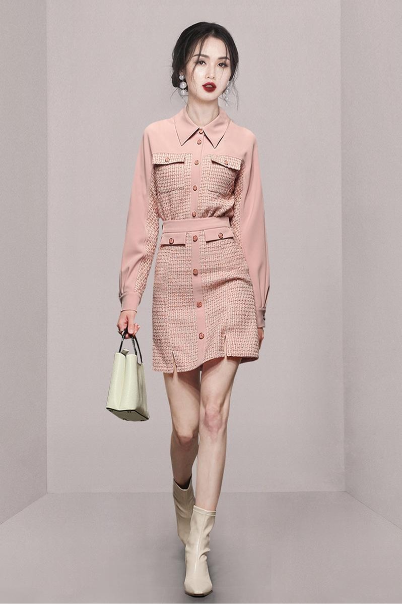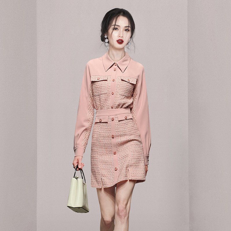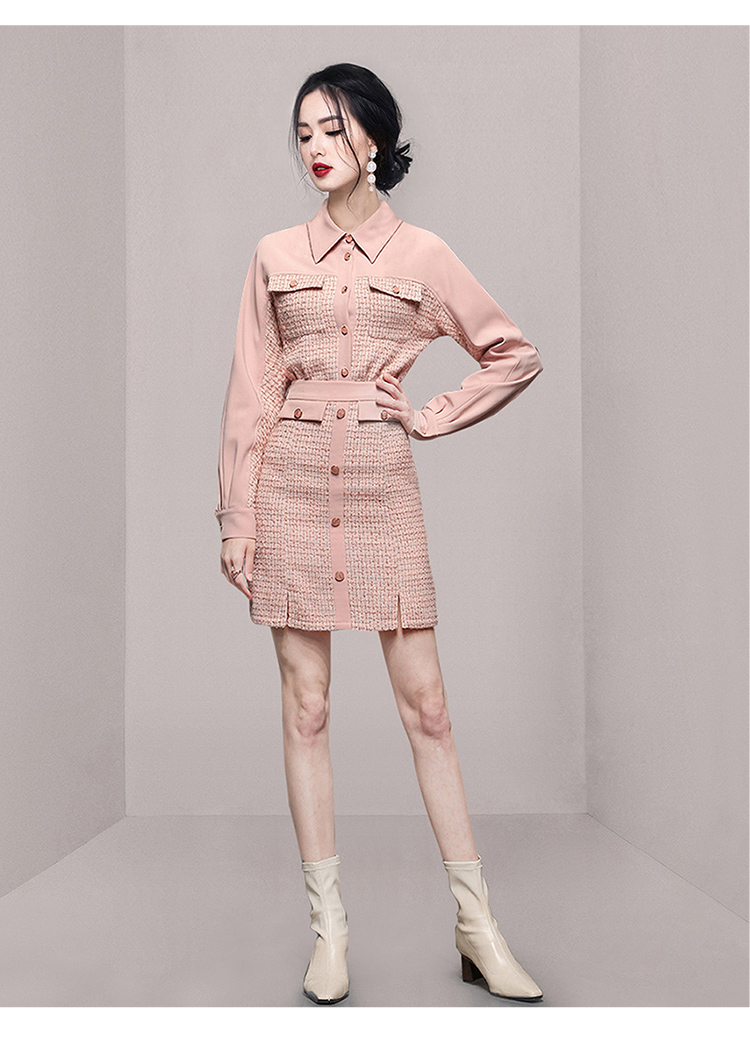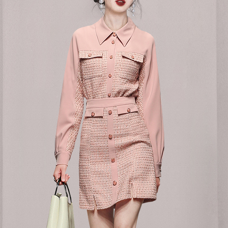 RY1277# 小香风套装女2025新款粉拼接衬衫 粗花呢半身裙气质名媛两件套