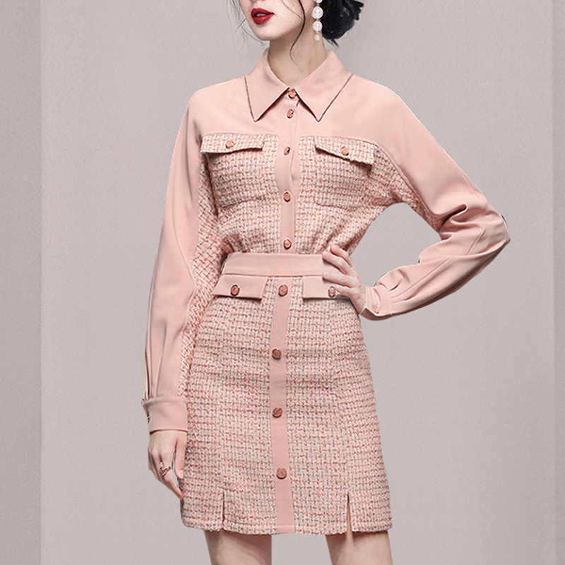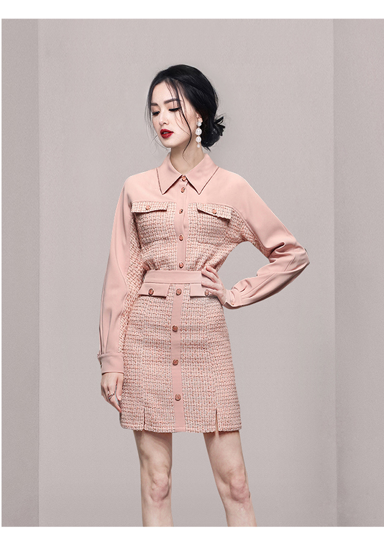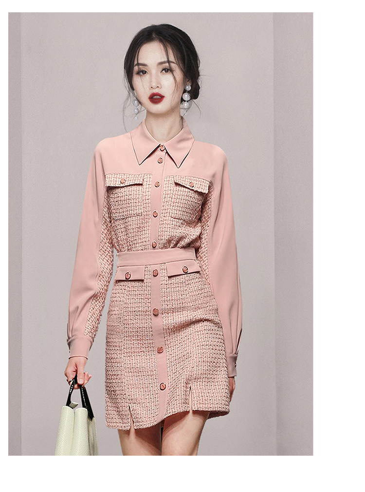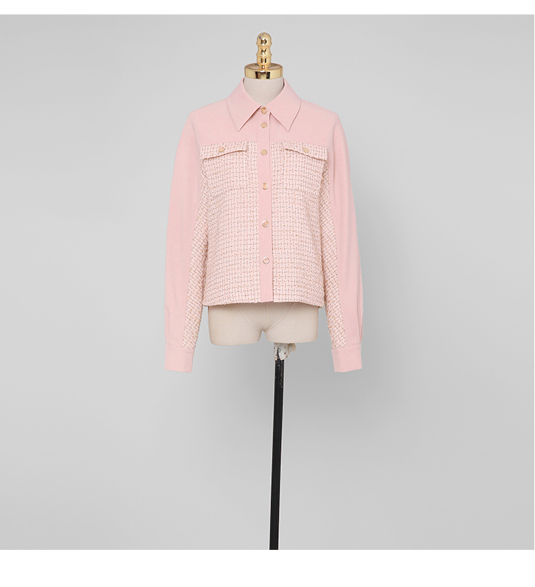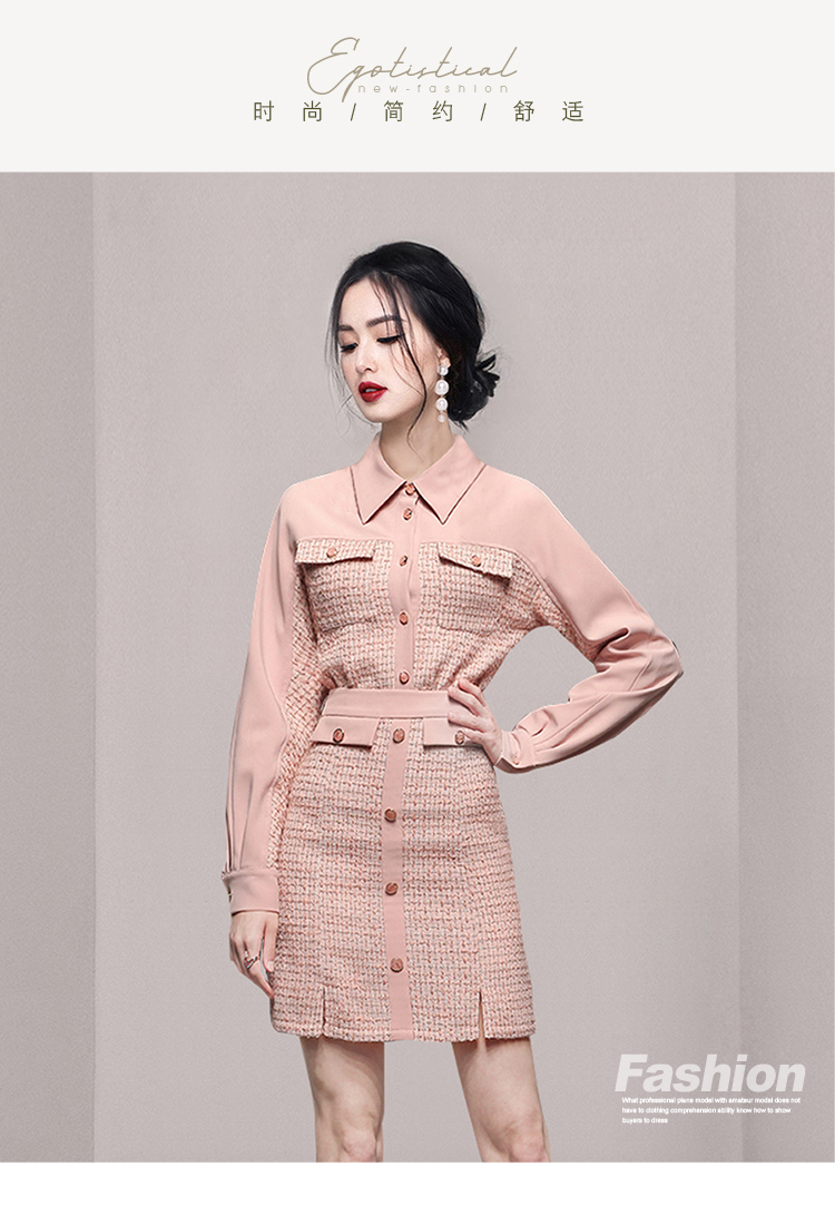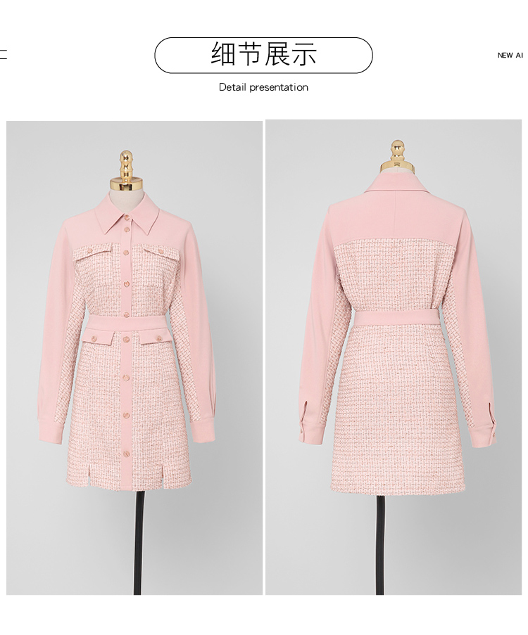 RY1277# 小香风套装女2025新款粉拼接衬衫 粗花呢半身裙气质名媛两件套