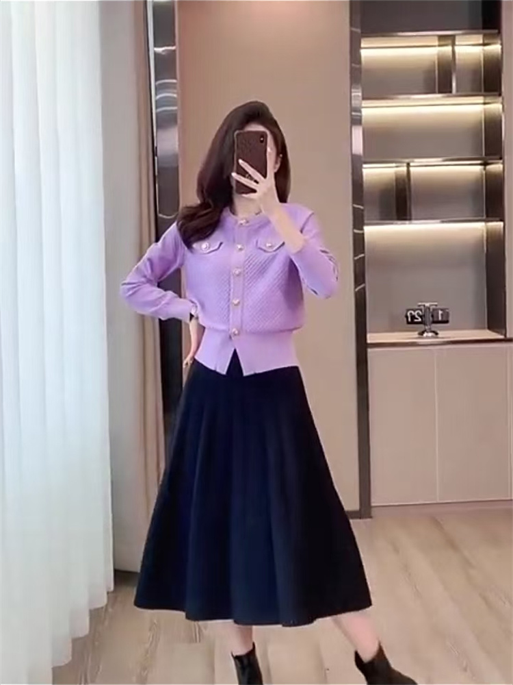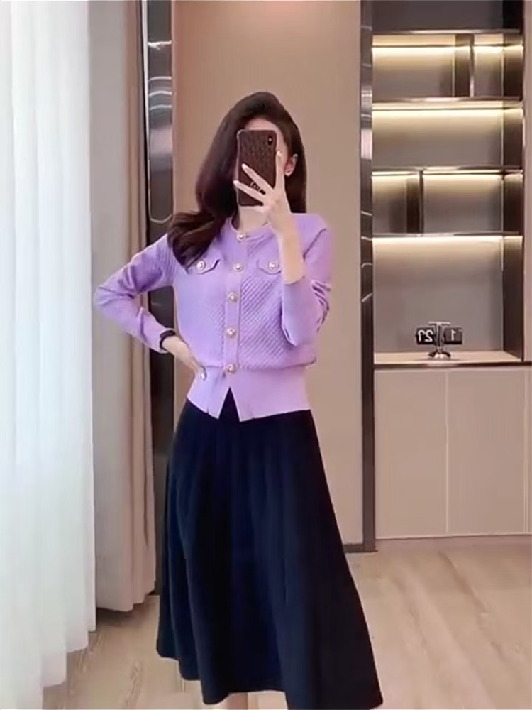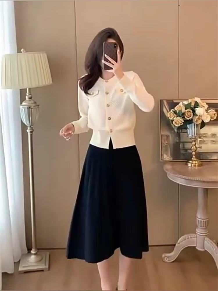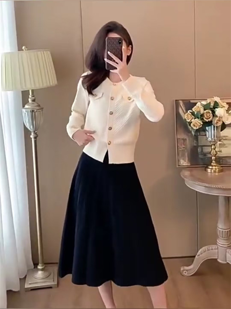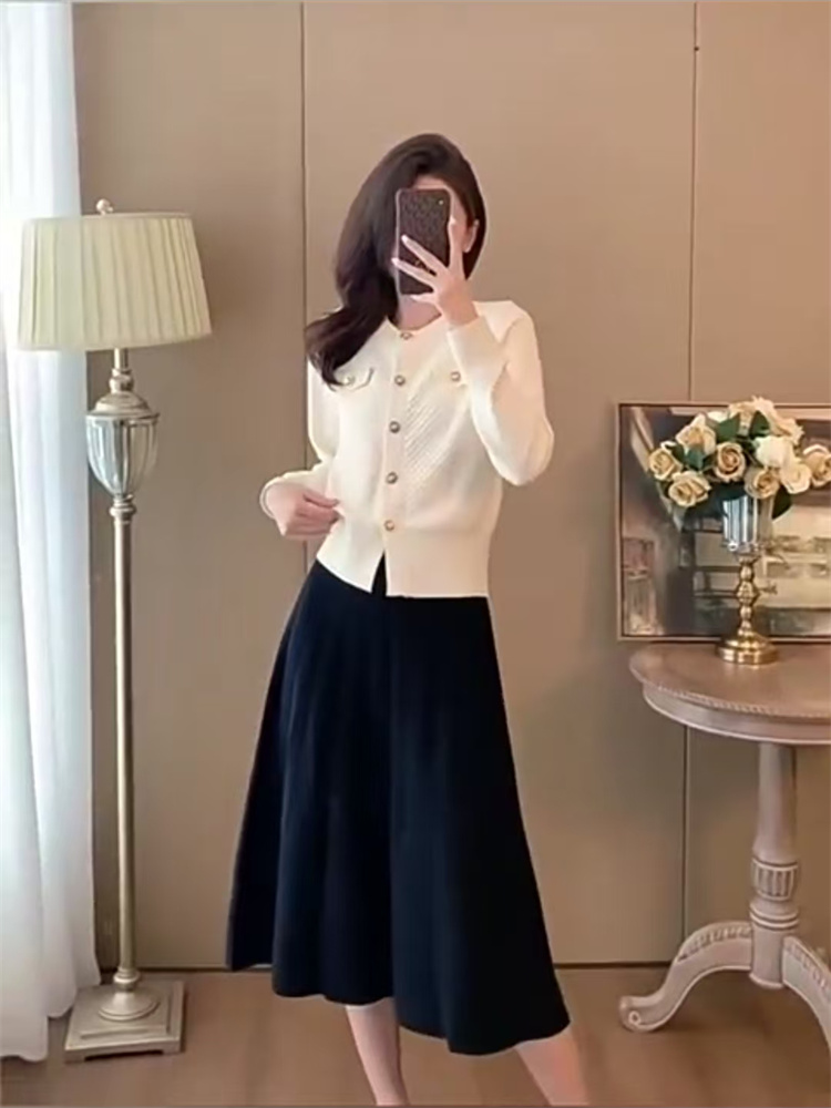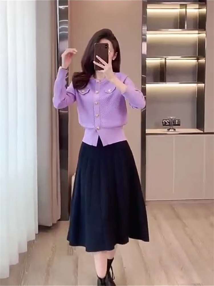 RY1285# 潮流气质纯色上衣半裙套装2024新款女装秋冬时尚针织小洋气两件套