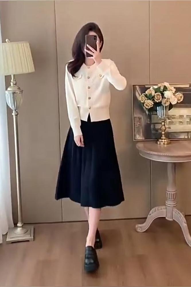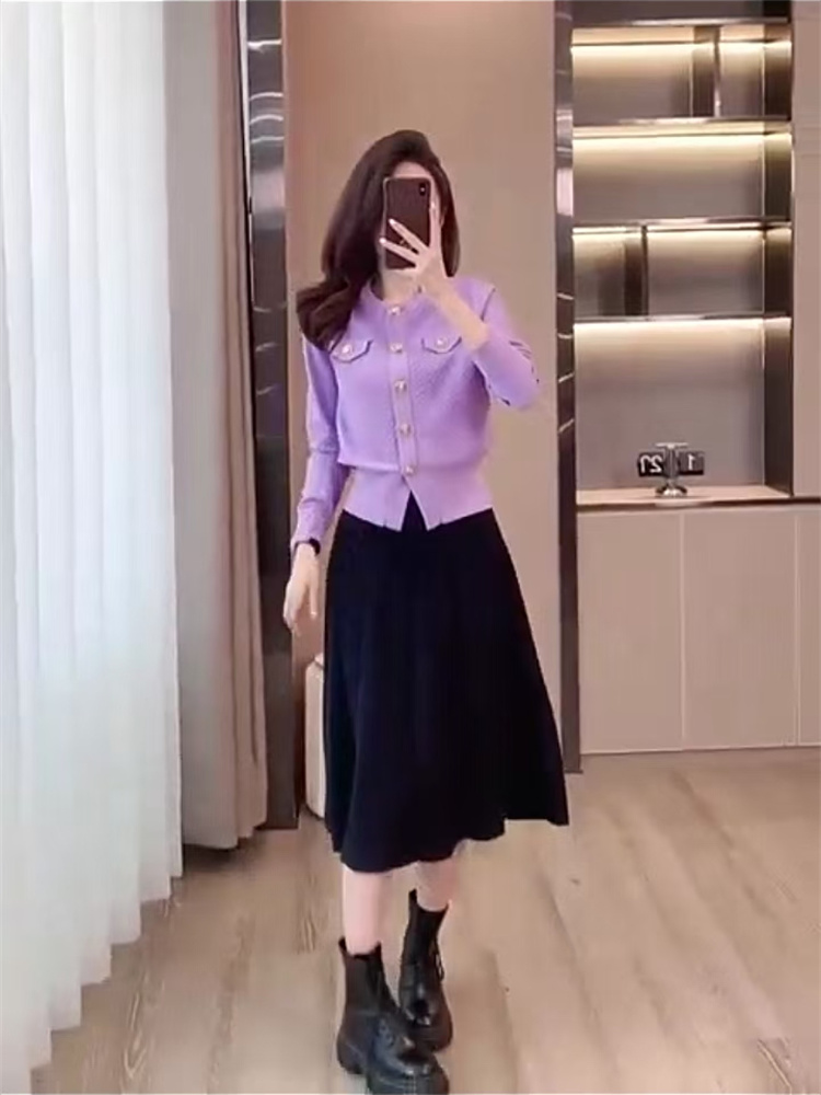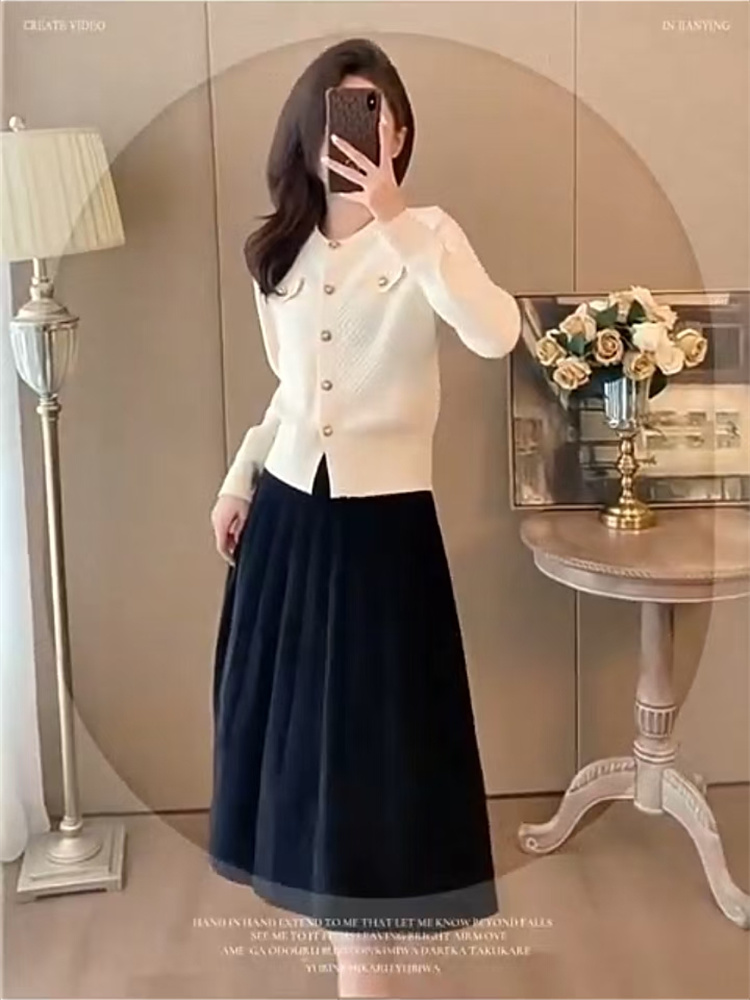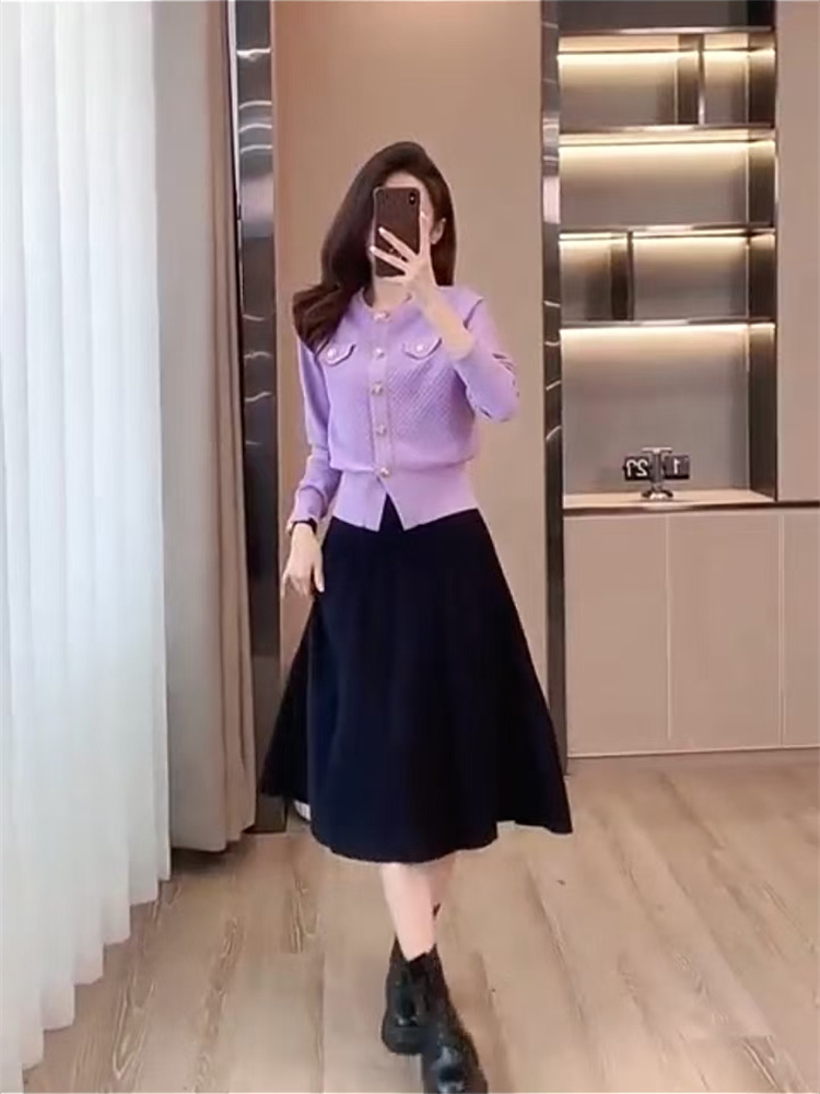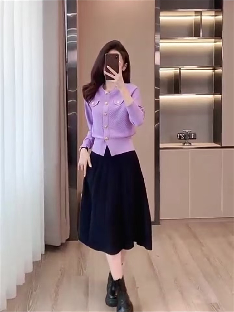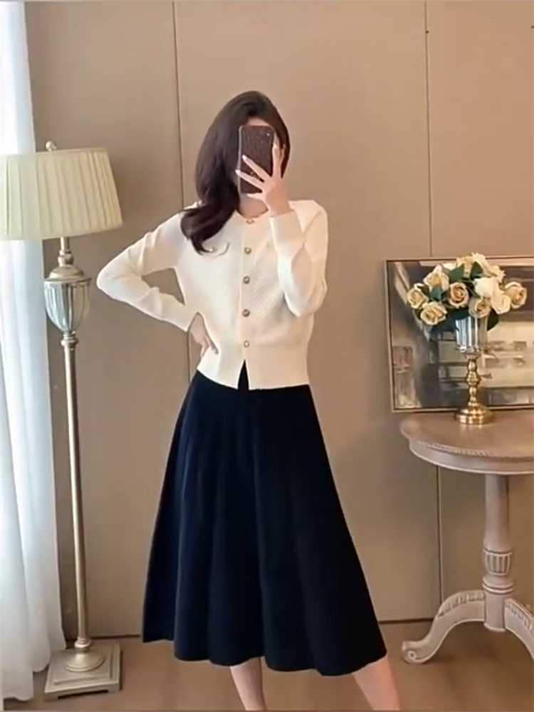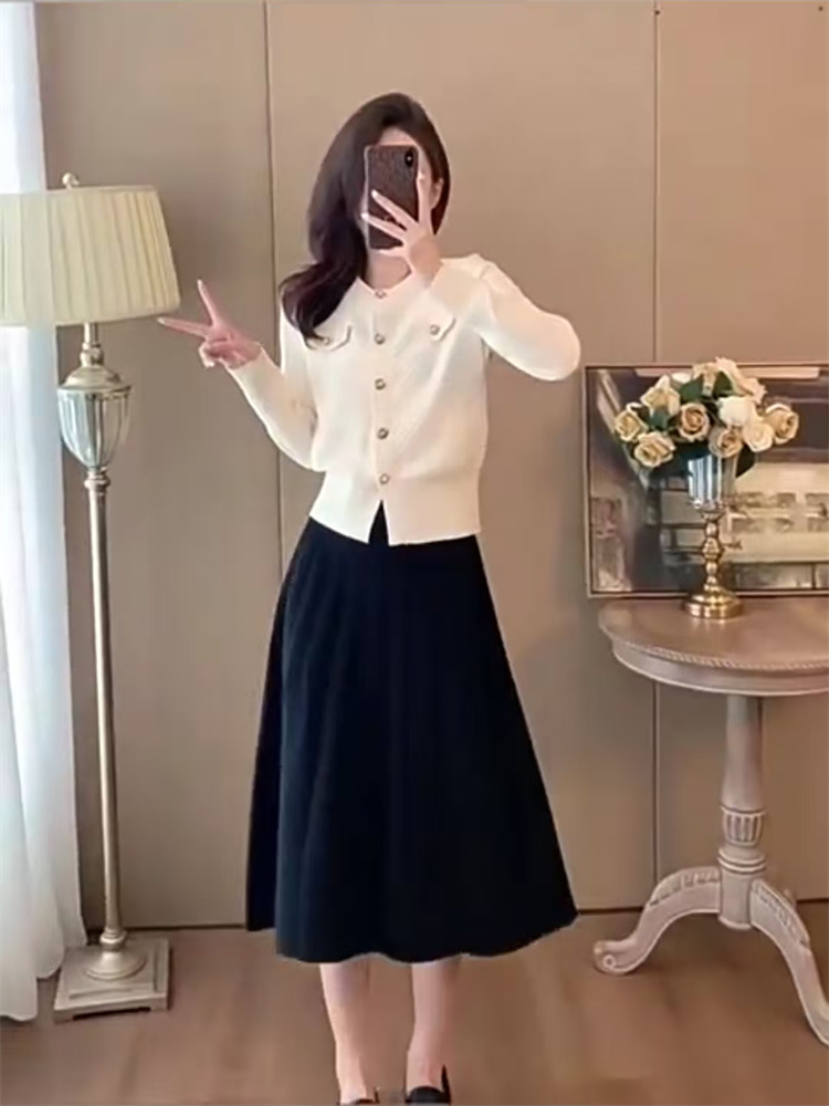 RY1285# 潮流气质纯色上衣半裙套装2024新款女装秋冬时尚针织小洋气两件套