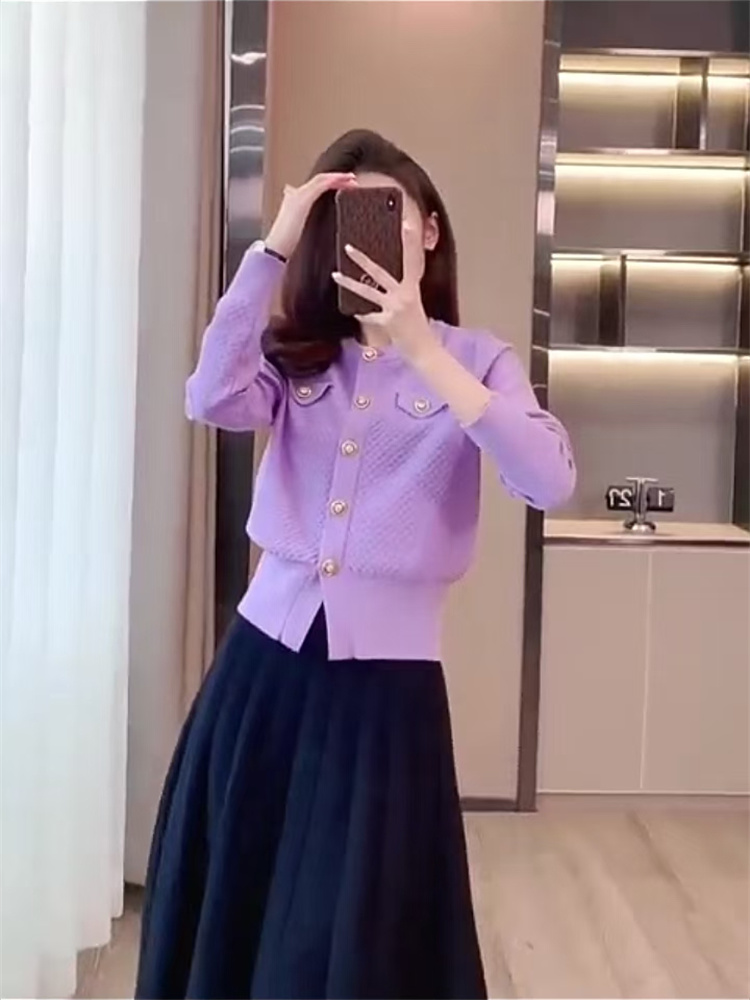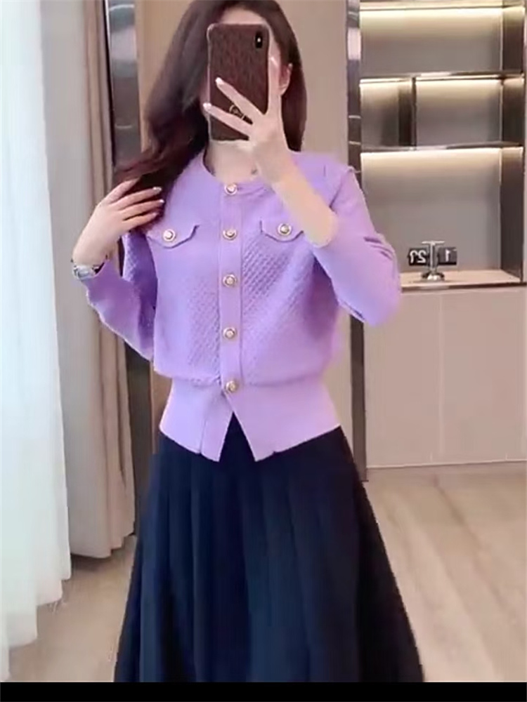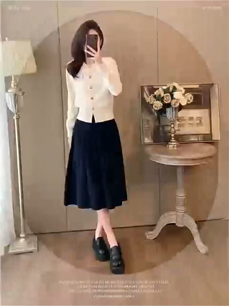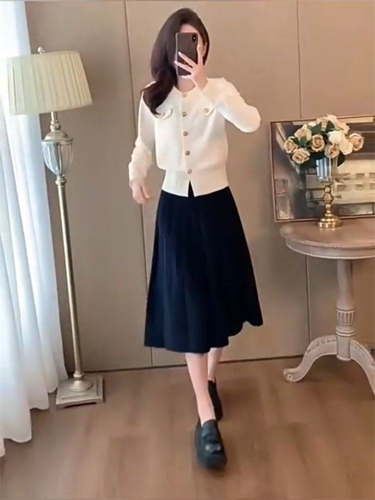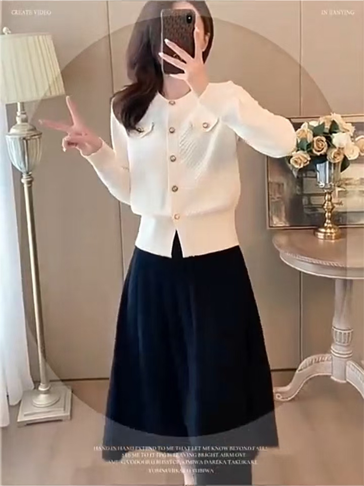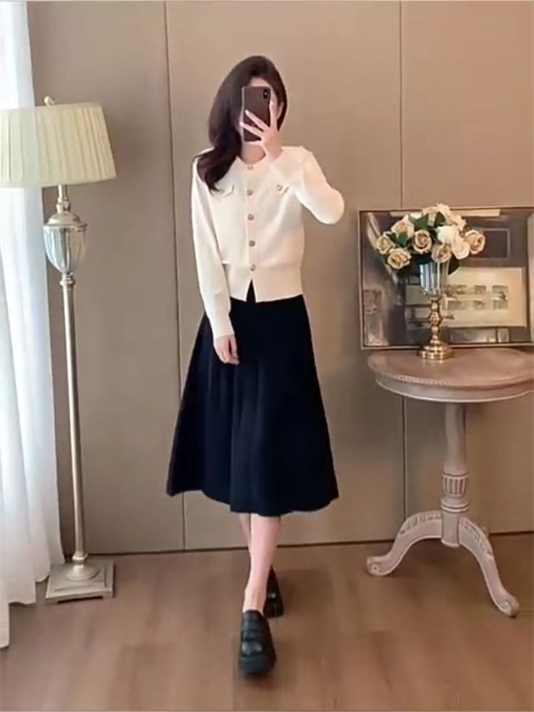RY1285# 潮流气质纯色上衣半裙套装2024新款女装秋冬时尚针织小洋气两件套