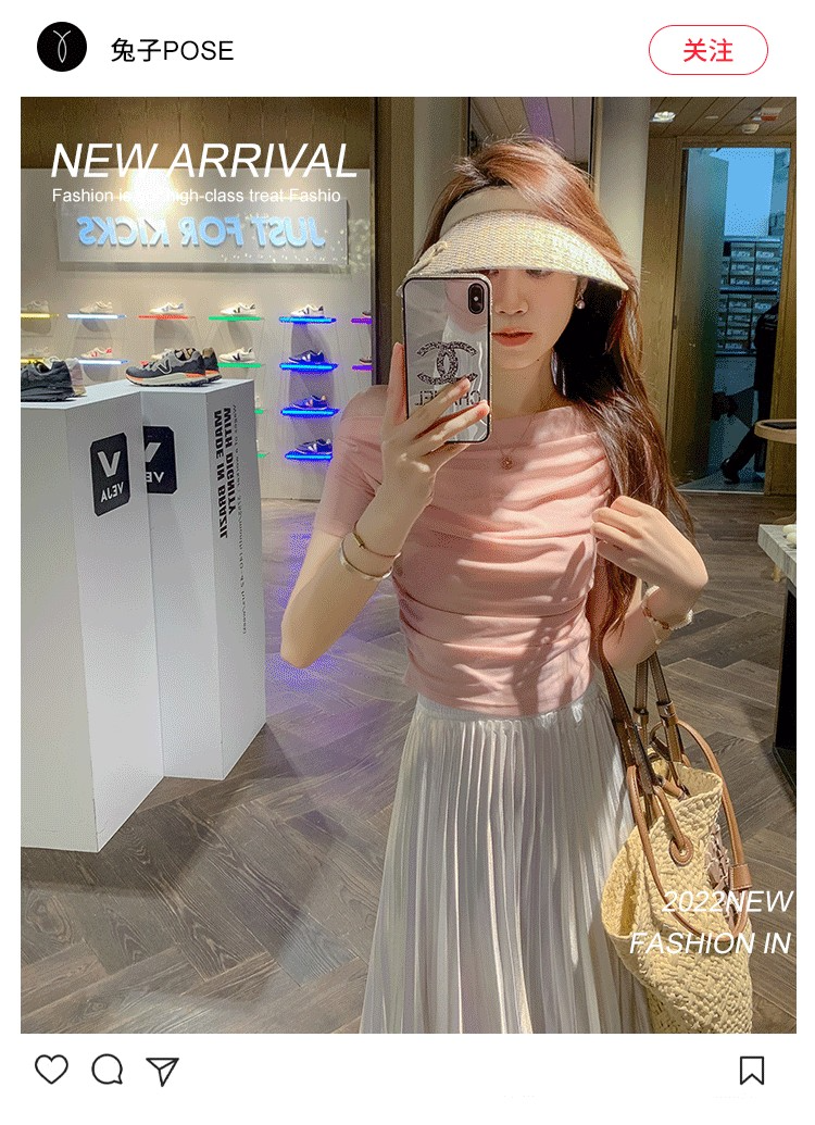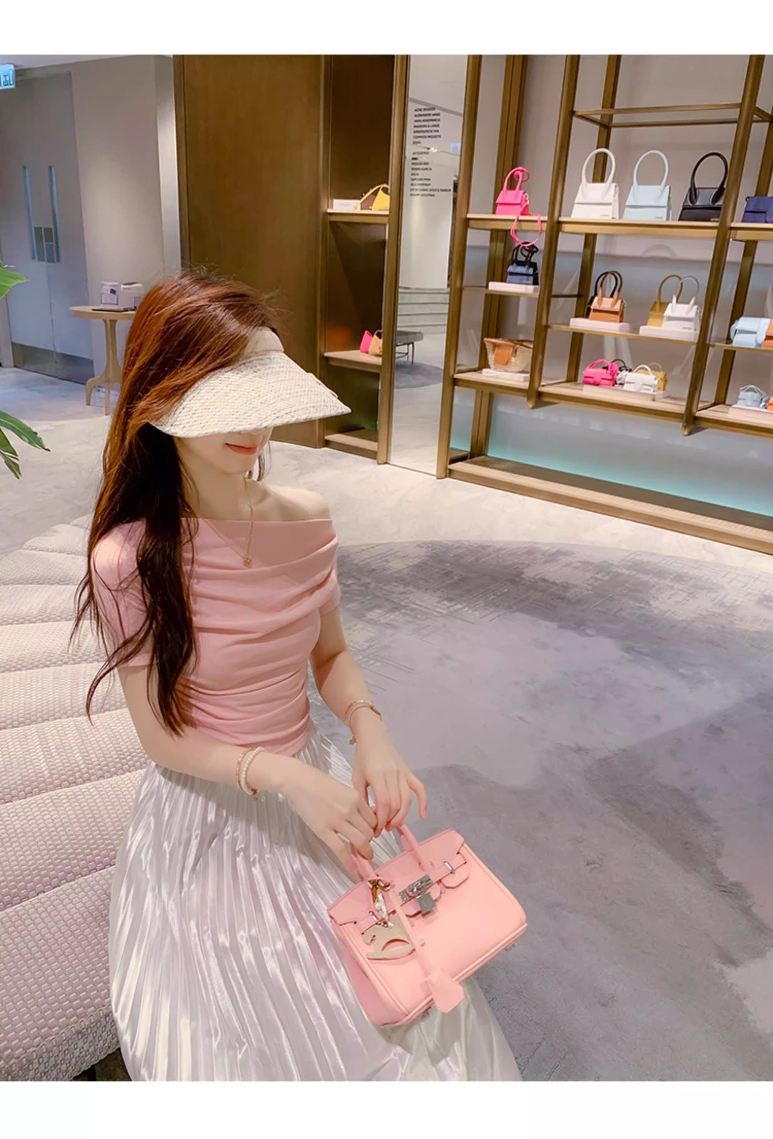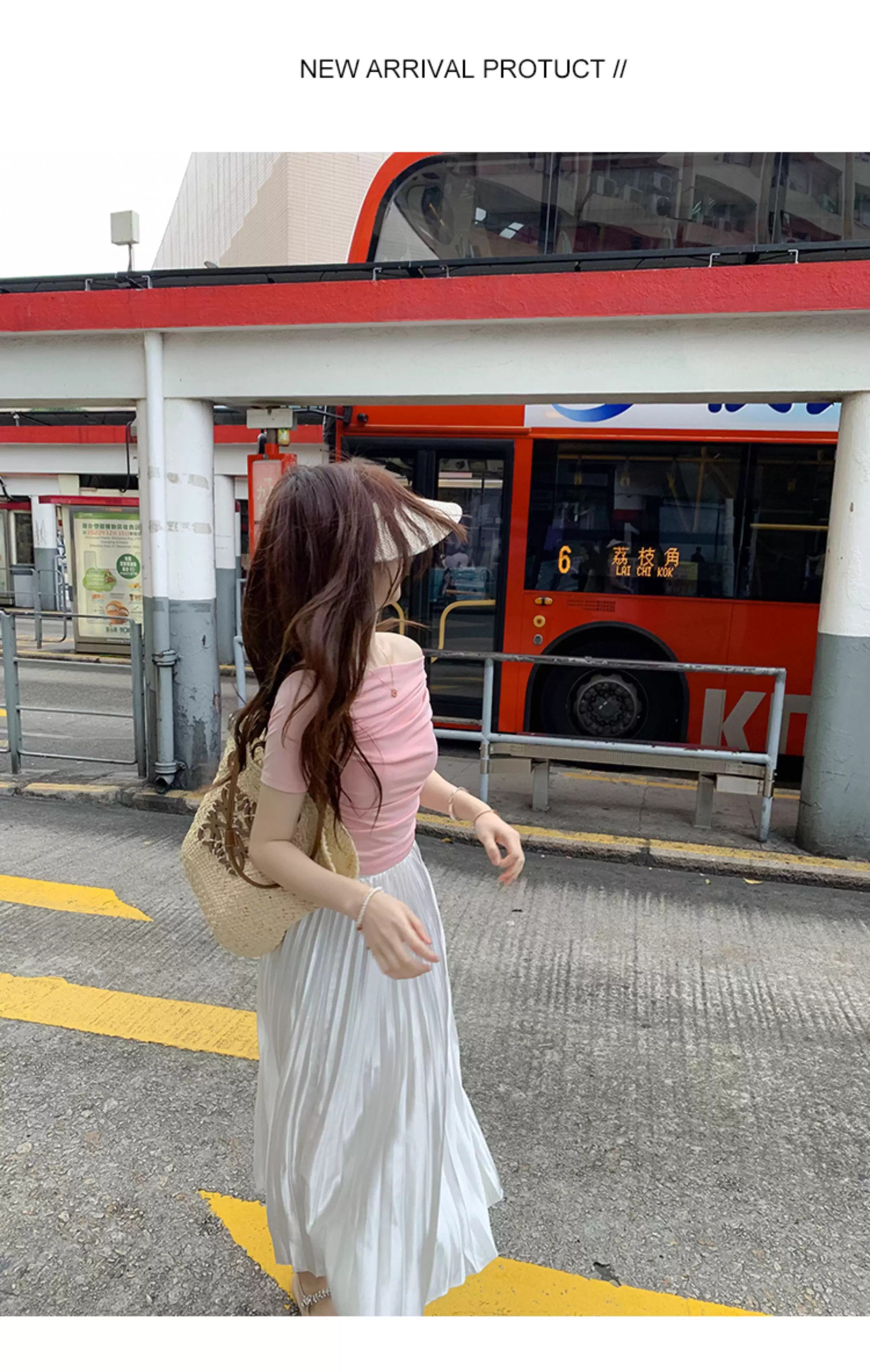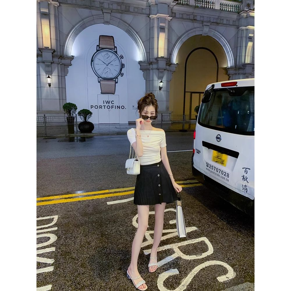 RY1295# 一字露肩短袖t恤女夏季设计感小众上衣