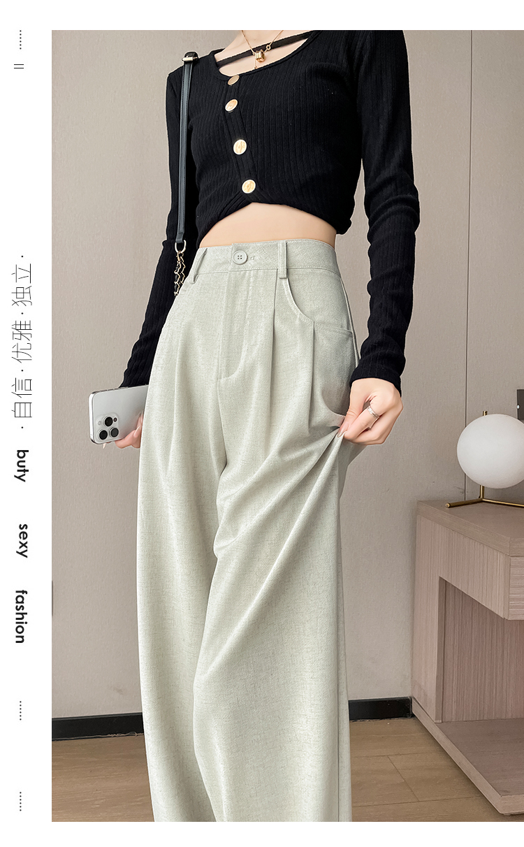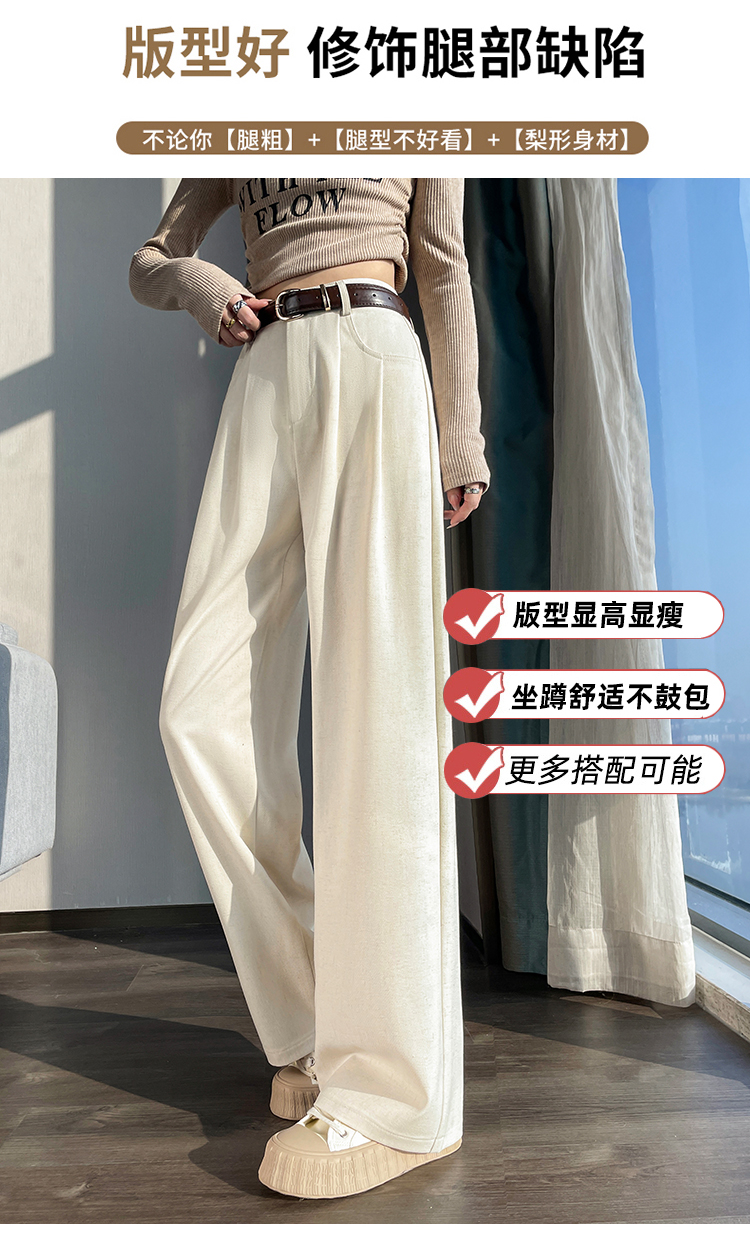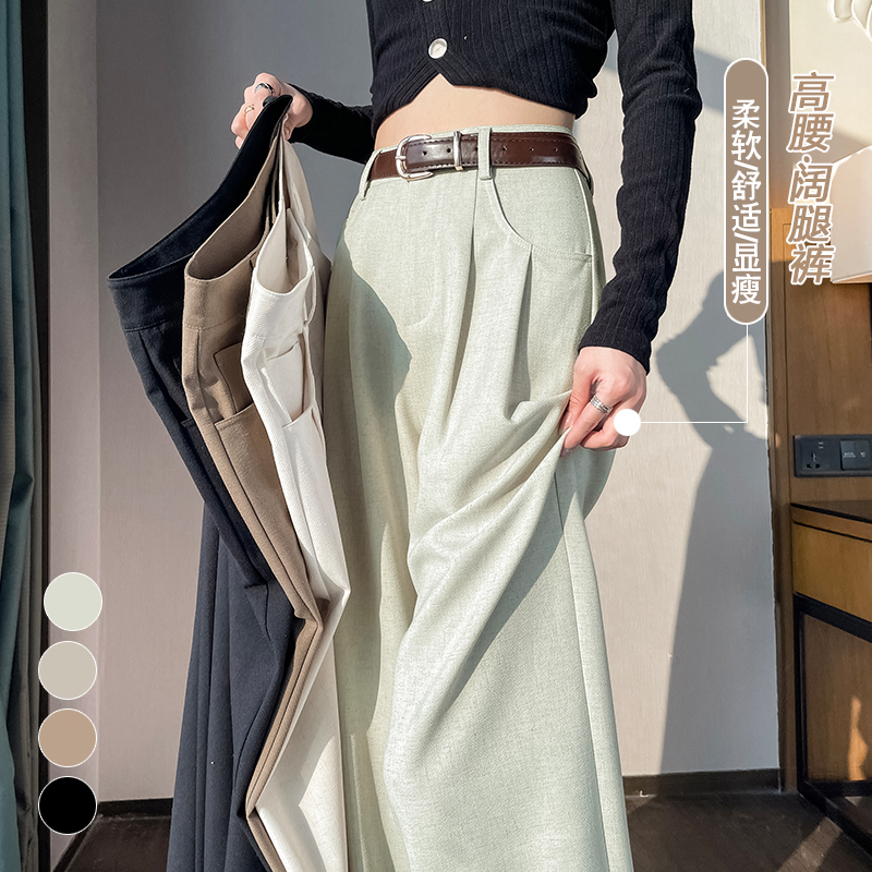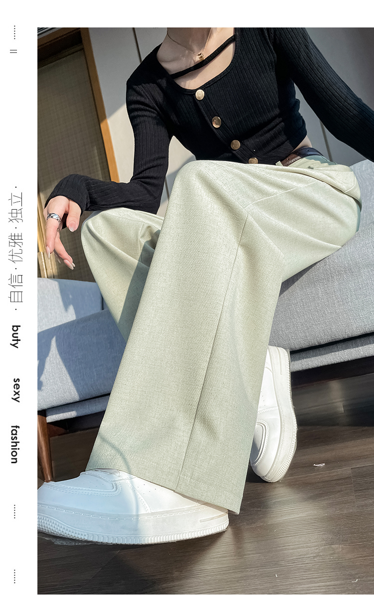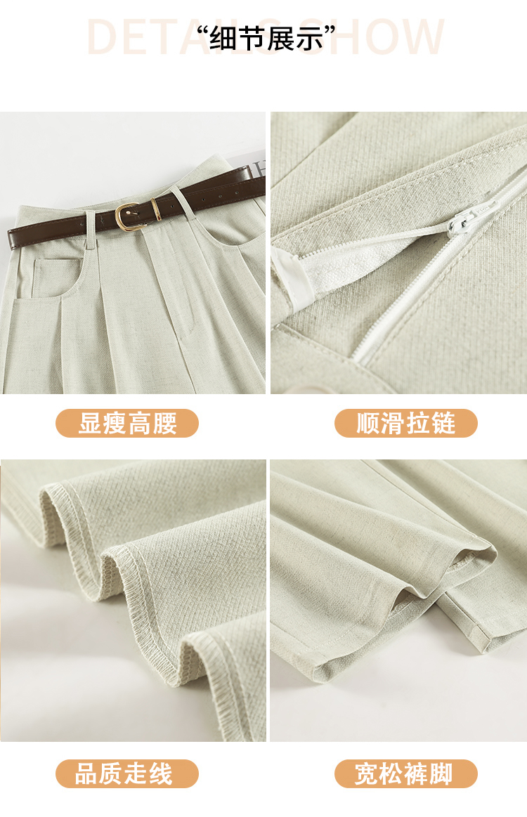 RY1316# 实拍2026春夏新款 麻料时尚高腰百搭宽松显瘦直筒拖地休闲阔腿裤