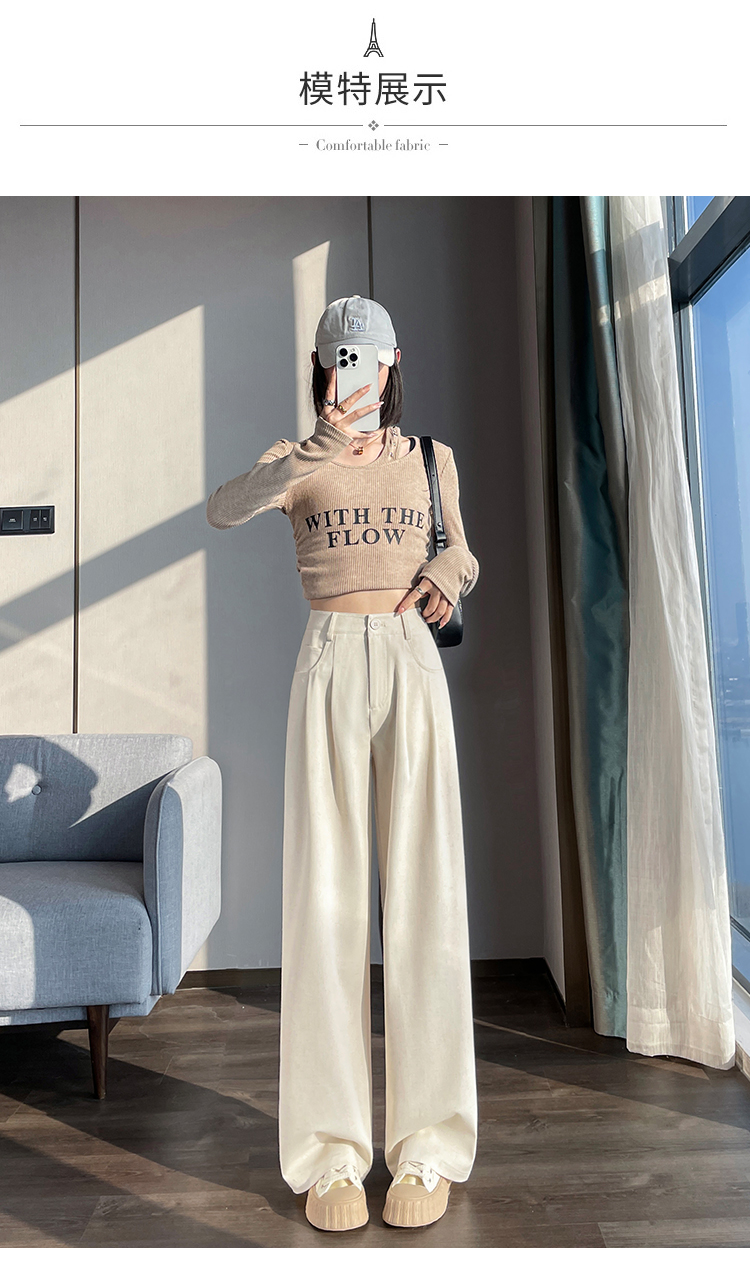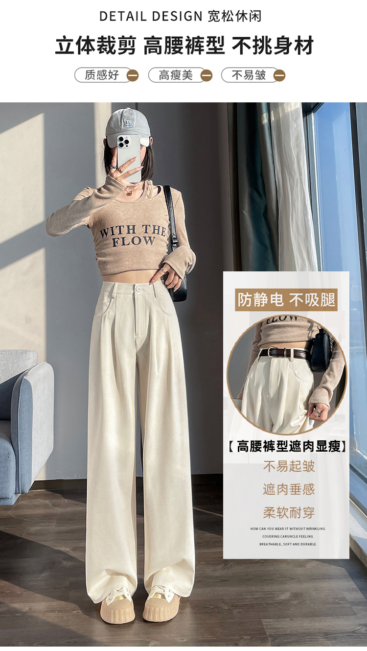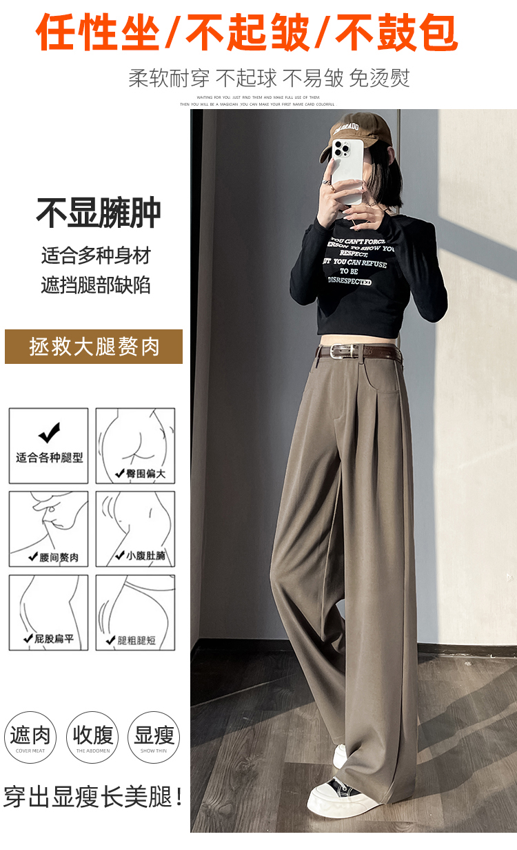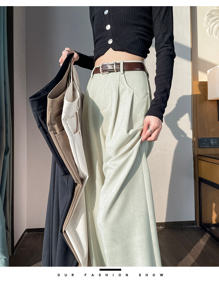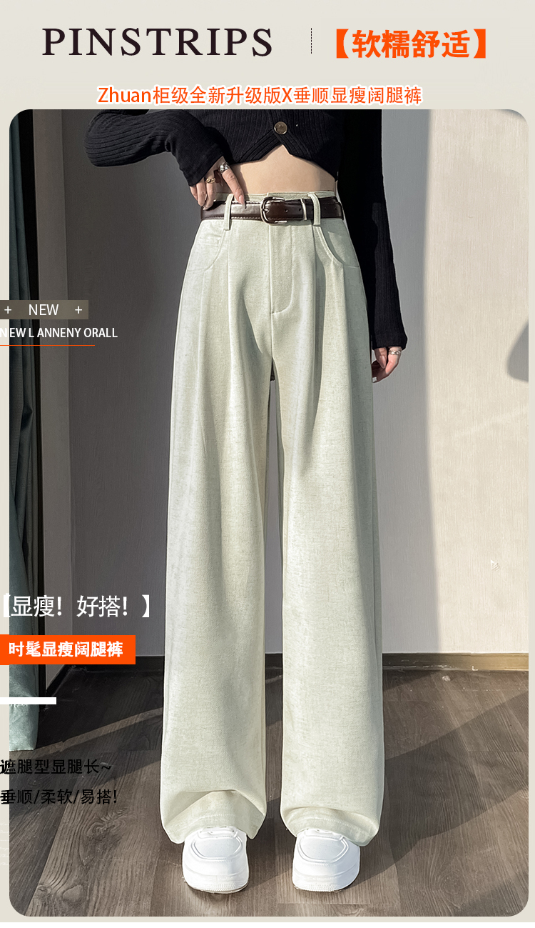 RY1316# 实拍2026春夏新款 麻料时尚高腰百搭宽松显瘦直筒拖地休闲阔腿裤