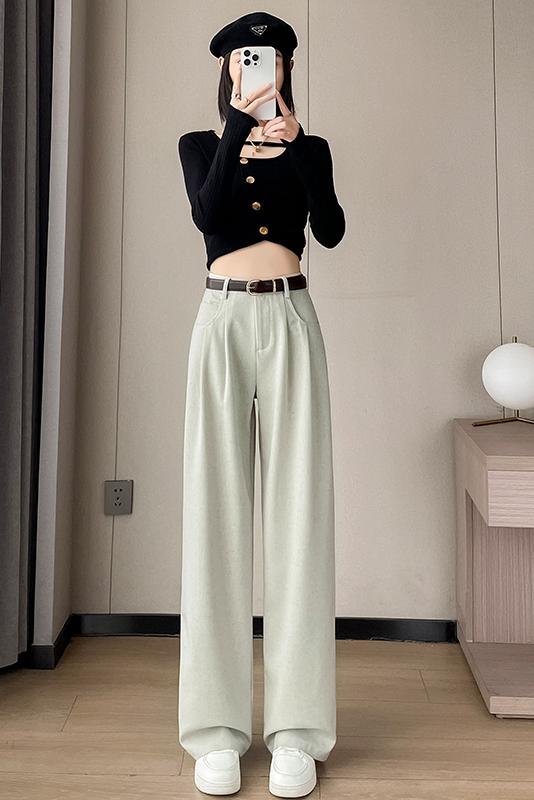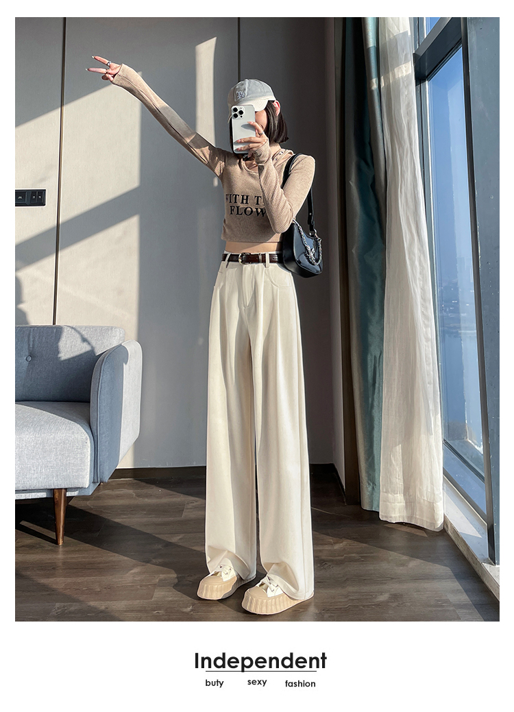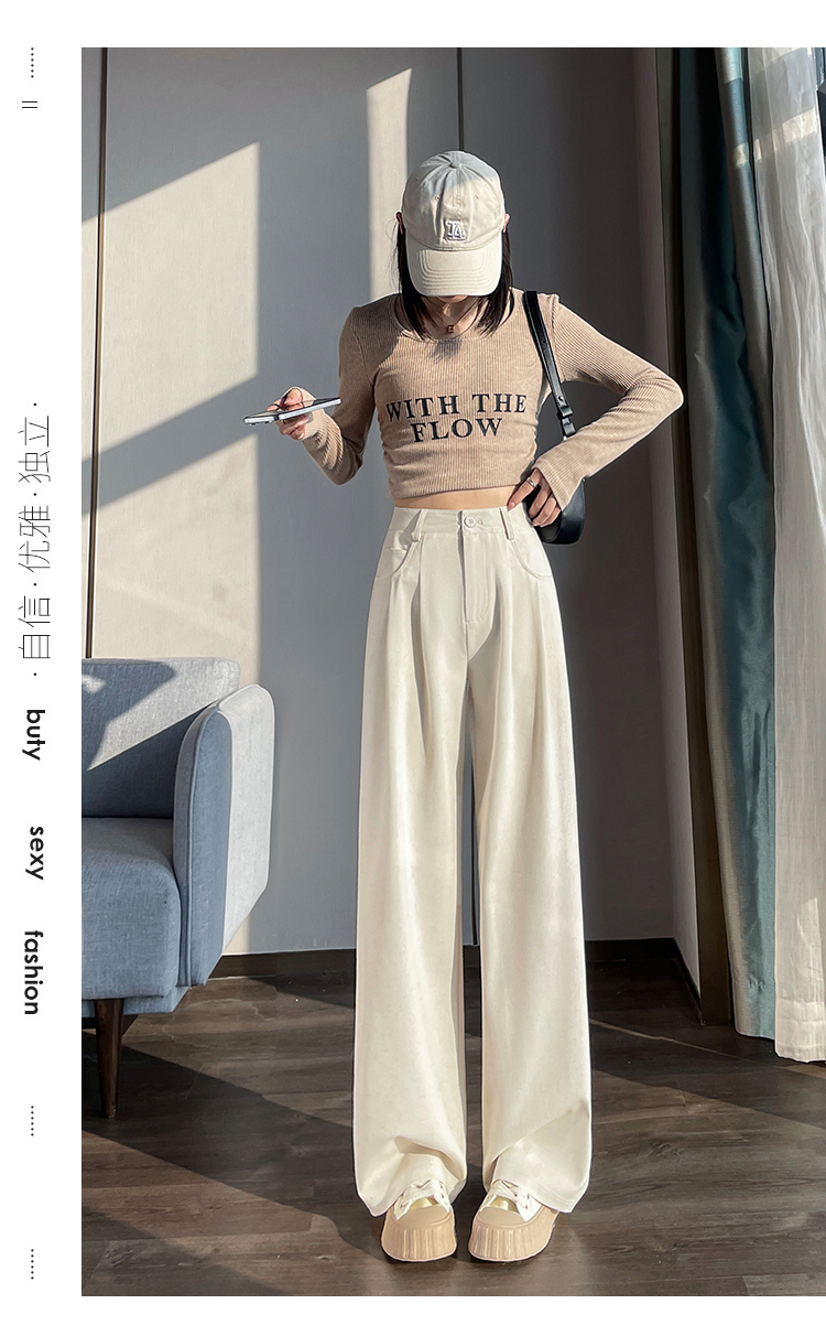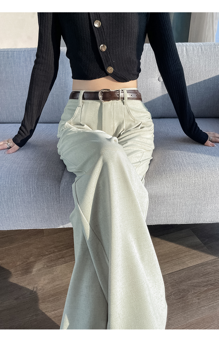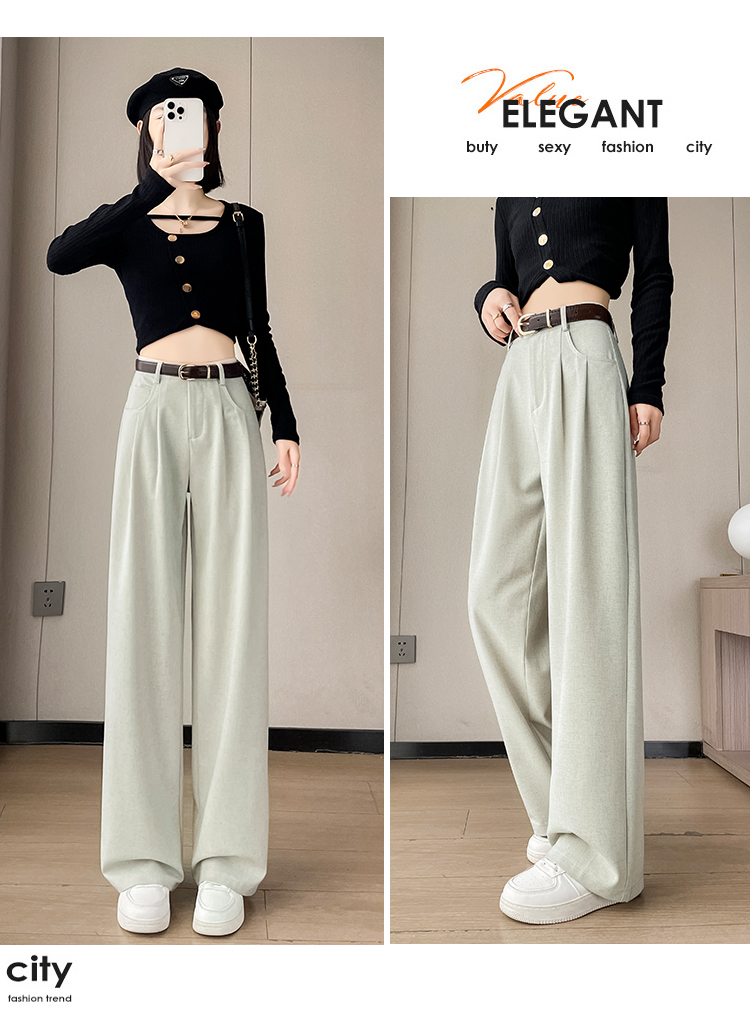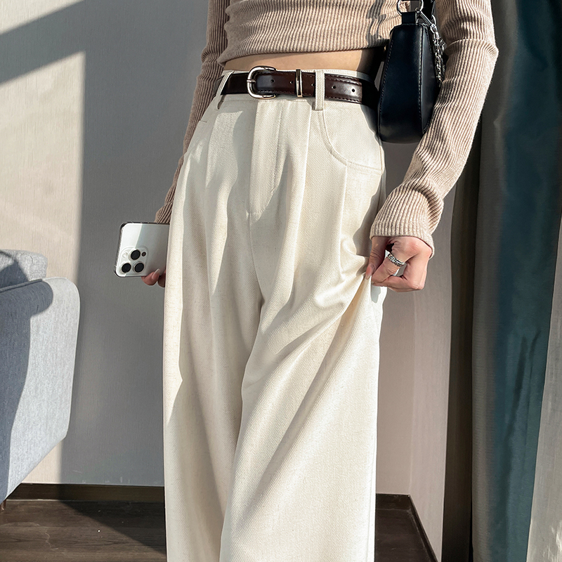 RY1316# 实拍2026春夏新款 麻料时尚高腰百搭宽松显瘦直筒拖地休闲阔腿裤