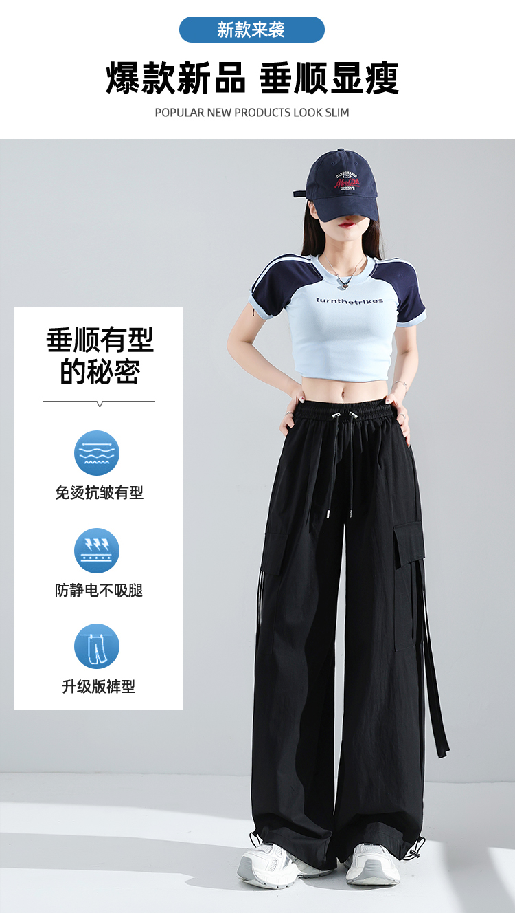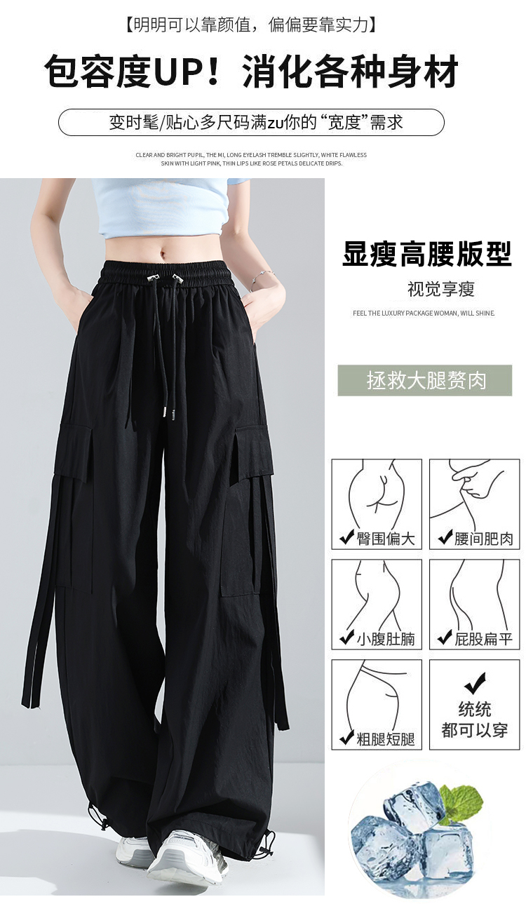 RY1318# 实拍2026夏季新款时尚宽松显瘦阔腿束脚两穿登山裤休闲工装裤