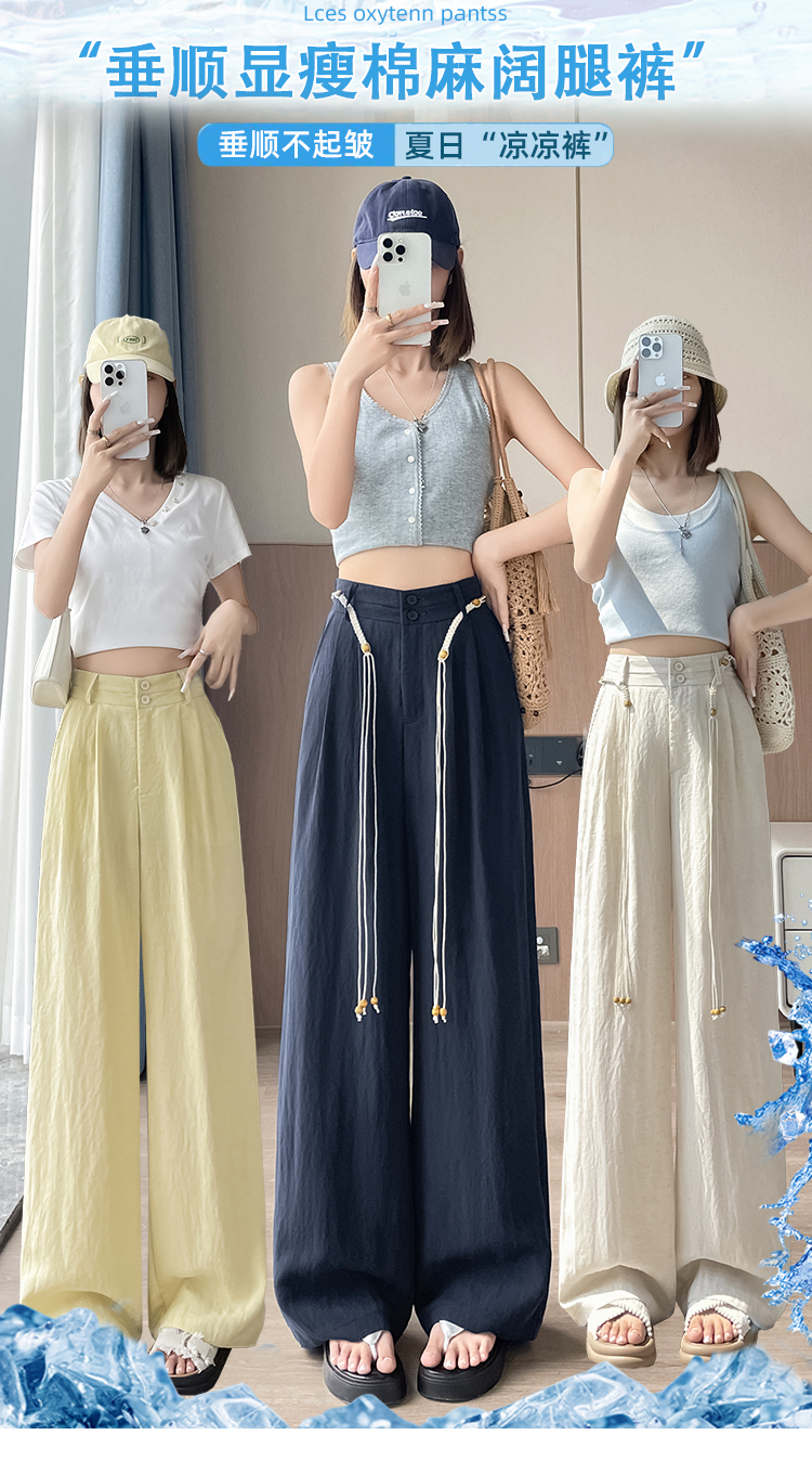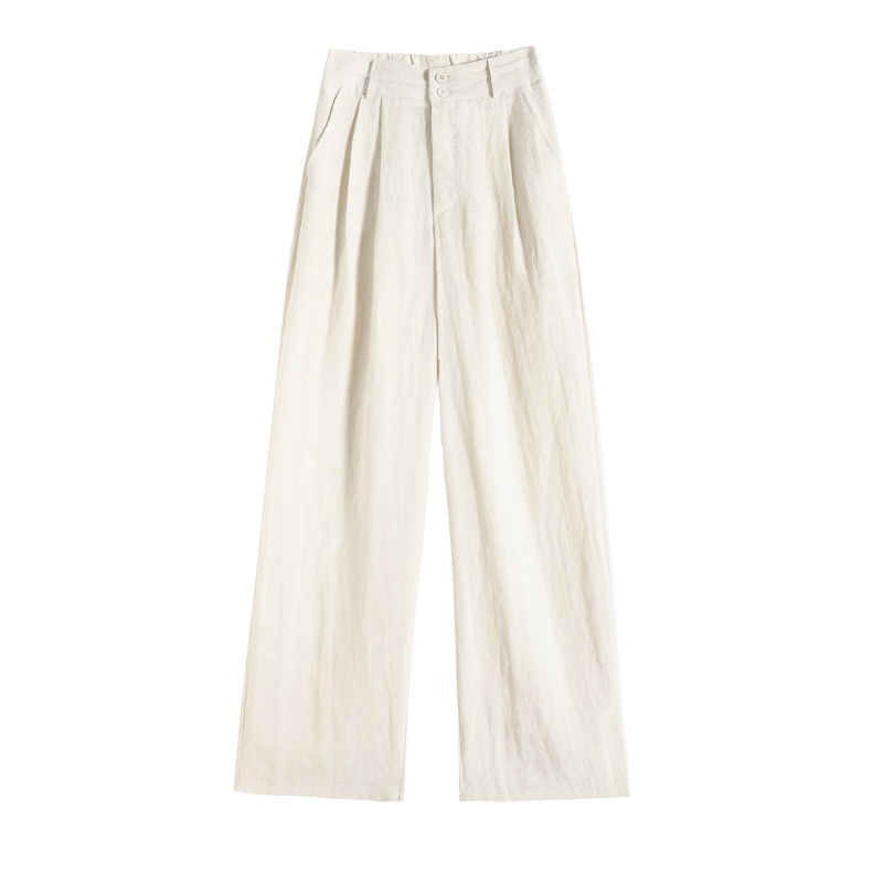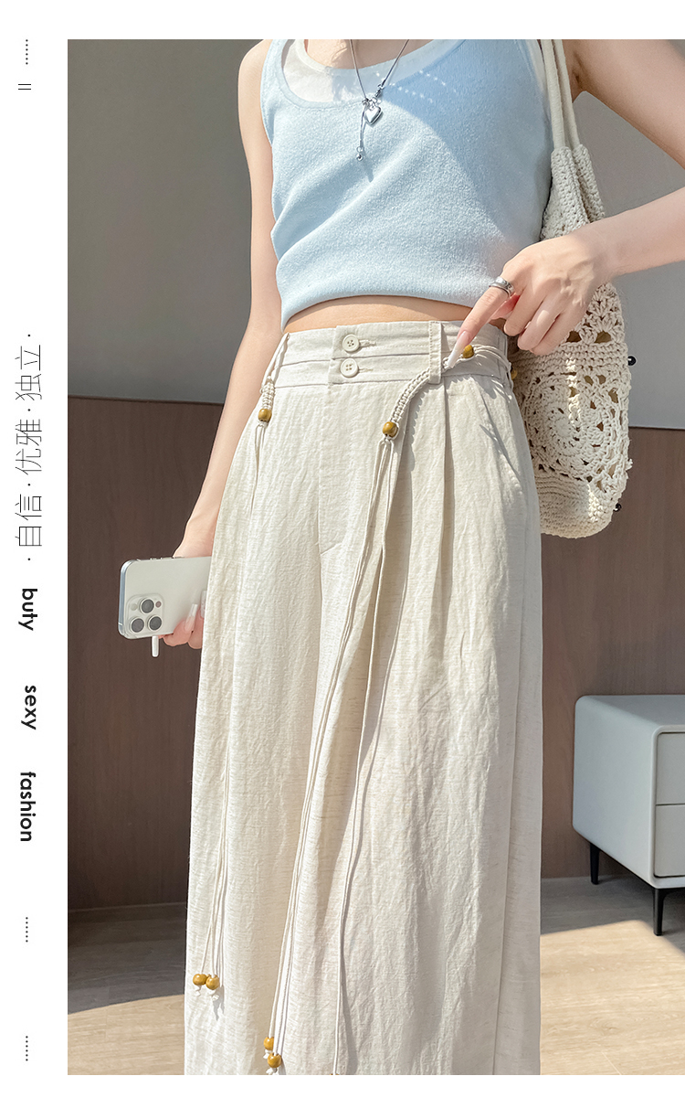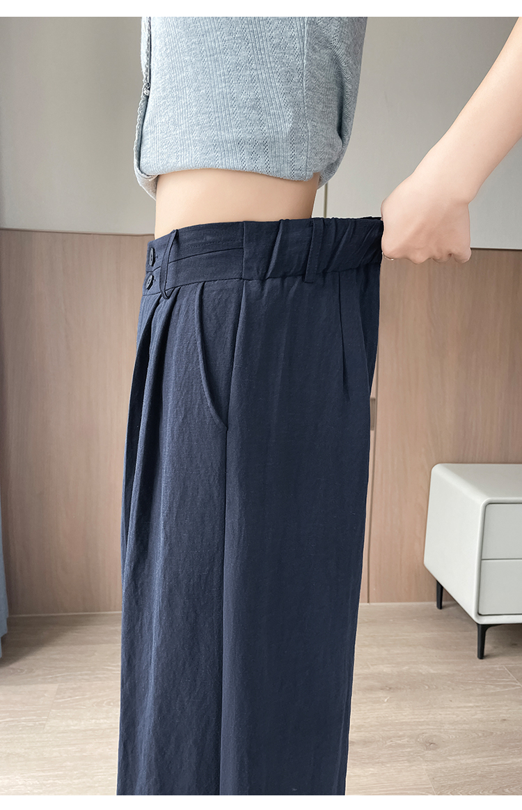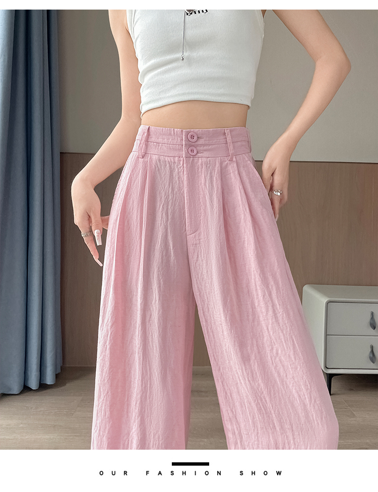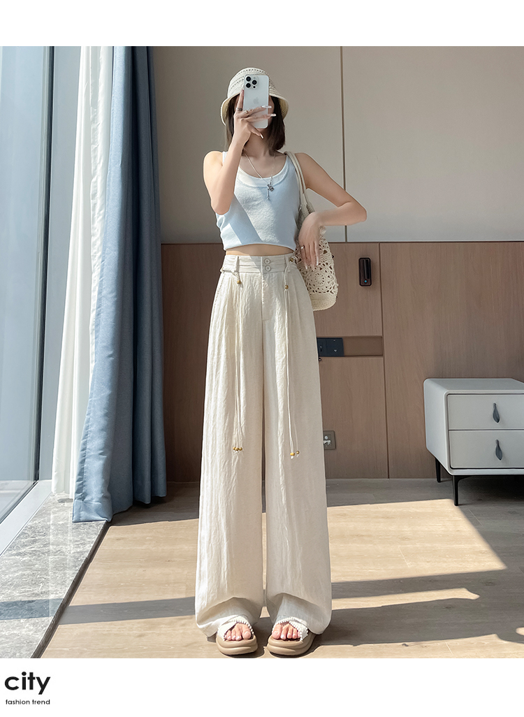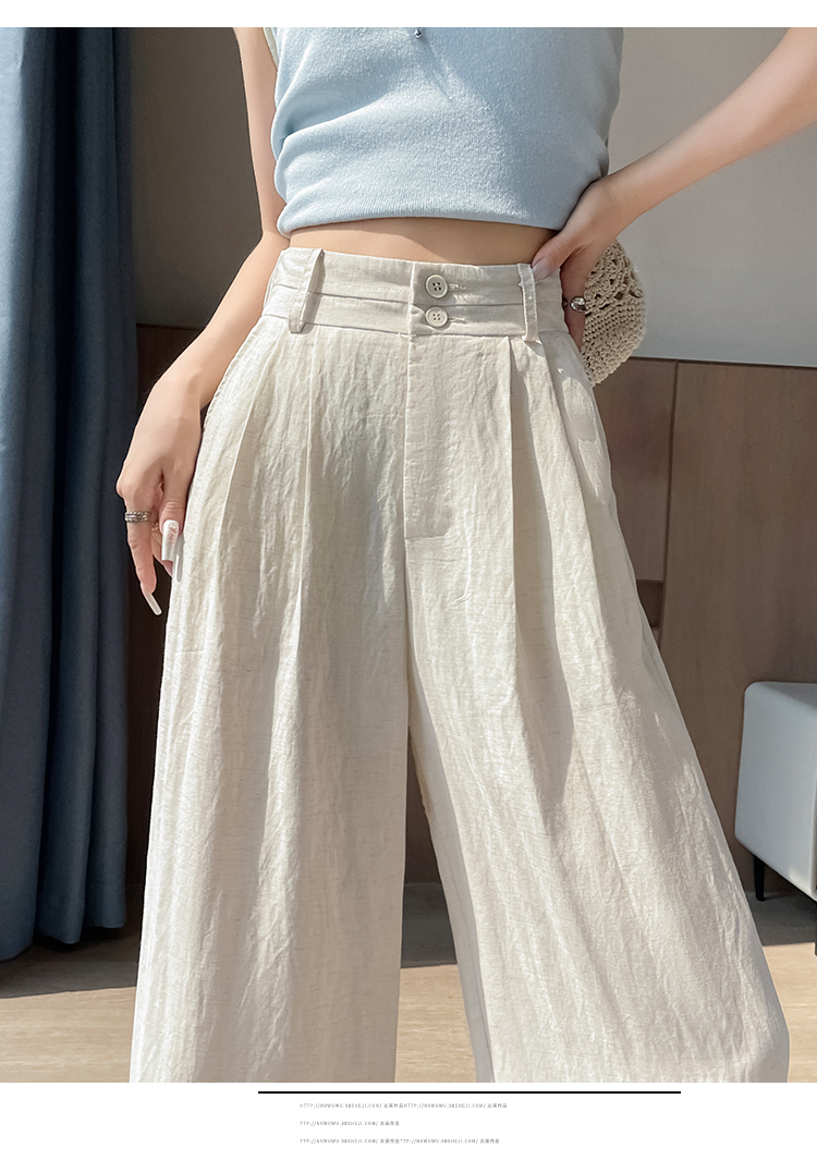 RY1319# 实拍2026夏季新款 棉麻时尚高腰双排扣直筒拖地休闲阔腿裤
