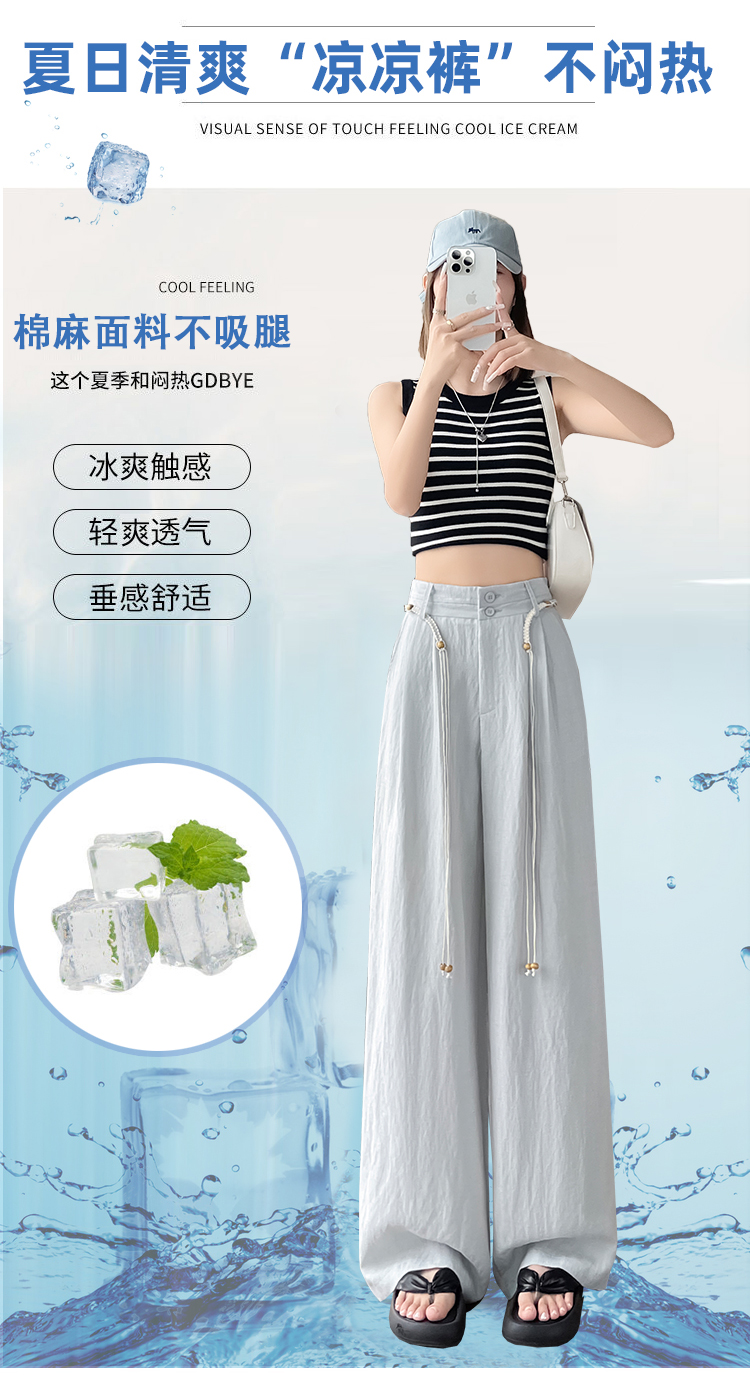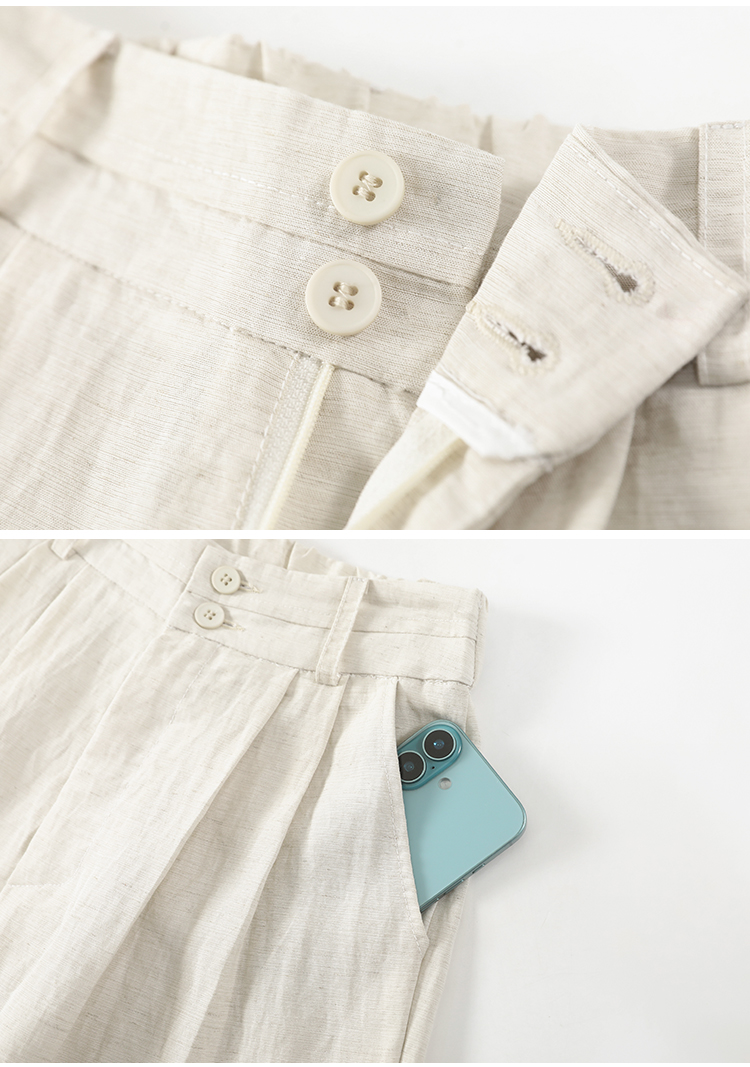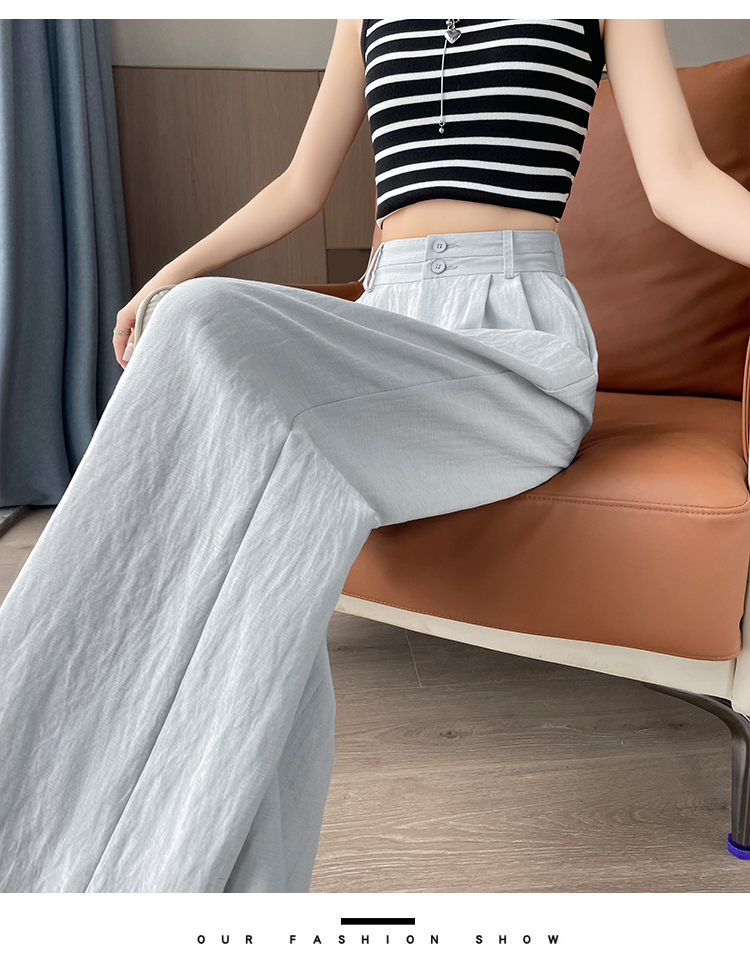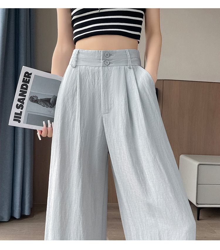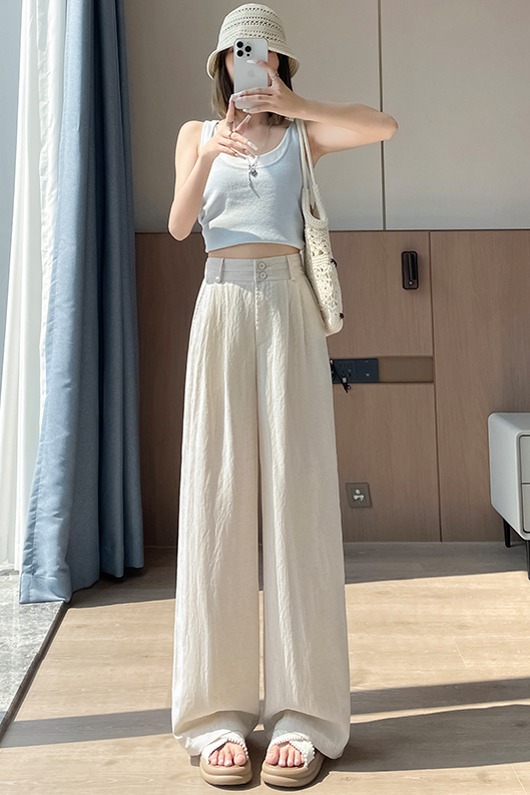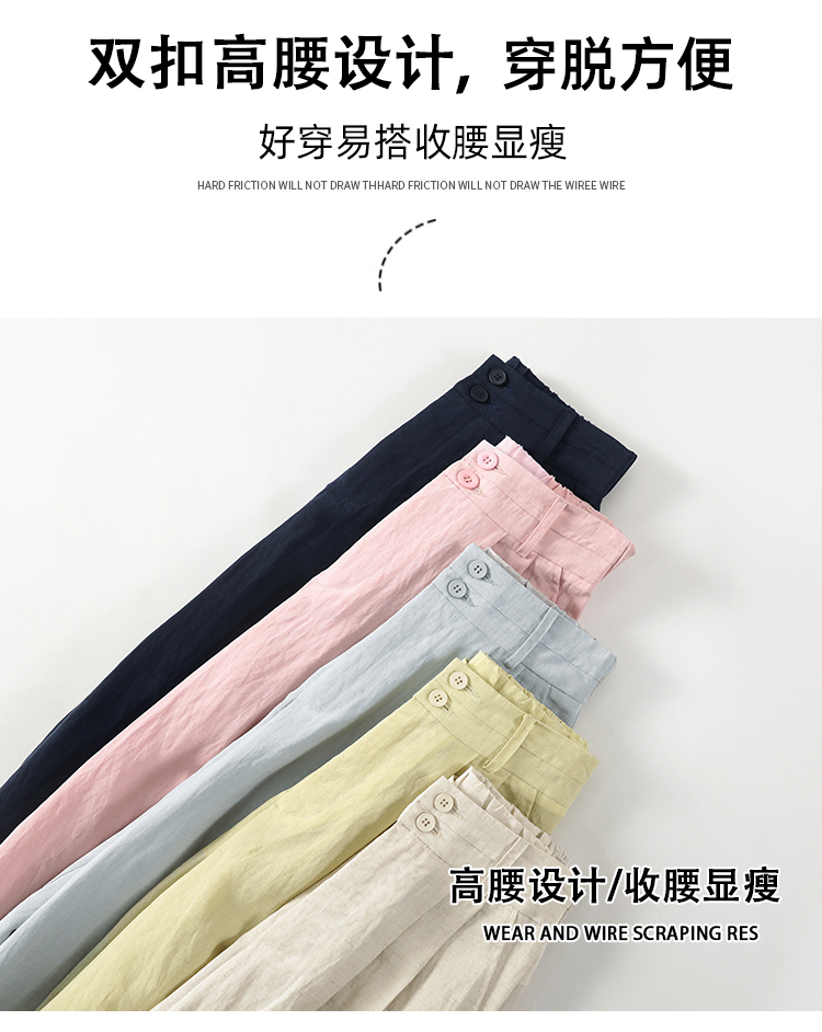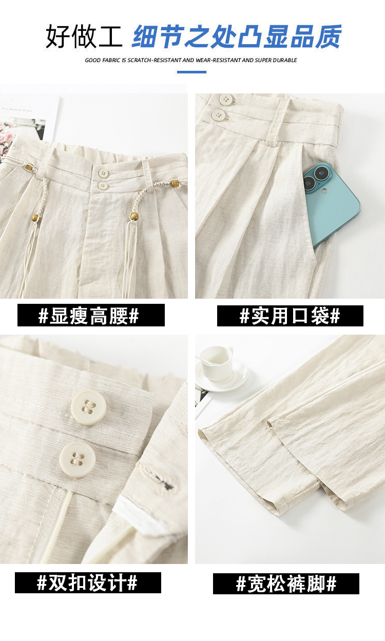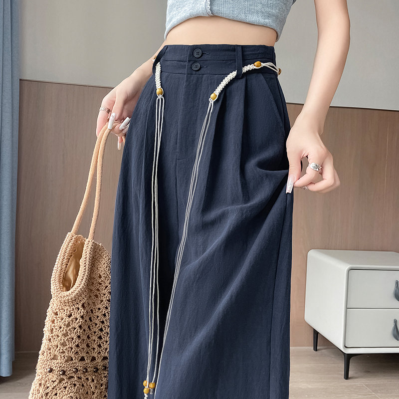 RY1319# 实拍2026夏季新款 棉麻时尚高腰双排扣直筒拖地休闲阔腿裤
