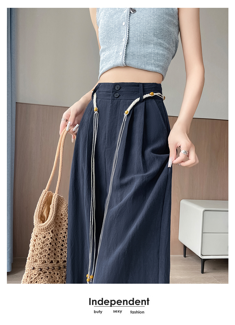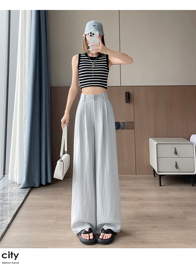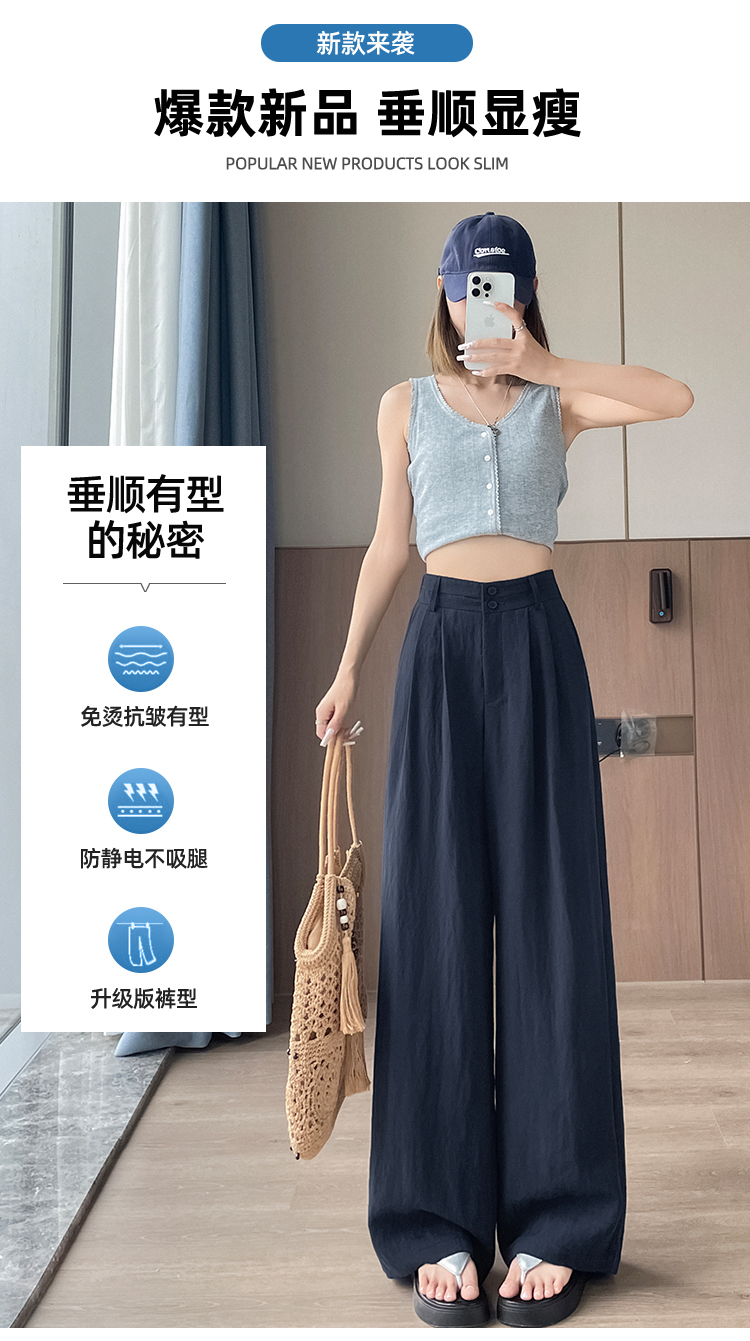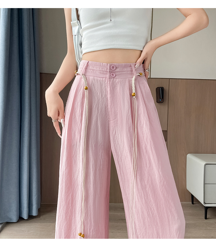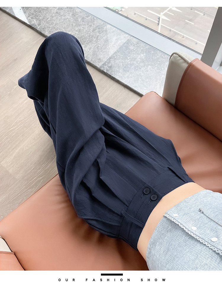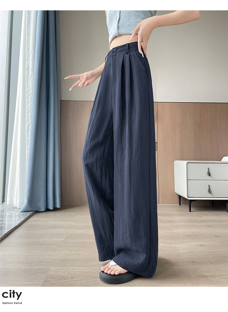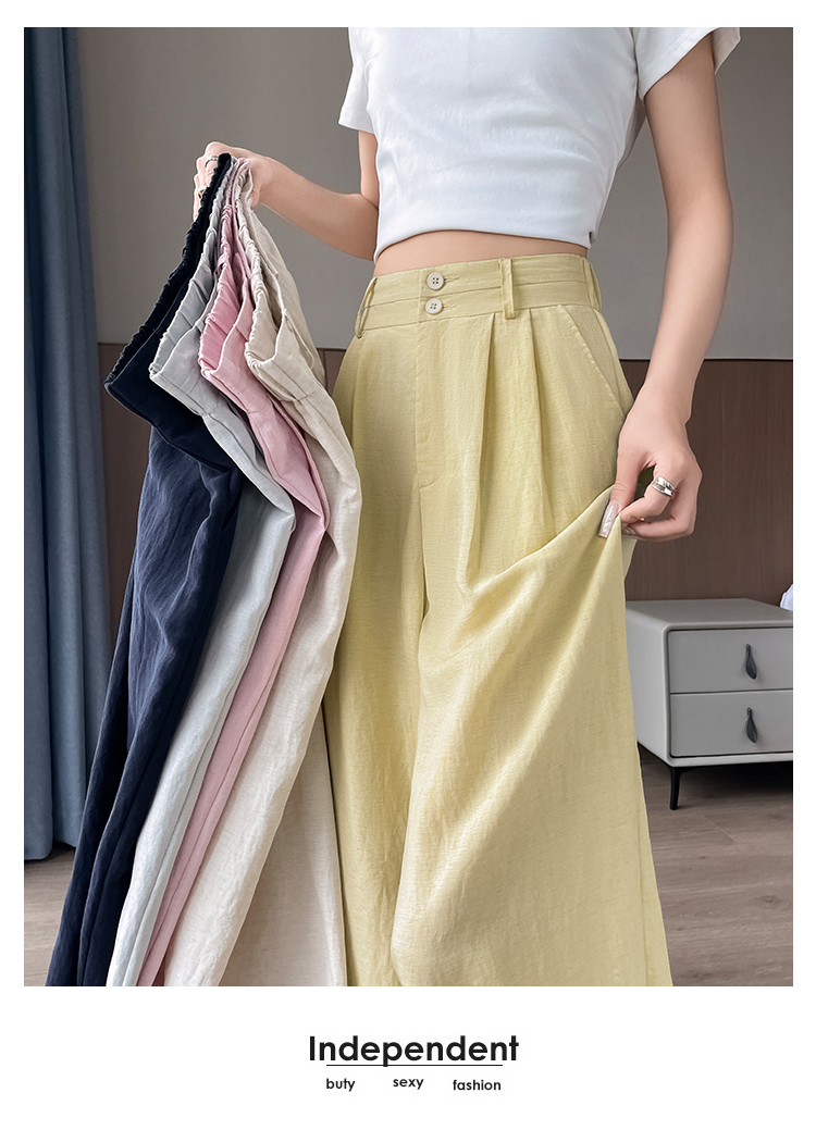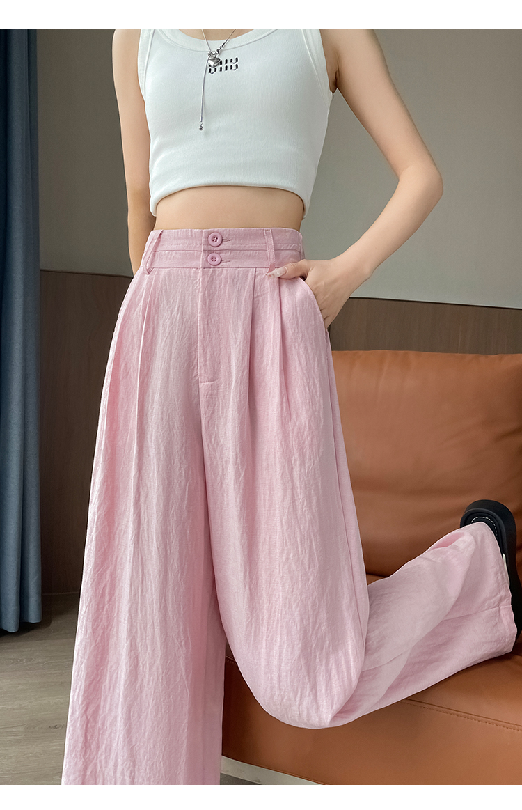 RY1319# 实拍2026夏季新款 棉麻时尚高腰双排扣直筒拖地休闲阔腿裤