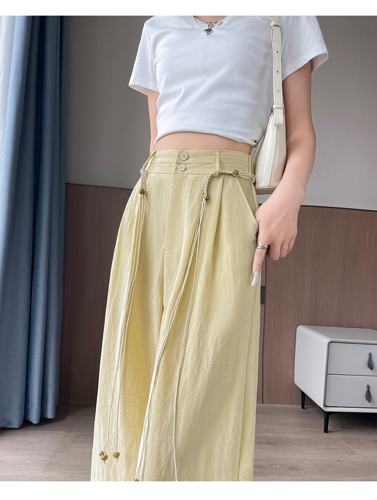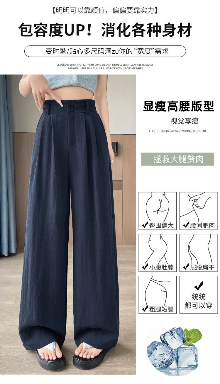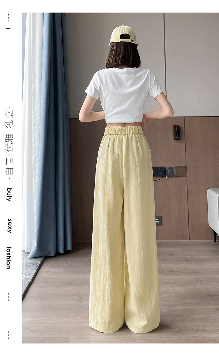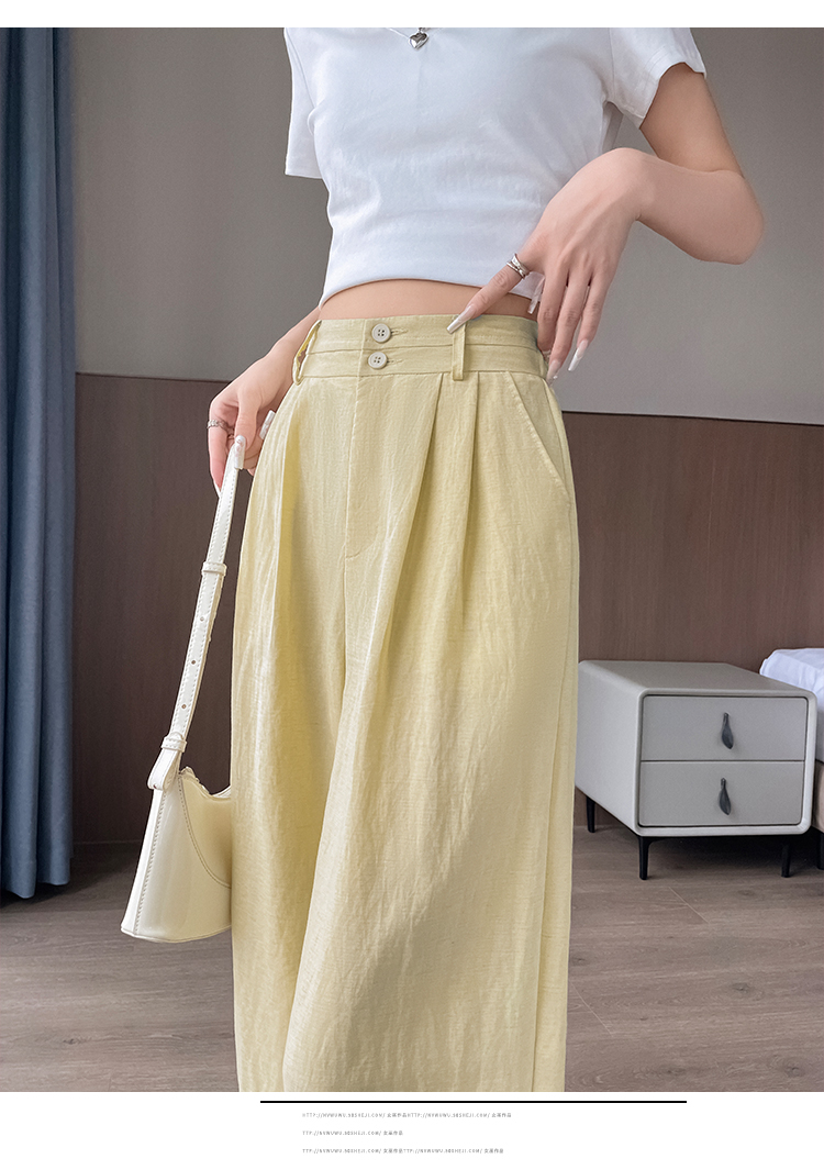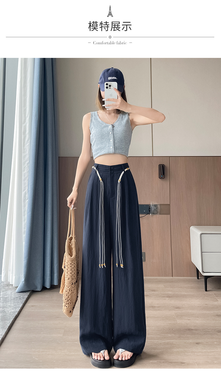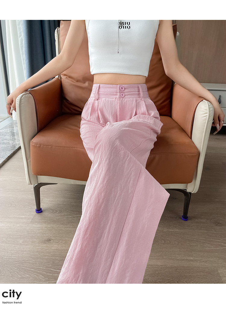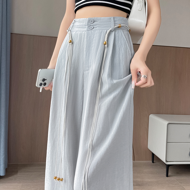 RY1319# 实拍2026夏季新款 棉麻时尚高腰双排扣直筒拖地休闲阔腿裤