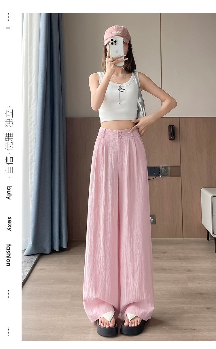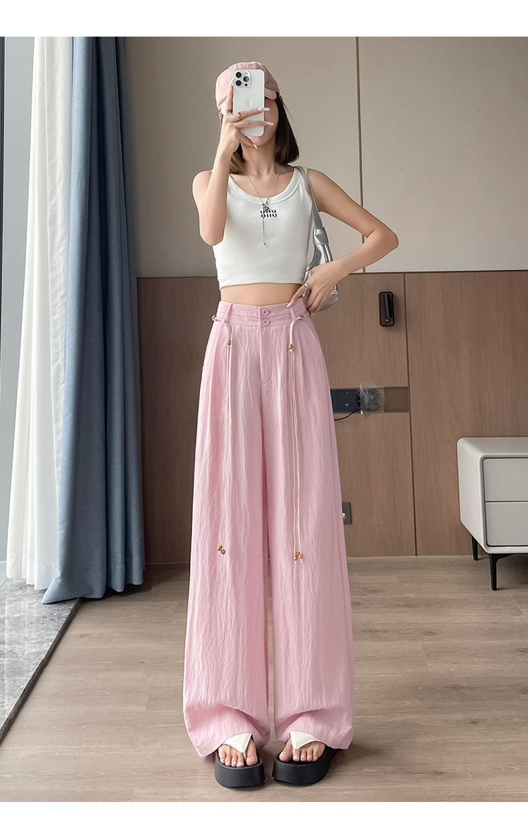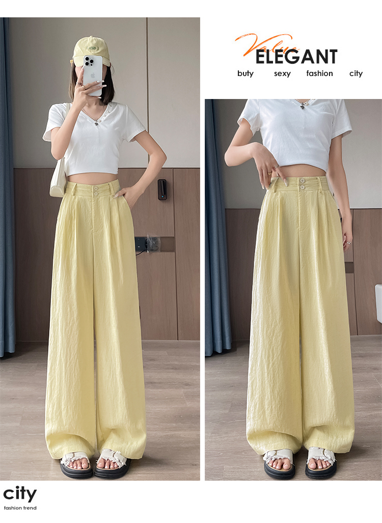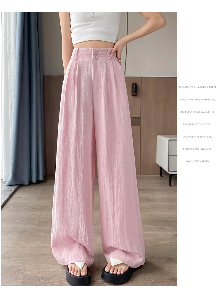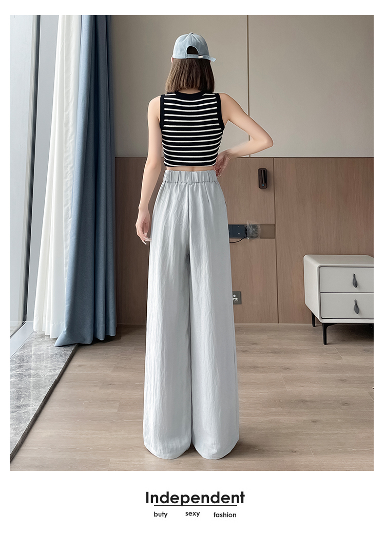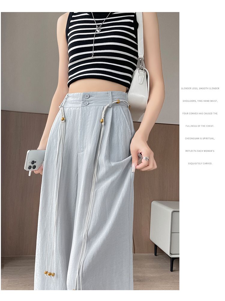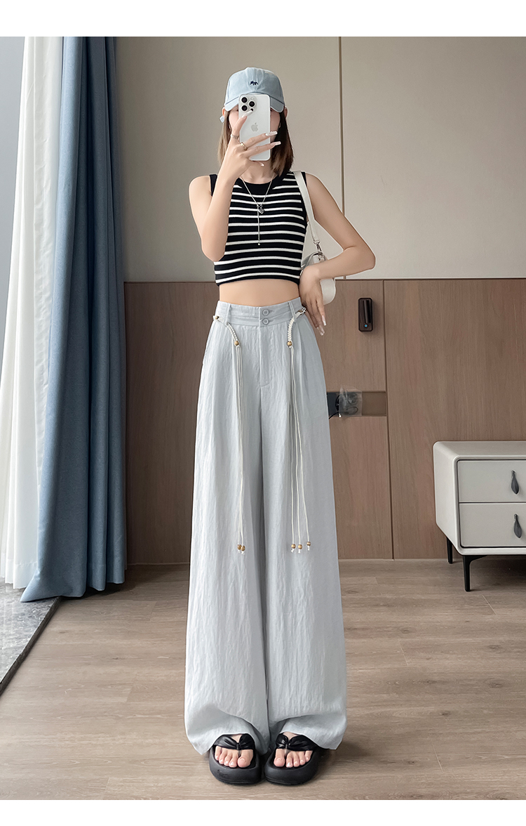 RY1319# 实拍2026夏季新款 棉麻时尚高腰双排扣直筒拖地休闲阔腿裤