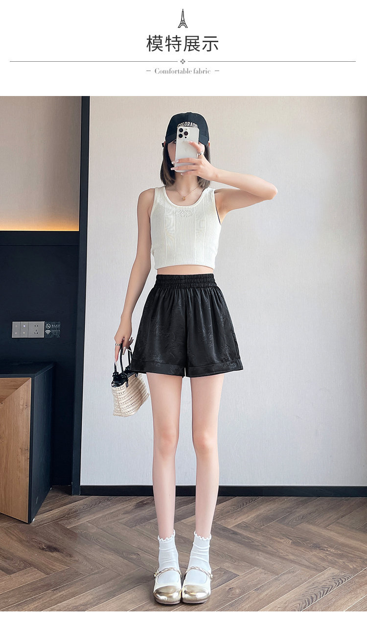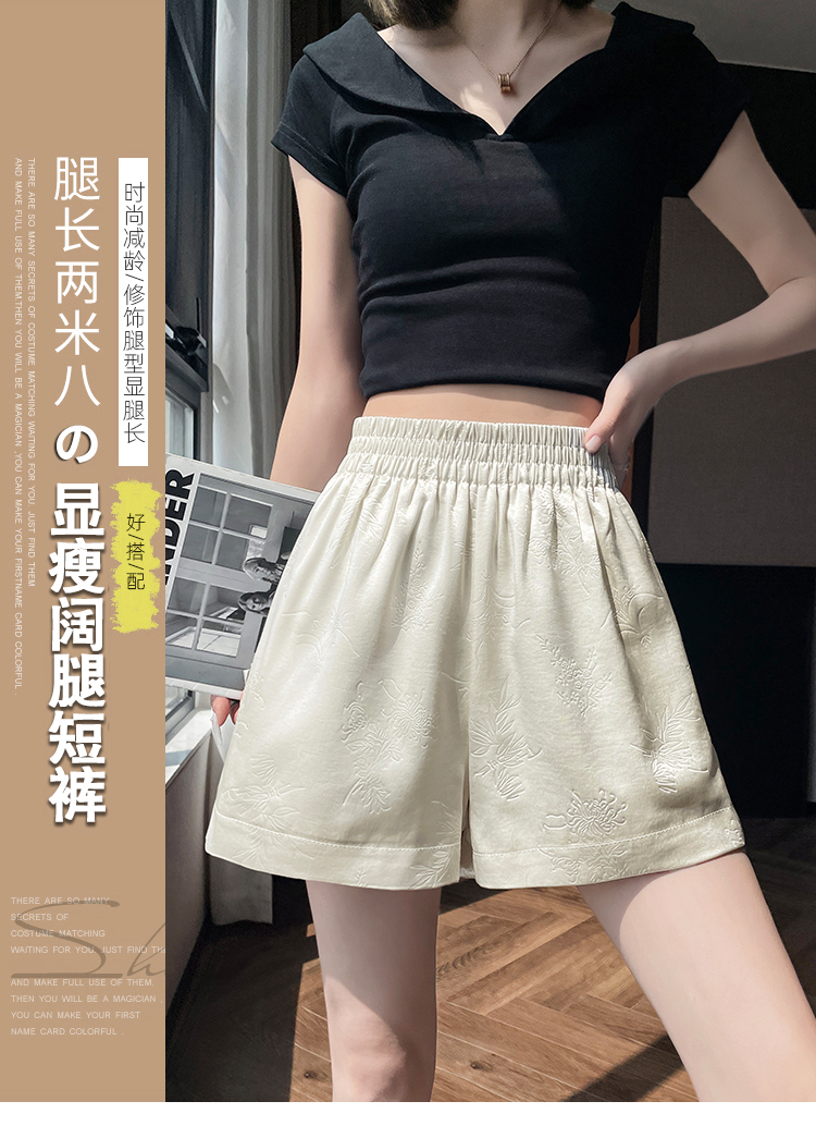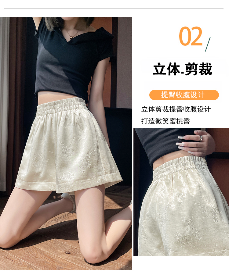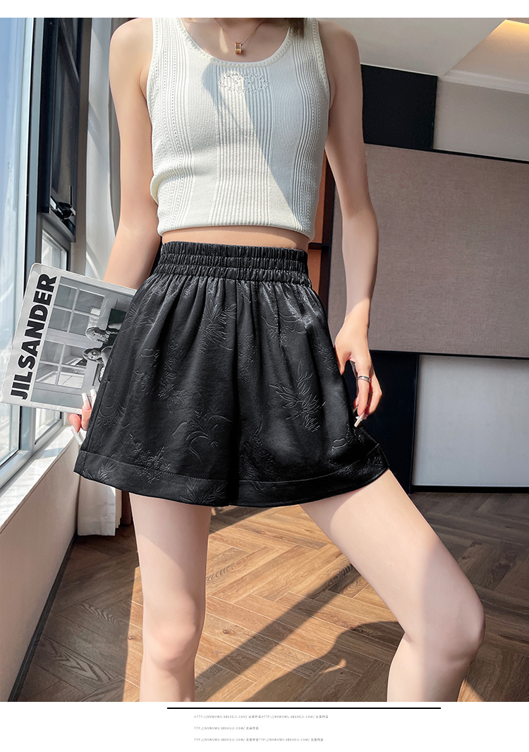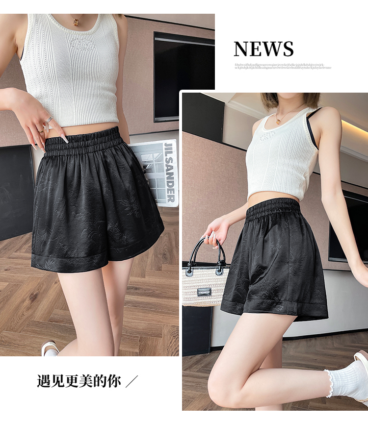 RY1321# 实拍2026夏季新款 醋酸提花时尚高腰宽松阔腿a字休闲短裤