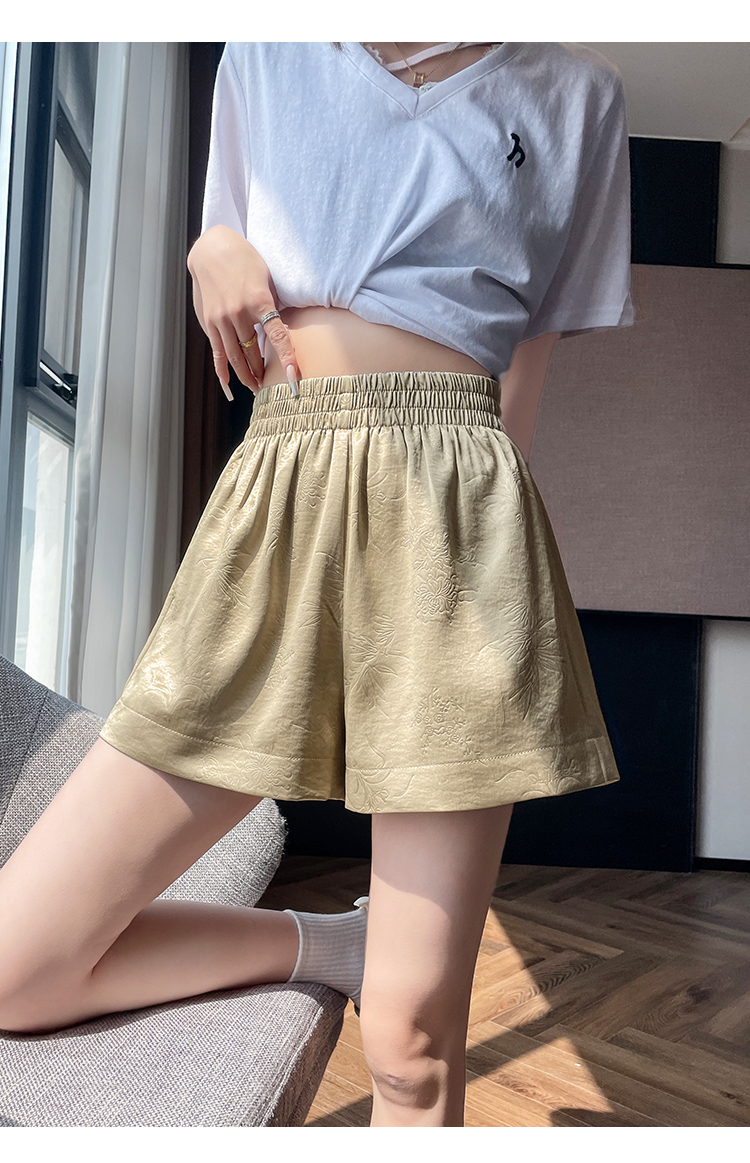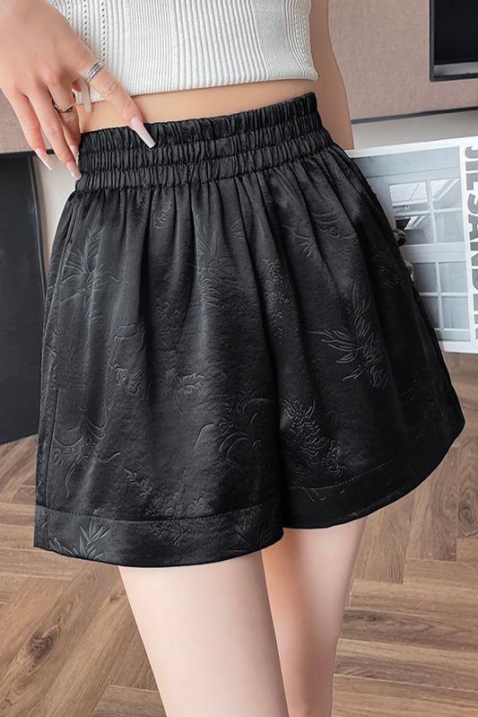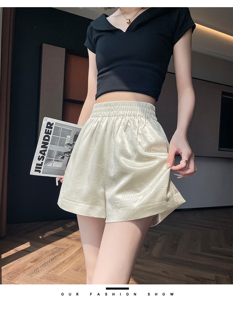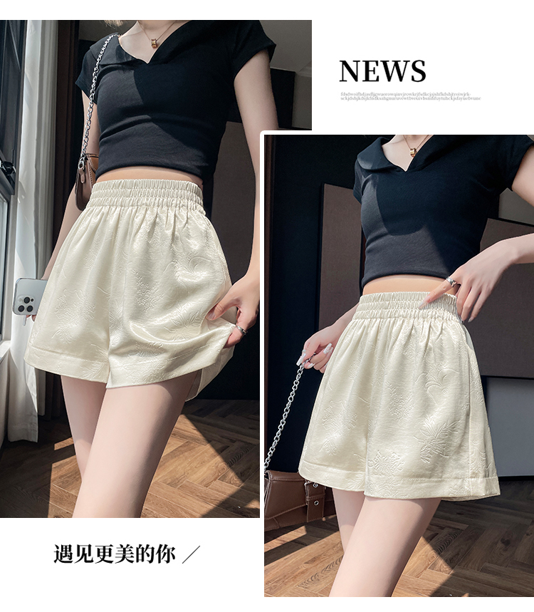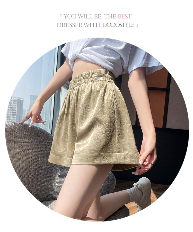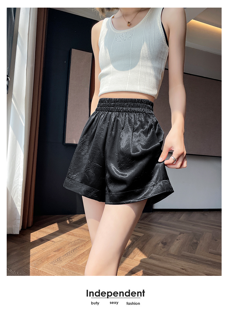 RY1321# 实拍2026夏季新款 醋酸提花时尚高腰宽松阔腿a字休闲短裤